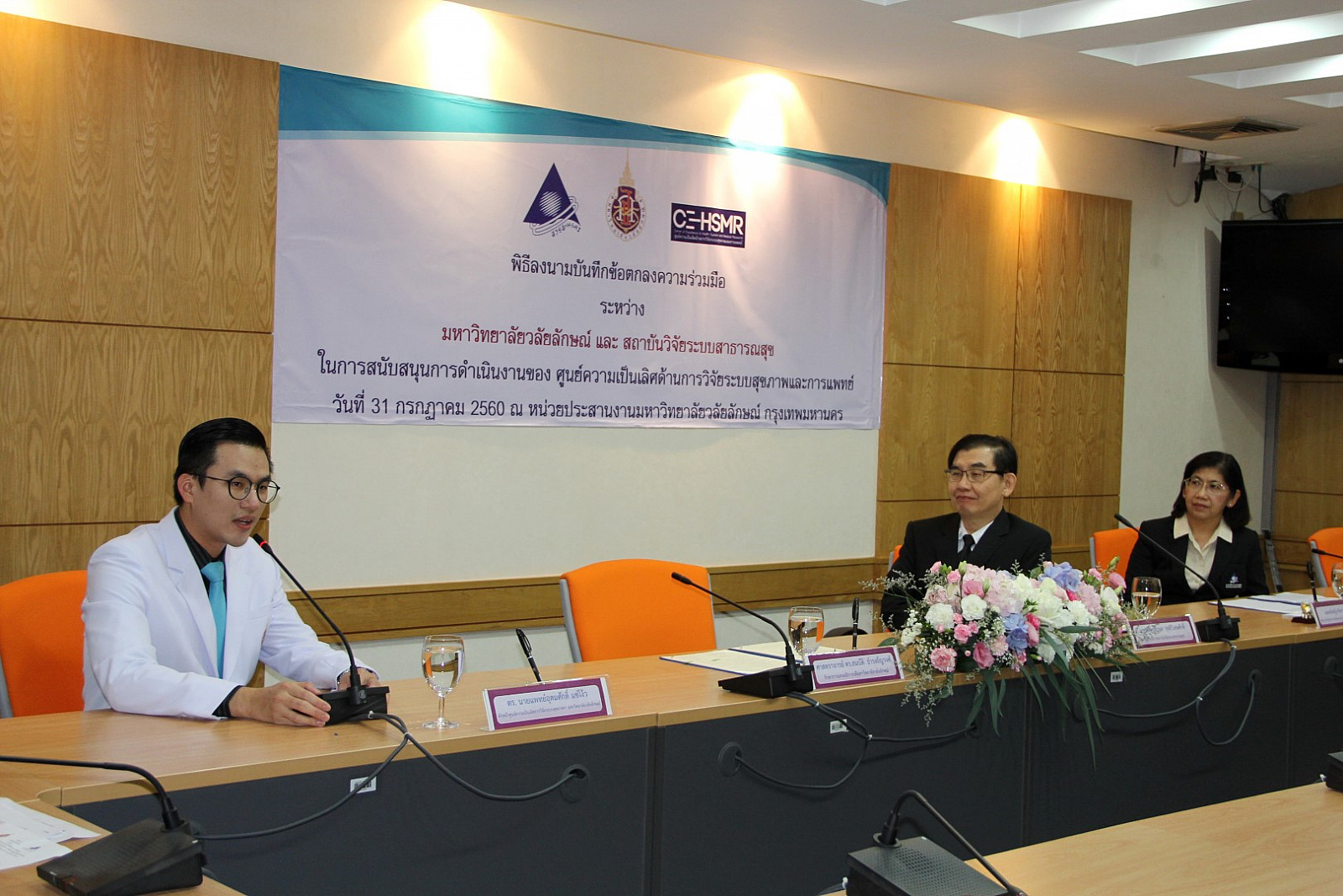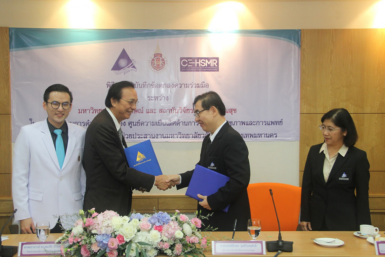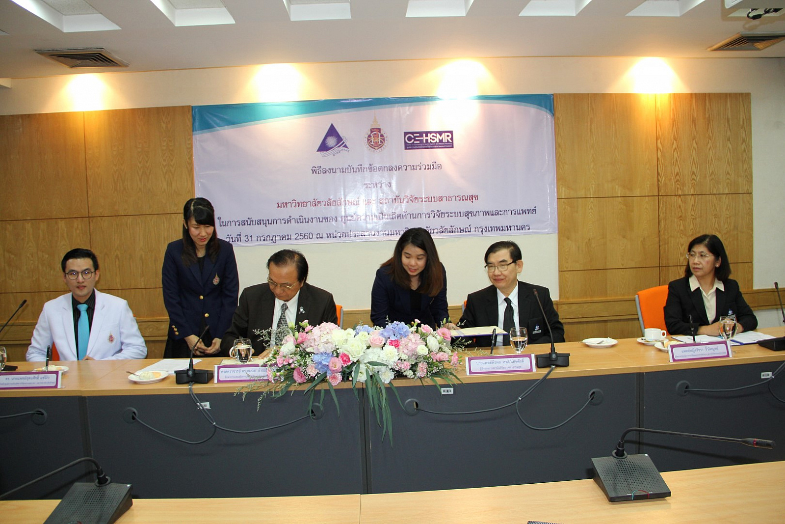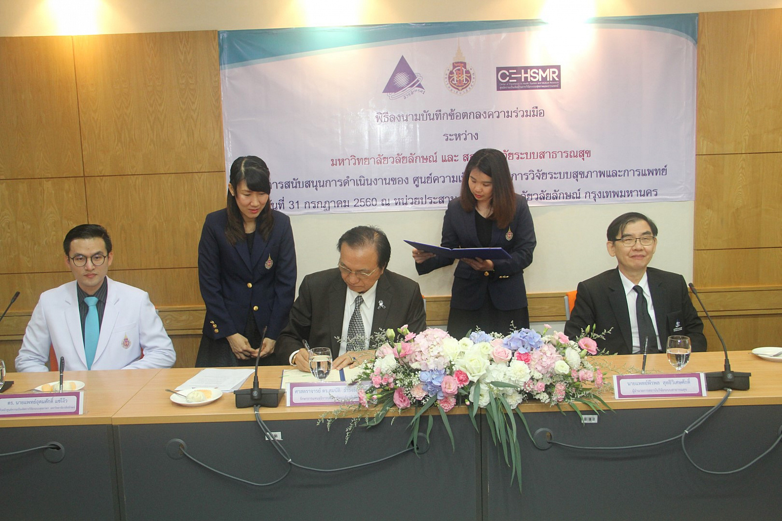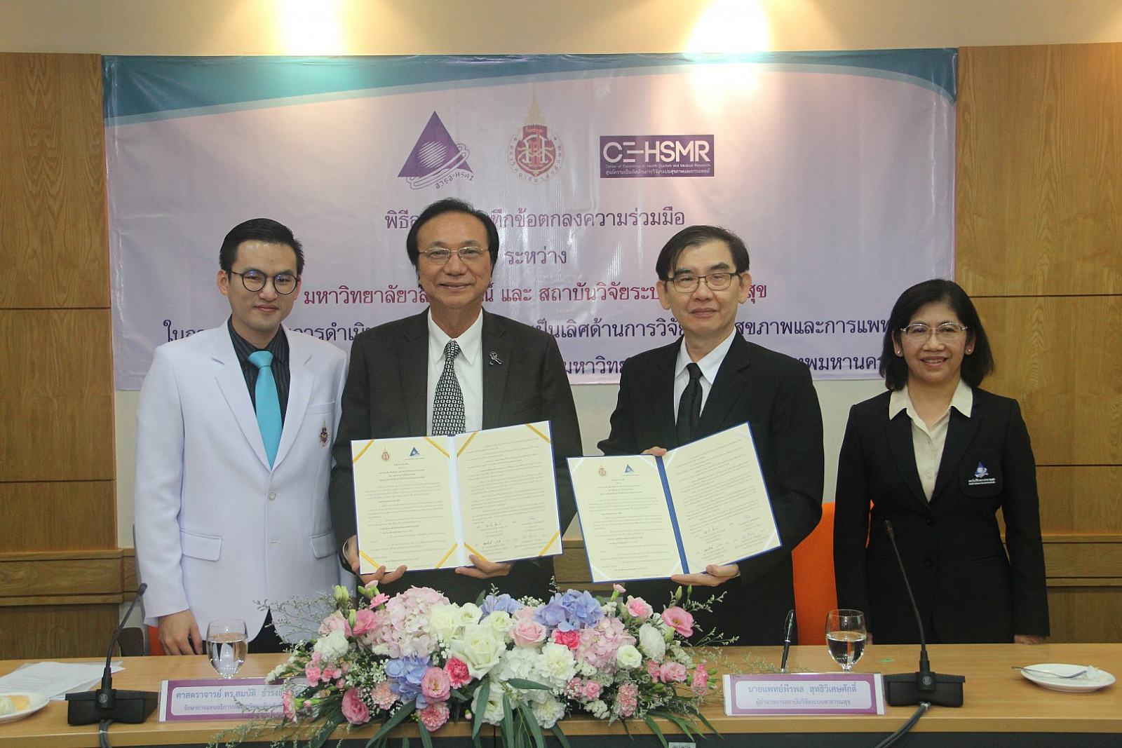 มหาวิทยาลัยวลัยลักษณ์ ร่วมกับ สถาบันวิจัยระบบสาธารณสุข (สวรส.) สนับสนุนการจัดตั้งและดำเนินงานของ “ศูนย์ความเป็นเลิศด้านการวิจัยระบบสุขภาพและการแพทย์” (Center of Excellence in Health System and Medical Research) มุ่งตอบสนองการพัฒนาระบบสุขภาพของประเทศ พัฒนาโจทย์วิจัยเชื่อมต่อจากระดับพื้นที่สู่ระดับประเทศ พร้อมพัฒนาข้อเสนอเชิงนโยบายจากความรู้ในงานวิจัยควบคู่กับการพัฒนานักวิจัยหน้าใหม่ โดยได้มีพิธีลงนามบันทึกข้อตกลงความร่วมมือ ระหว่าง ศาสตราจารย์ ดร.สมบัติ ธำรงค์ธัญวงศ์ รักษาการแทนอธิการบดีมหาวิทยาลัยวลัยลักษณ์ และ นายแพทย์พีรพล สุทธิวิเศษศักดิ์ ผู้อำนวยการสถาบันวิจัยระบบสาธารณสุข (สวรส.) ในการสนับสนุนการดำเนินงานของศูนย์ความเป็นเลิศด้านการวิจัยระบบสุขภาพและการแพทย์ เมื่อวันที่ 31 กรกฎาคม 2560 ณ ห้องประชุม 1 หน่วยประสานงานมหาวิทยาลัยวลัยลักษณ์ กรุงเทพมหานคร โดยมี อาจารย์ ดร.นายแพทย์อุดมศักดิ์ แซ่โง้ว หัวหน้าศูนย์ความเป็นเลิศด้านการวิจัยระบบสุขภาพและการแพทย์ และแพทย์หญิงวัชรา ริ้วไพบูลย์ ผู้จัดการสำนักจัดการงานวิจัยและประสานโครงการ ร่วมเป็นพยานในพิธีลงนาม