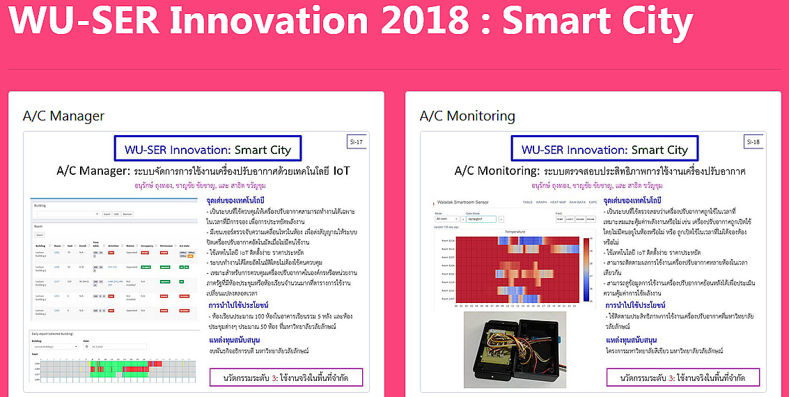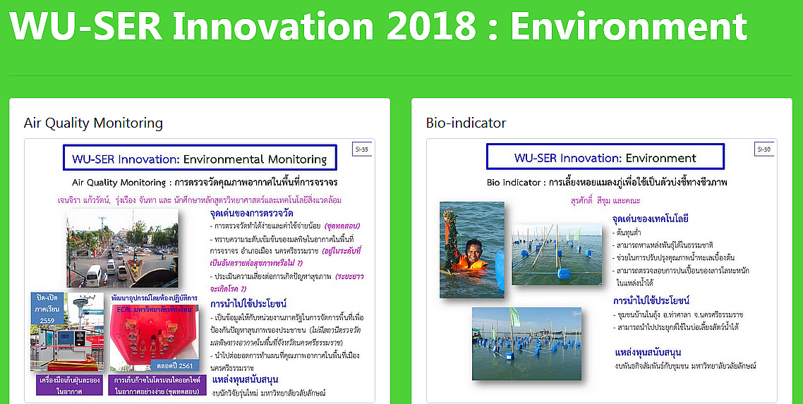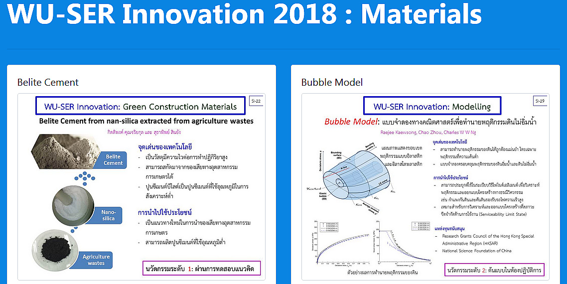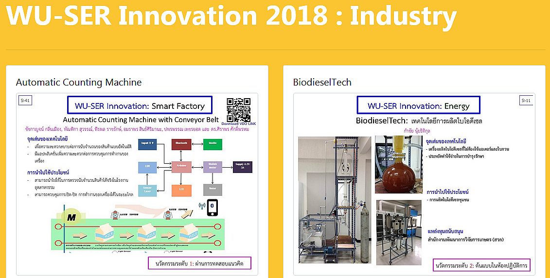 WU-SER Innovation 2018 ฐานข้อมูลนวัตกรรมเด่นสำนักวิชาวิศวกรรมศาสตร์และทรัพยากร 2018
