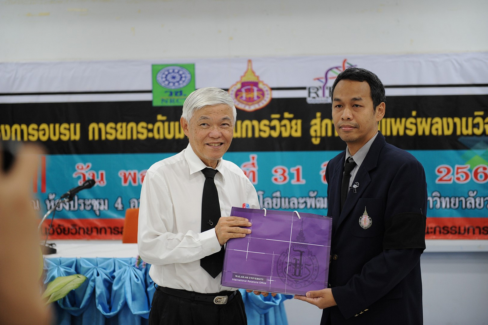 ดร.ผานิตย์ คุ้มฮิ้น รักษาการแทนผู้อำนวยการสถาบันวิจัยวิทยาการสุขภาพ ม.วลัยลักษณ์ เปิดเผยว่า เมื่อเร็วๆนี้ สถาบันวิจัยวิทยาการสุขภาพ สำนักงานคณะกรรมการการวิจัยแห่งชาติ (วช.) ได้จัดอบรมยกระดับมาตรฐานการวิจัยสู่การเผยแพร่ผลงานวิจัยในระดับสากล เพื่อเผยแพร่มาตรฐานการเผยแพร่ผลงานวิจัยและผลงานทางวิชาการ ให้แก่ผู้บริหาร นักวิจัย และบุคลากรของมหาวิทยาลัยวลัยลักษณ์ และนักวิจัยจากสถาบันใกล้เคียง ที่ปฏิบัติงานที่เกี่ยวข้องกับการวิจัย รับทราบ และใช้เป็นแนวทางในการปฏิบัติงานเกี่ยวกับการวิจัย โดยได้รับเกียรติจาก ศาสตราจารย์ นายแพทย์ยง ภู่วรวรรณ นักวิจัยดีเด่นแห่งชาติ สาขาวิทยาศาสตร์การแพทย์และหัวหน้าศูนย์เชี่ยวชาญเฉพาะทางด้านไวรัสวิทยาคลินิก ภาควิชากุมารเวชศาสตร์ คณะแพทยศาสตร์ จุฬาลงกรณ์มหาวิทยาลัย และนางสาววราภรณ์ สุชัยชิต หัวหน้าฝ่ายพัฒนามาตรฐานการวิจัย วช. ร่วมบรรยาย ณ อาคารพัฒนาเทคโนโลยีพัฒนานวัตกรรม ซึ่งมีผู้สนใจเข้าร่วมประมาณ 100 คน