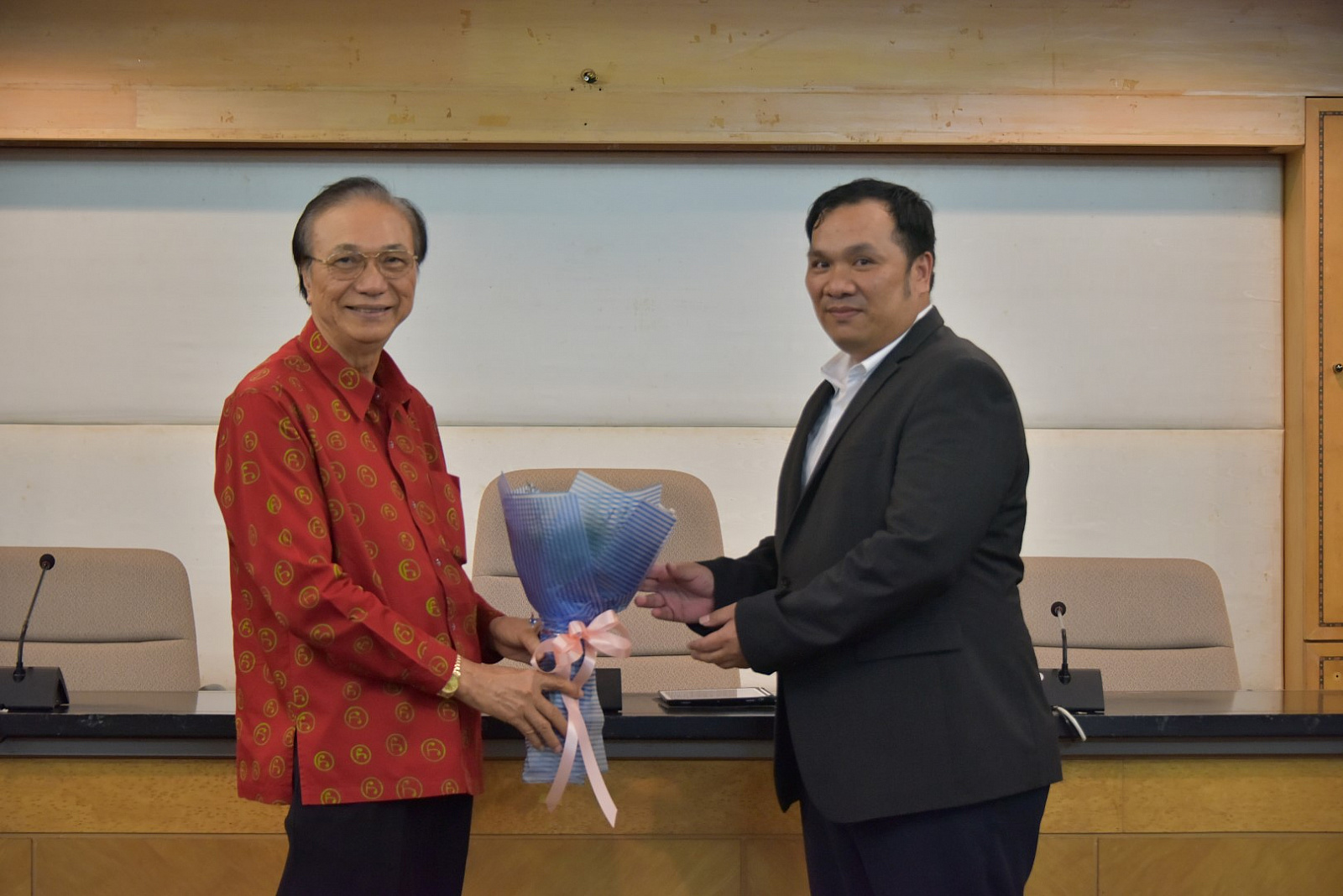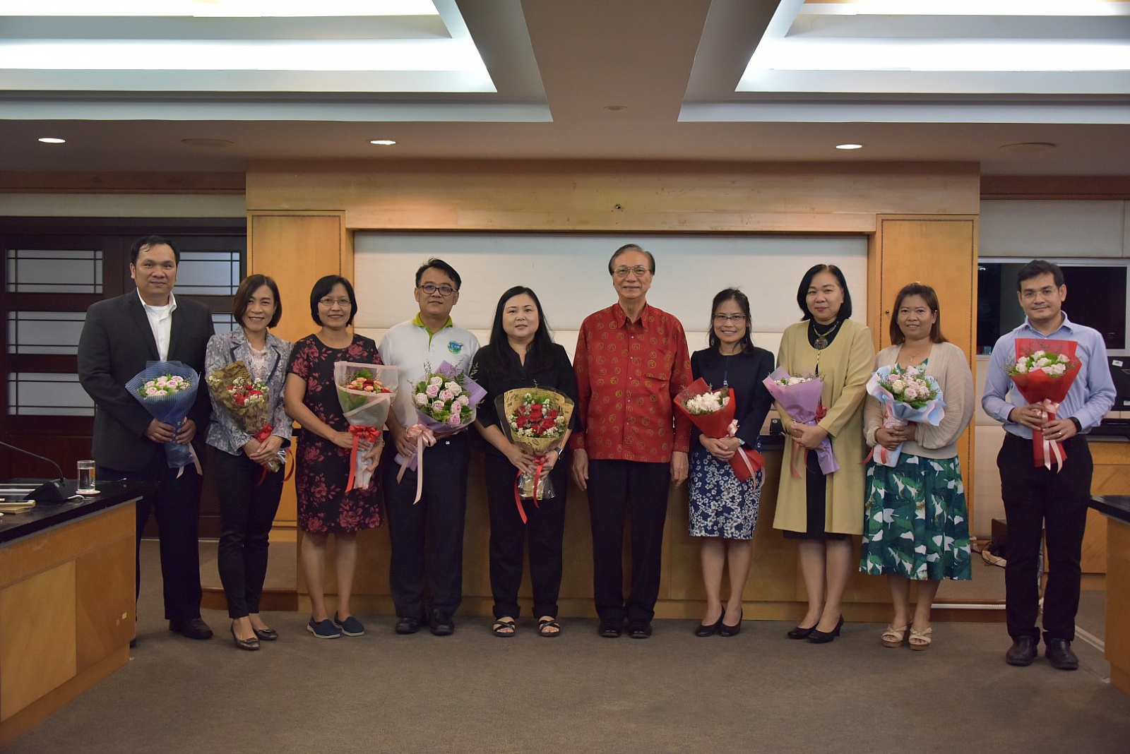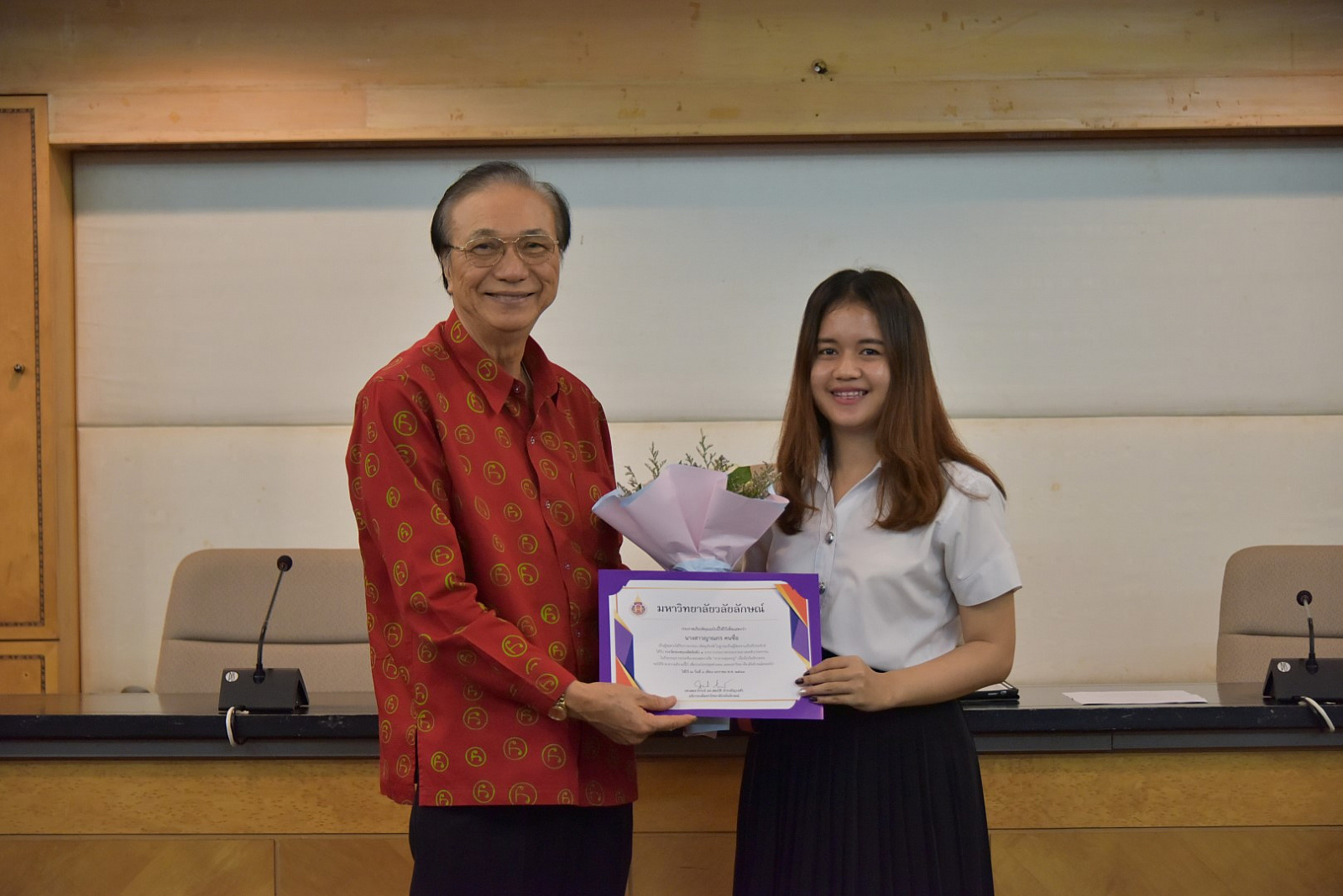 อธิการบดีมอบช่อดอกไม้แสดงความยินดี แก่ผู้สร้างชื่อเสียงให้มหาวิทยาลัยและอาจารย์ผู้ได้รับประกาศนียบัตรของ UKPSF