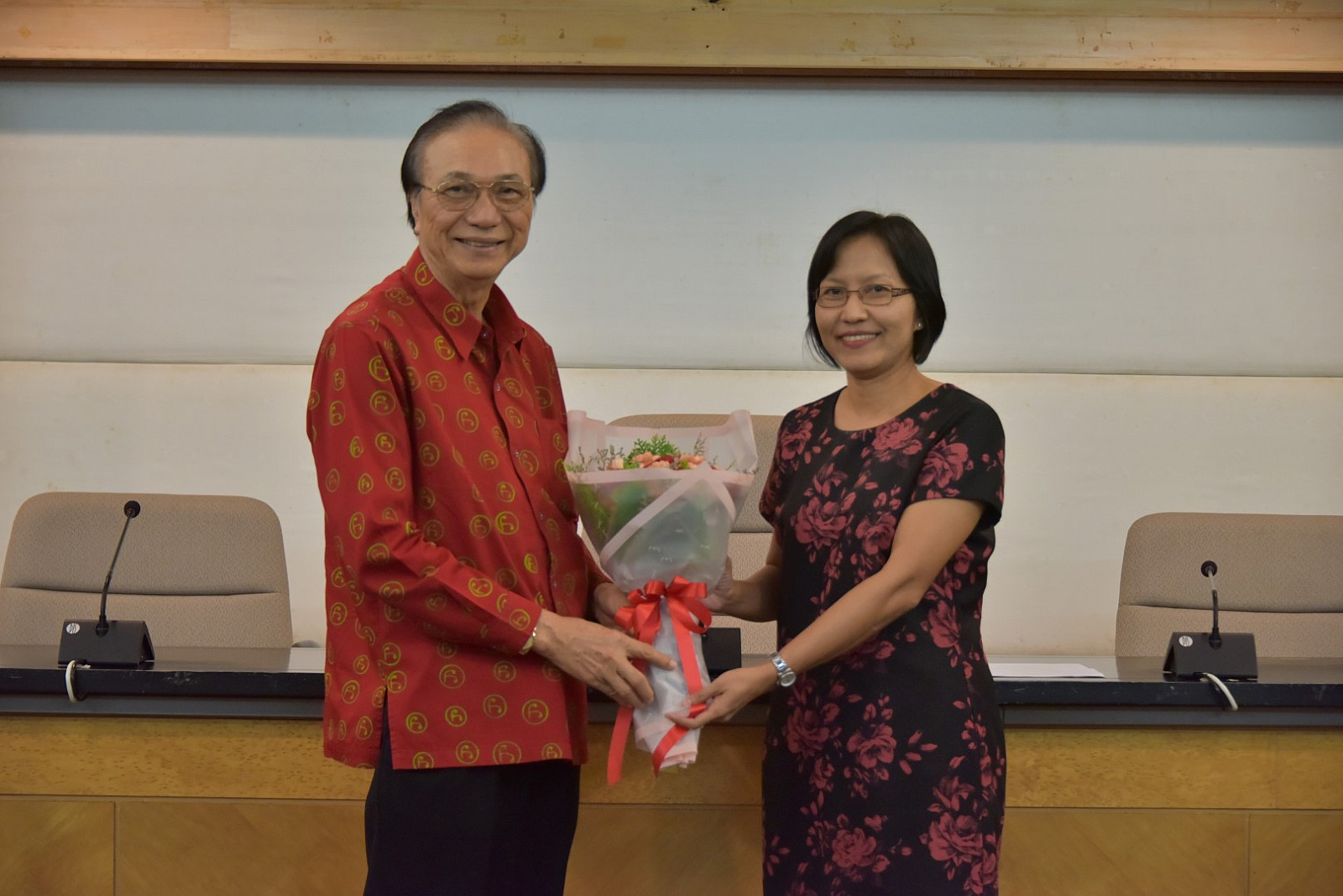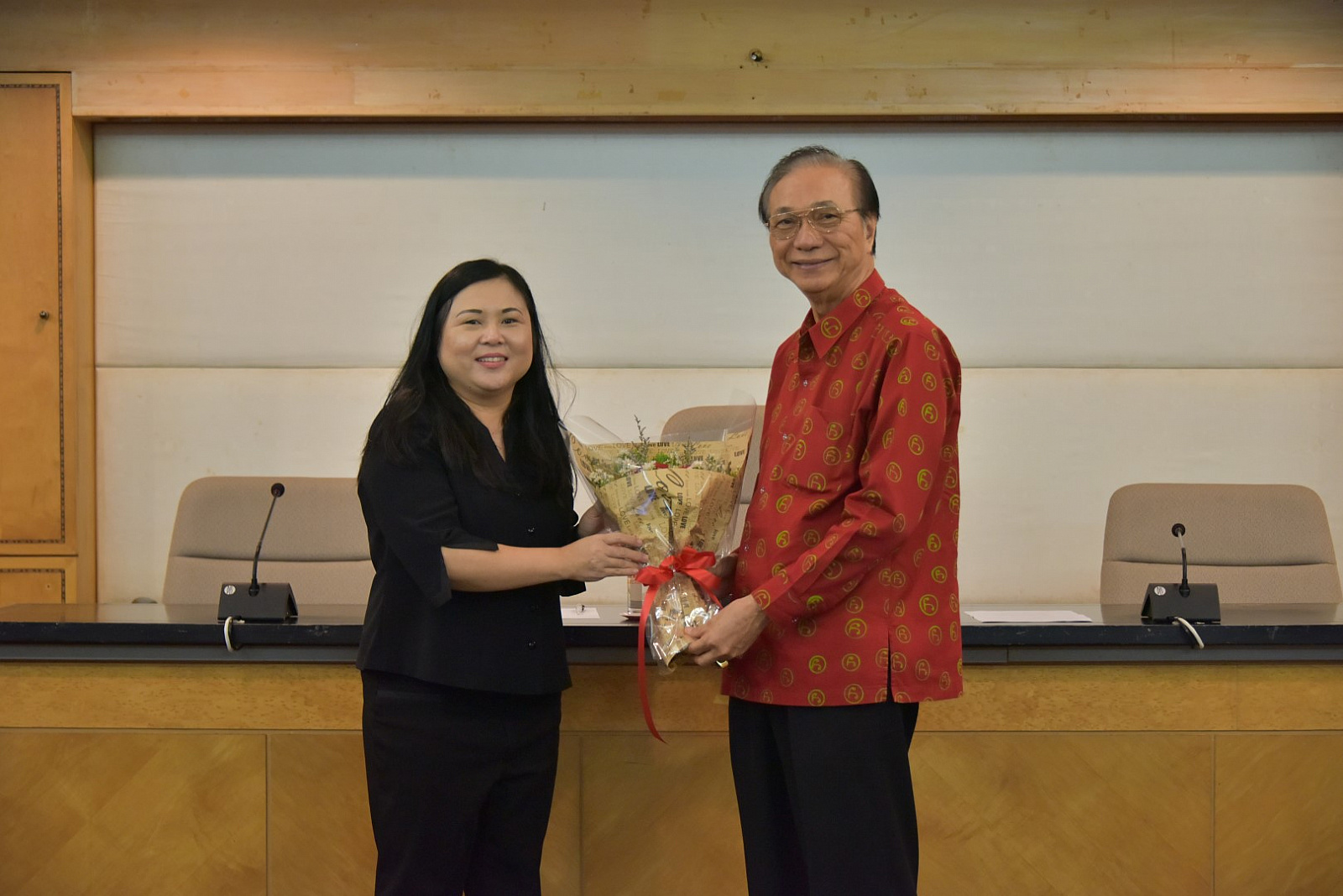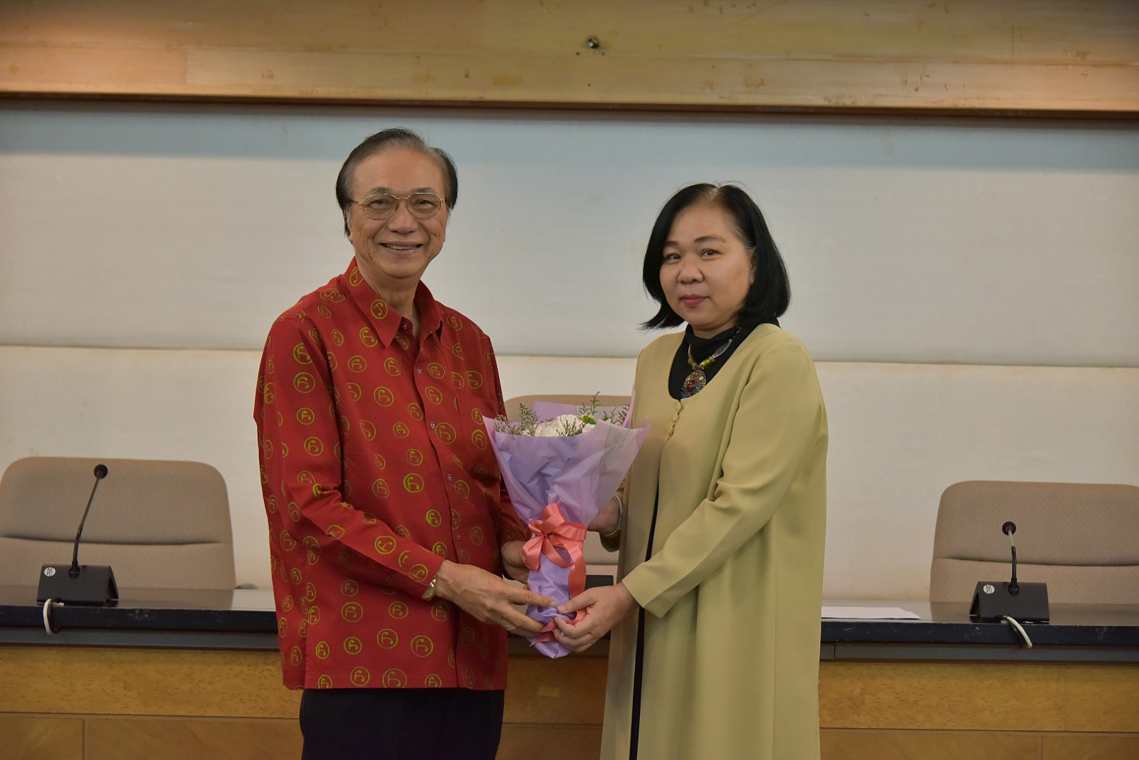 อธิการบดีมอบช่อดอกไม้แสดงความยินดี แก่ผู้สร้างชื่อเสียงให้มหาวิทยาลัยและอาจารย์ผู้ได้รับประกาศนียบัตรของ UKPSF