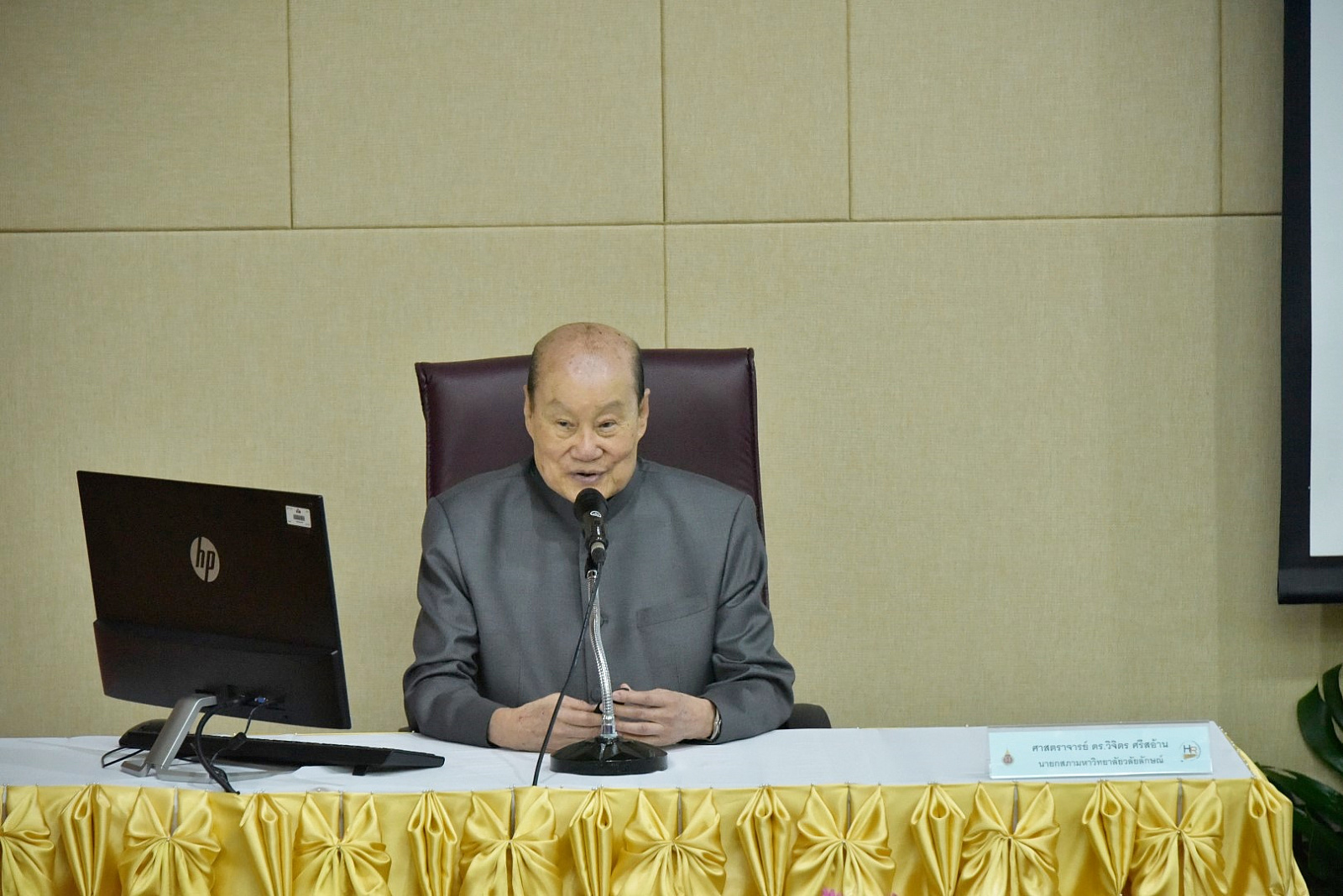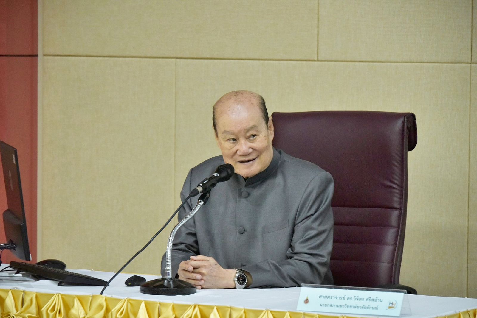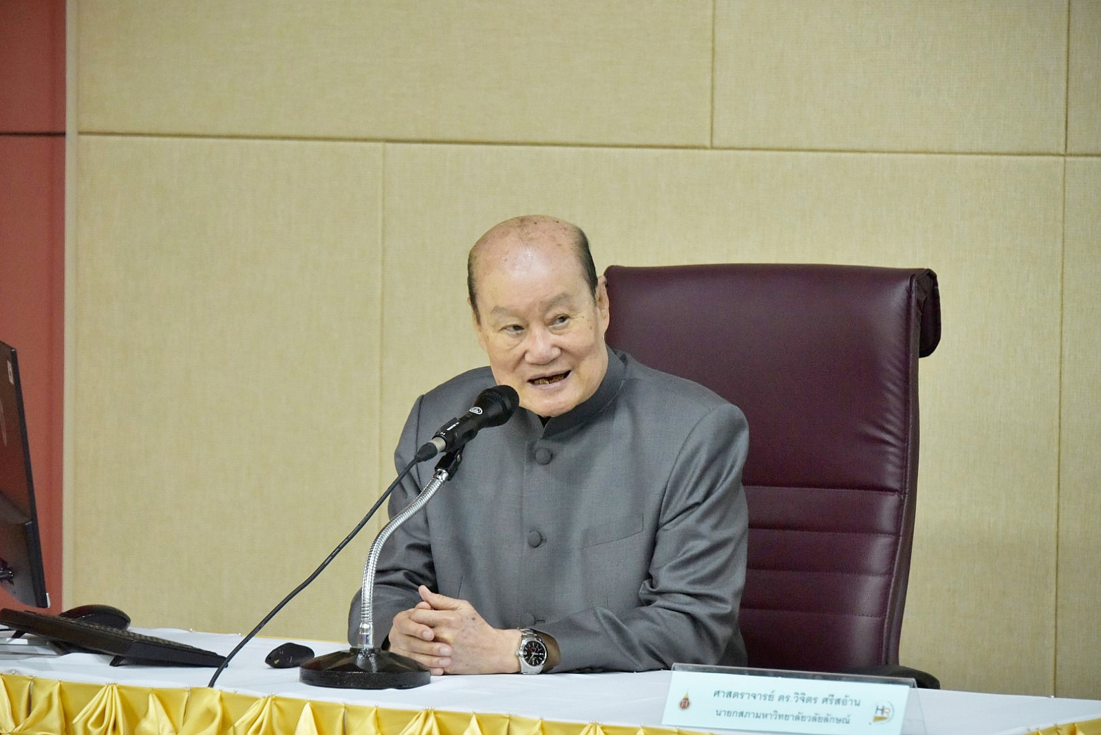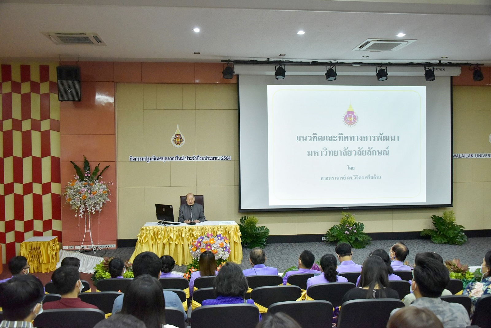 ศาสตราจารย์ ดร.วิจิตร ศรีสอ้าน นายกสภามหาวิทยาลัย ปาฐกถาพิเศษ “แนวคิดและทิศทางการพัฒนามหาวิทยาลัยวลัยลักษณ์” ในกิจกรรมปฐมนิเทศบุคลากรใหม่ ประจำปีงบประมาณ 2564