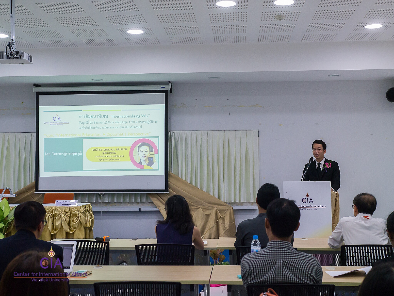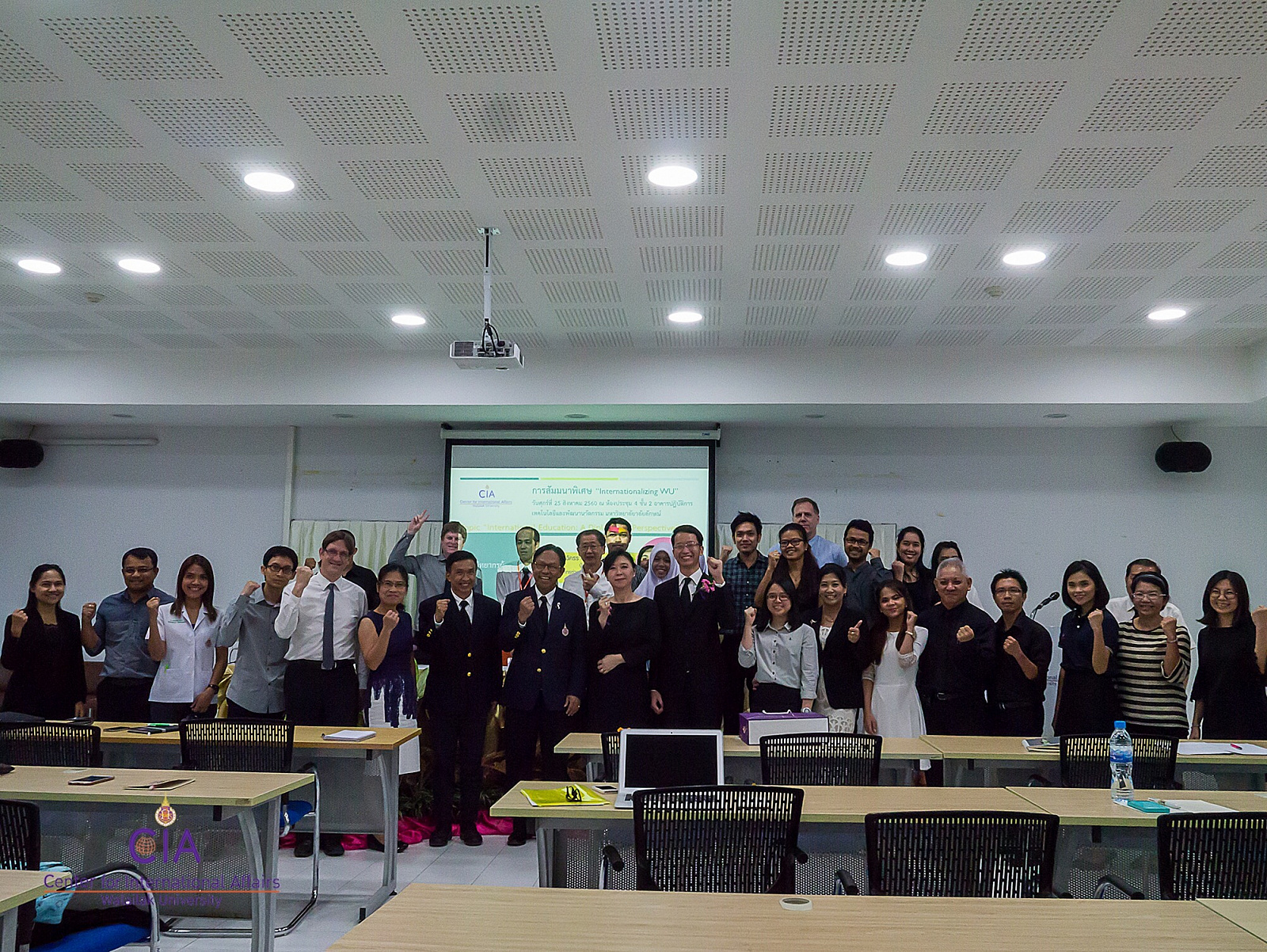 ศูนย์กิจการนานาชาติ ได้จัดสัมมนาพิเศษ เรื่อง “Internationalizing WU” เมื่อวันศุกร์ที่ 25 สิงหาคม 2560 ระหว่างเวลา 09.00 – 15.00 น. ณ ห้องประชุม 4 อาคารปฏิบัติการเทคโนโลยีและพัฒนานวัตกรรม มีผู้บริหาร คณาจารย์ บุคลากร และนักศึกษาเข้าร่วมประชุมประมาณ 55 คน