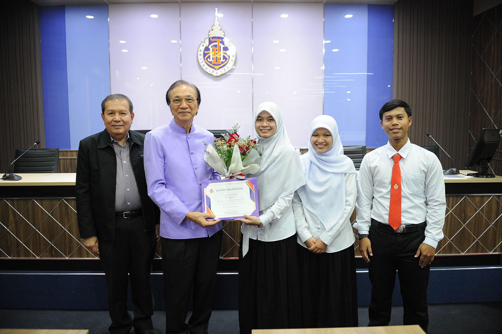 อธิการบดี ม.วลัยลักษณ์ มอบเกียรติบัตรและช่อดอกไม้แสดงความยินดีแก่อาจารย์ นักศึกษาที่ได้รับรางวัล และมอบช่อดอกไม้แก่อาจารย์ผู้ได้รับประกาศนียบัตรของ UKPSF