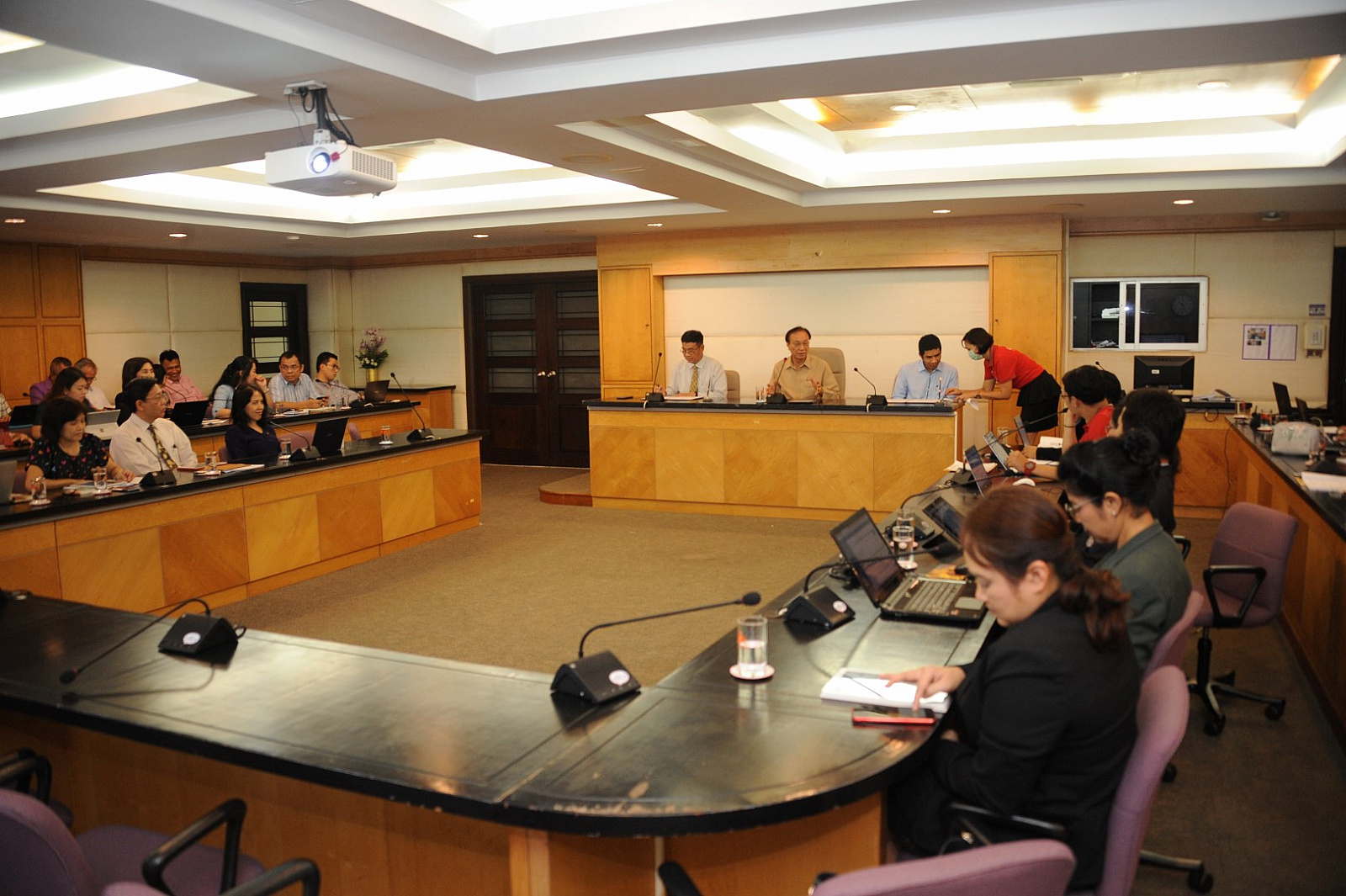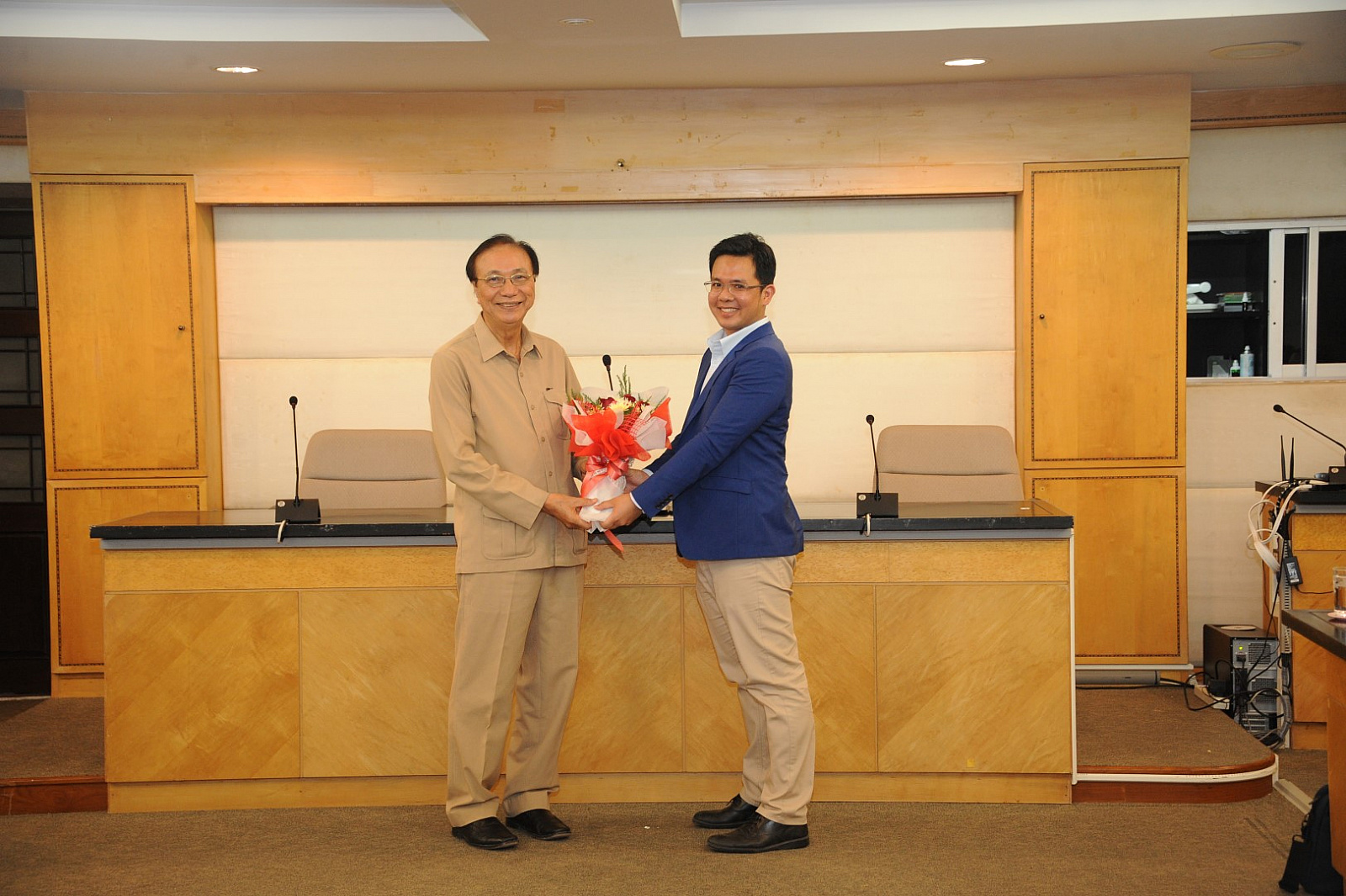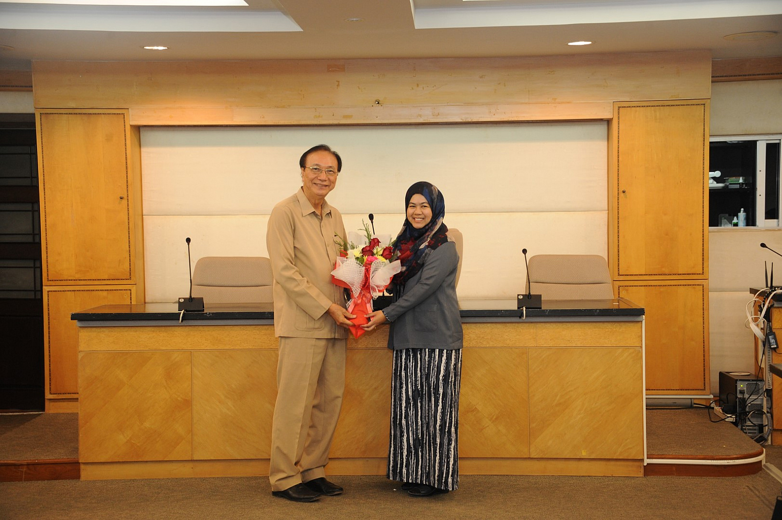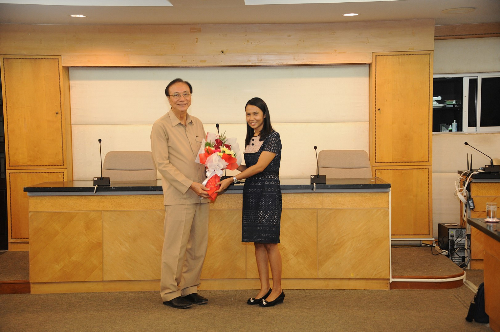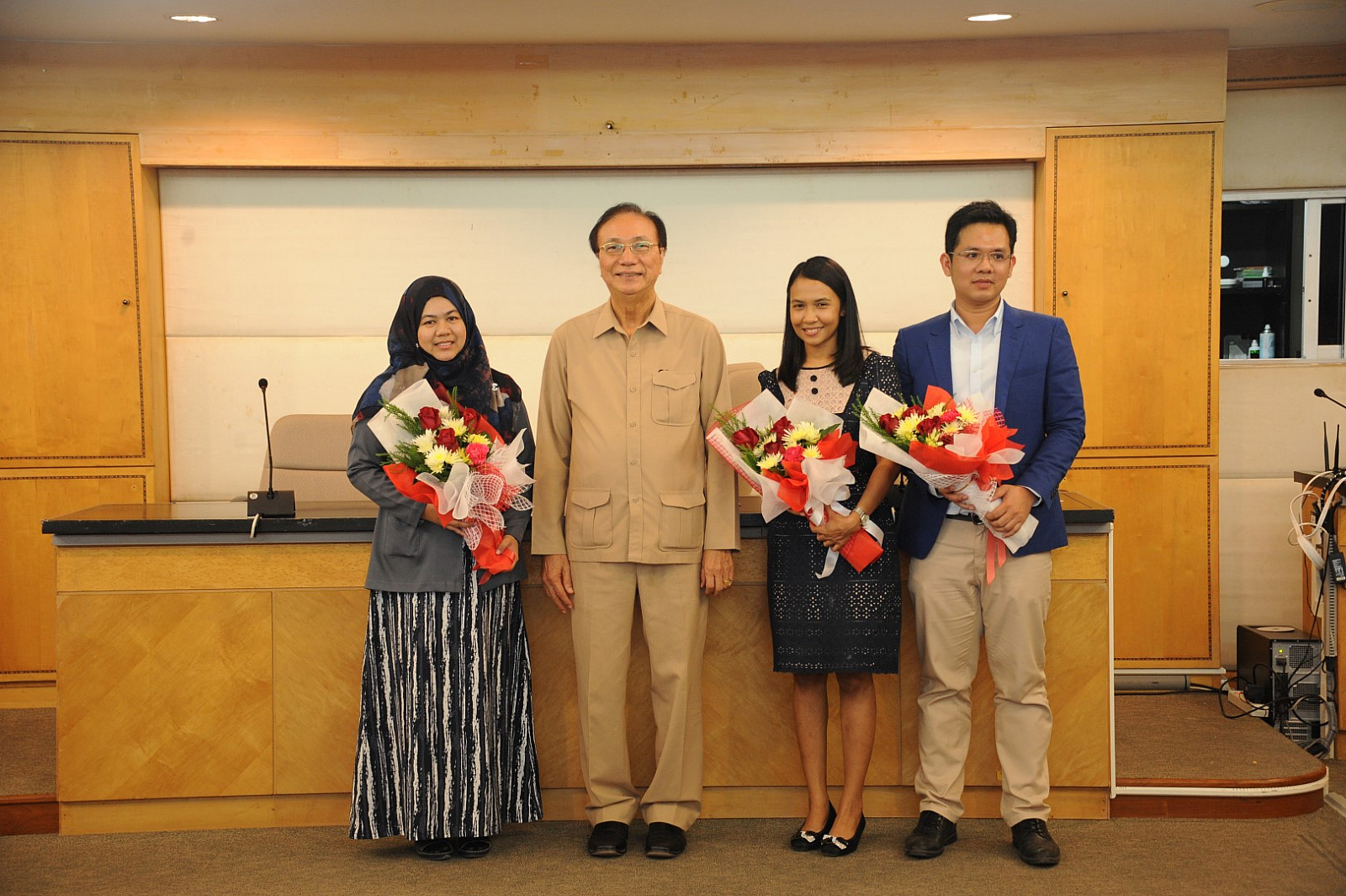 อธิการบดีมอบช่อดอกไม้แสดงความยินดีแก่ผู้ได้รับแต่งตั้งดำรงตำแหน่งทางวิชาการ ครั้งที่ 11 ประจำปี 2561