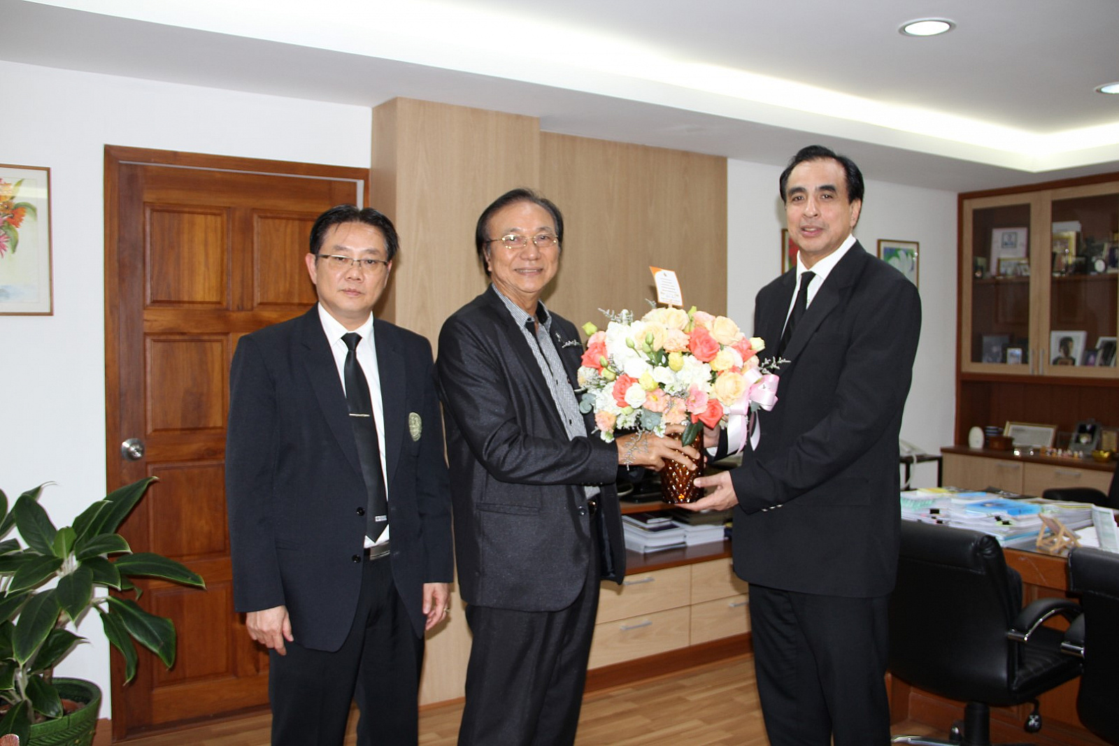 ศาสตราจารย์ ดร.สมบัติ ธำรงธัญวงศ์ รักษาการแทนอธิการบดีมหาวิทยาลัยวลัยลักษณ์ พร้อมด้วย ศาสตราจารย์ ดร.ธวัชชัย ศุภดิษฐ์ รักษาการแทนรองอธิการบดีฝ่ายวางแผนและยุทธศาสตร์การพัฒนา และบุคลากรจากหน่วยประสานงานมหาวิทยาลัยวลัยลักษณ์ กรุงเทพมหานคร เข้าพบเพื่อแสดงความยินดีกับ นายเดชาภิวัฒน์ ณ สงขลา เนื่องในโอกาสได้รับการแต่งตั้งให้ดำรงตำแหน่งผู้อำนวยการสำนักงบประมาณ ในโอกาสเดียวกันนี้ได้แสดงความยินดีกับ นายภูมิรักษ์ ชมแสง และนางเยาวลักษณ์ จำปีรัตน์ ในโอกาสได้รับการแต่งตั้งให้ดำรงตำแหน่งรองผู้อำนวยการสำนักงบประมาณ เมื่อวันที่ 11 ตุลาคม 2560 ณ สำนักงบประมาณ ถนนพระราม 6 กรุงเทพมหานคร