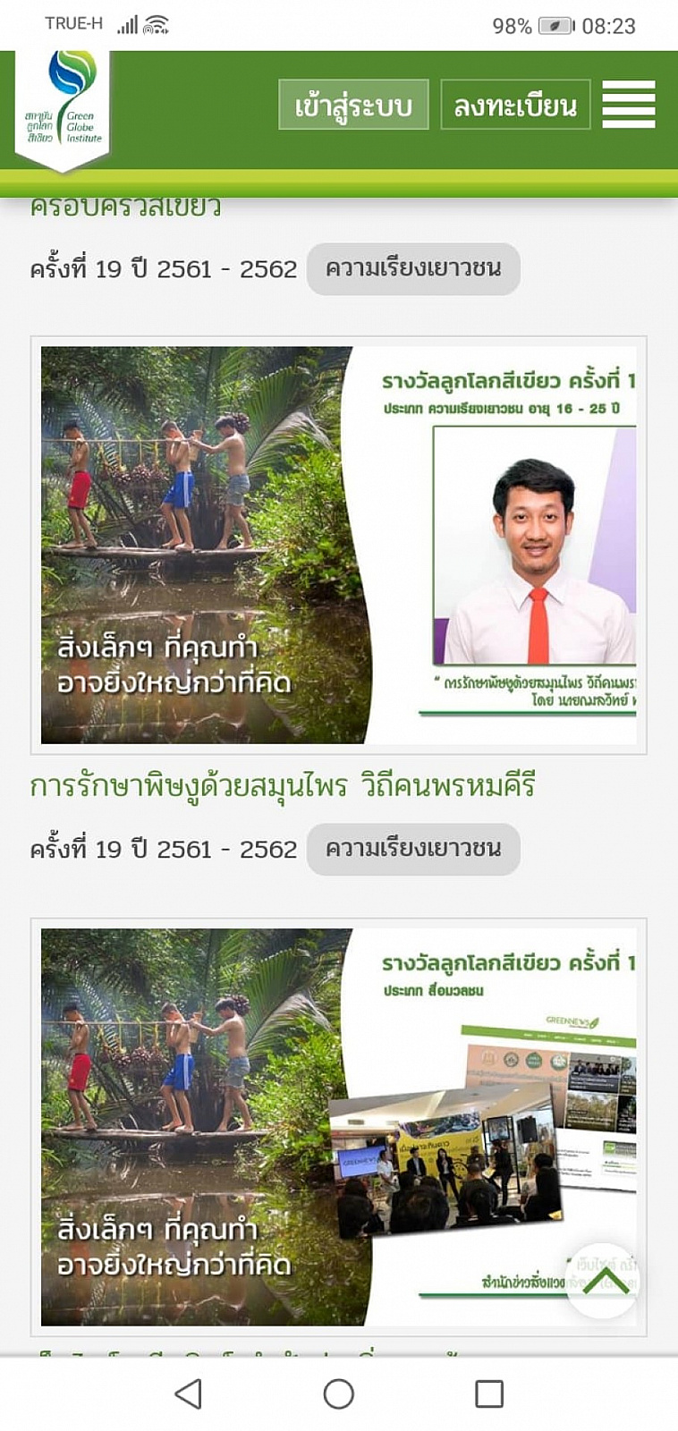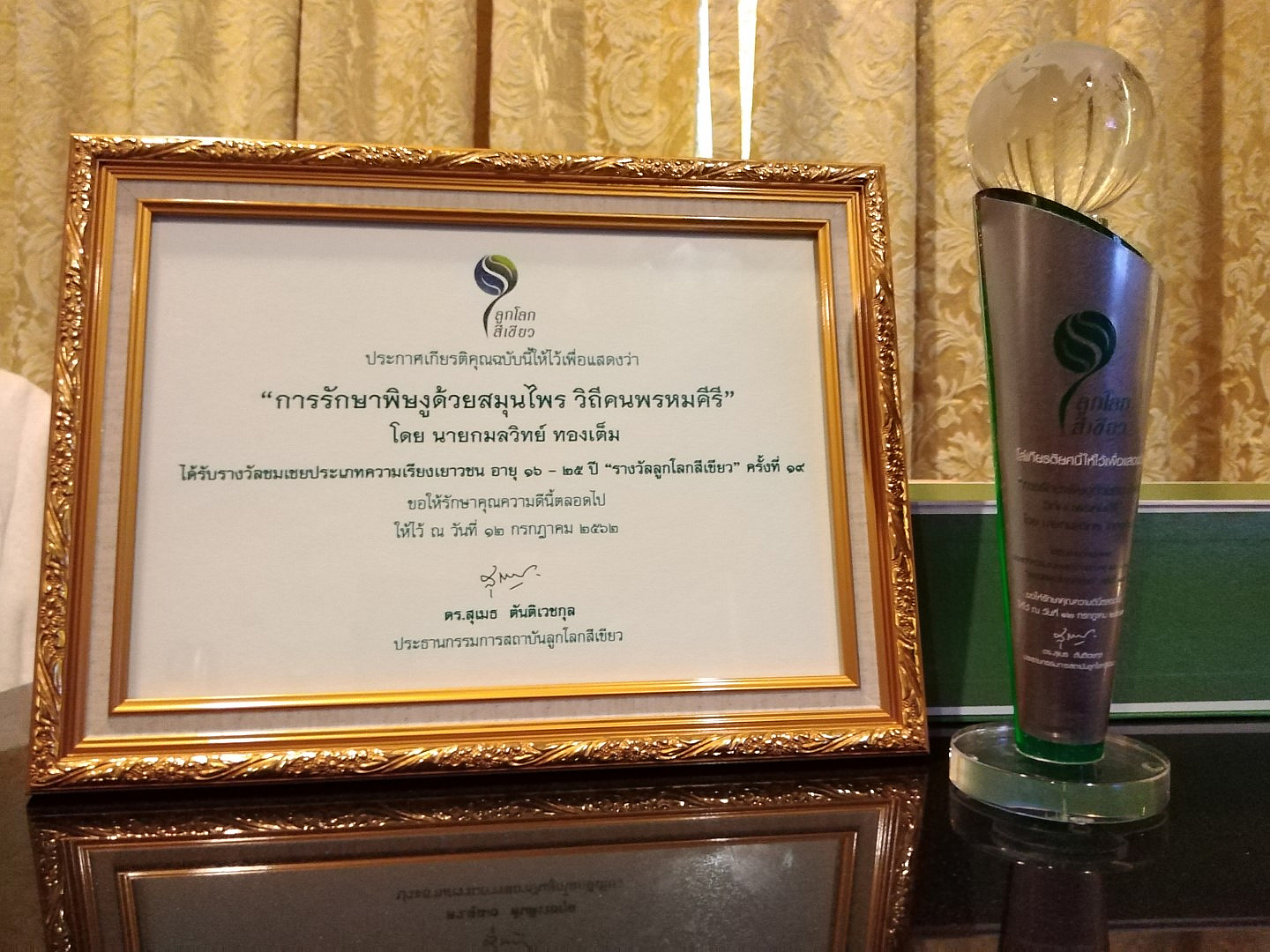 นักศึกษาไทยศึกษาบูรณาการ ม.วลัยลักษณ์ ได้รับรางวัลลูกโลกสีเขียว ครั้งที่ 19