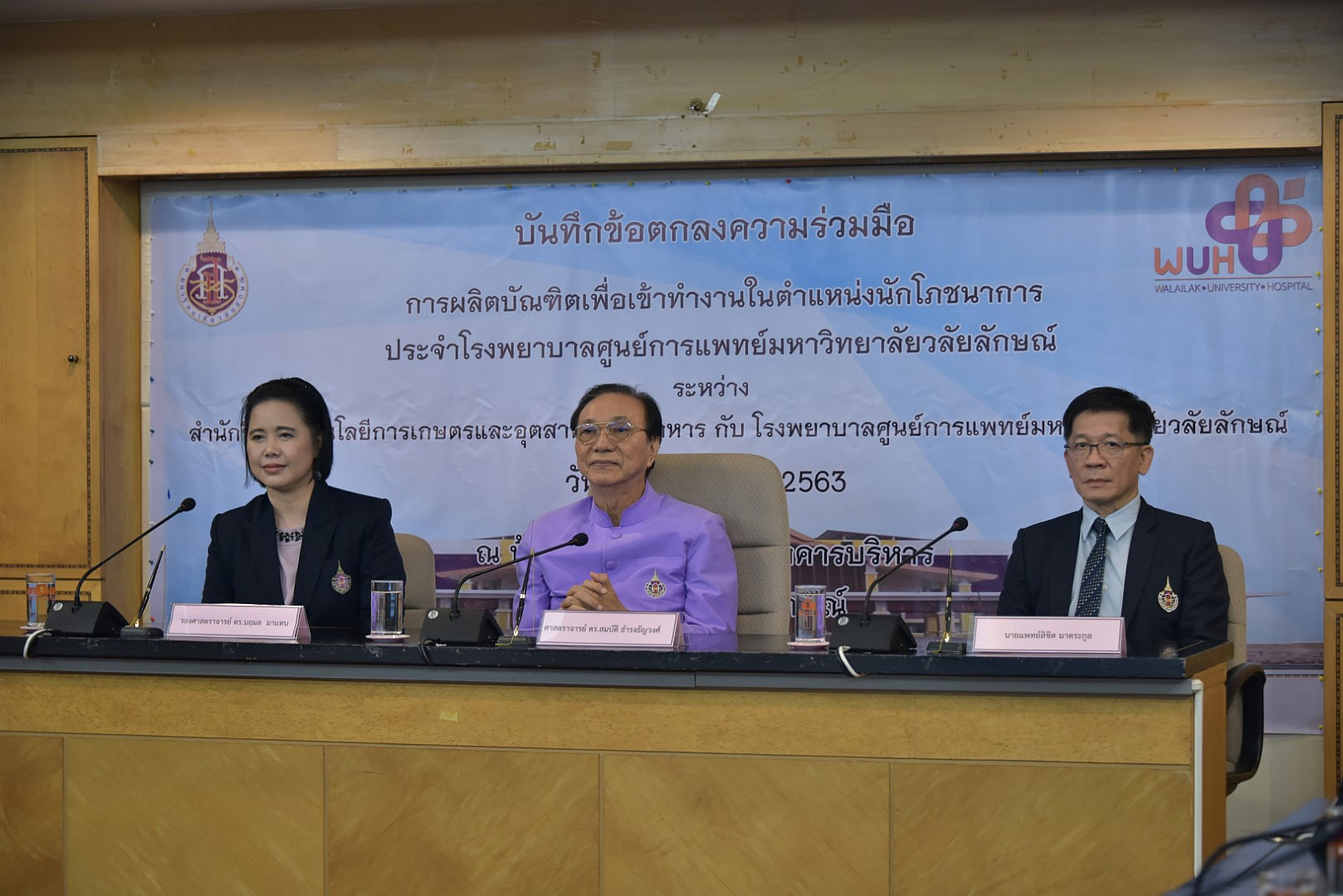 สำนักวิชาเทคโนโลยีการเกษตรและอุตสาหกรรมอาหาร ลงนาม MOU ผลิตบัณฑิตนักโภชนาการ กับ โรงพยาบาลศูนย์การแพทย์มหาวิทยาลัยวลัยลักษณ์