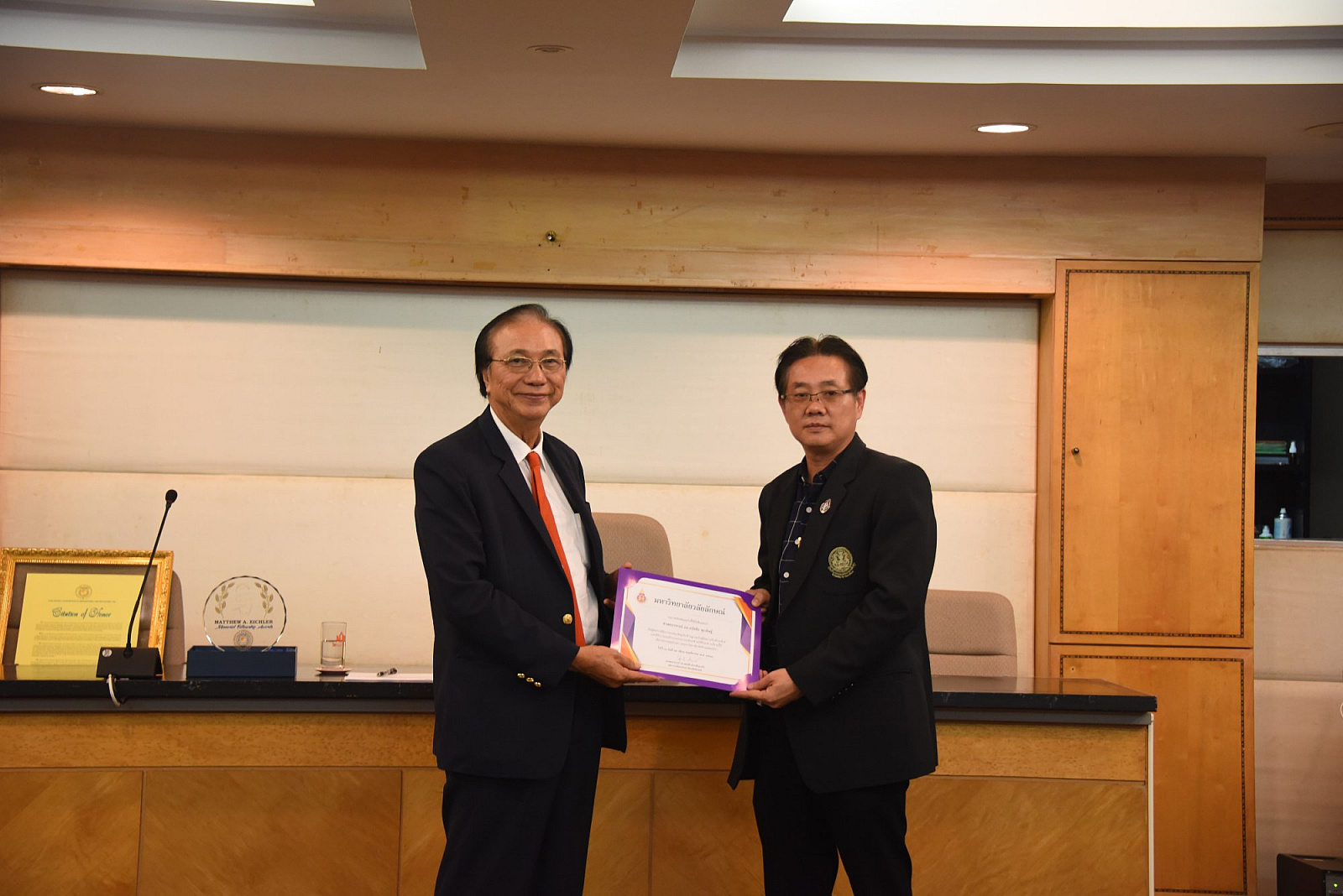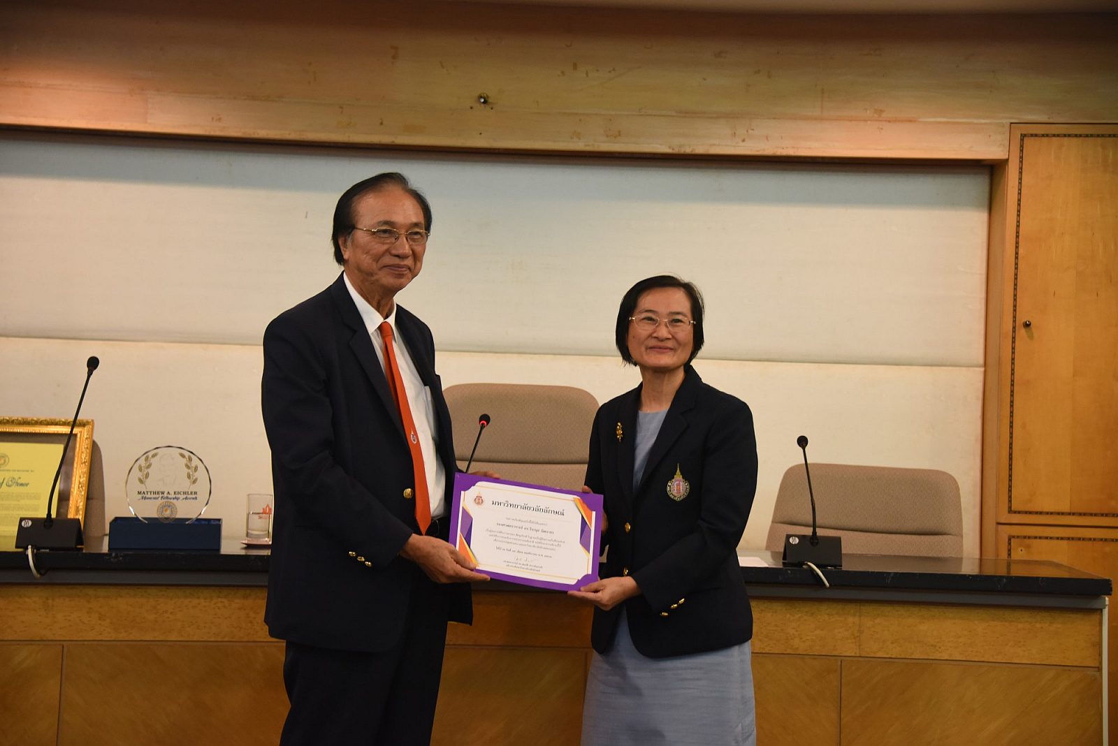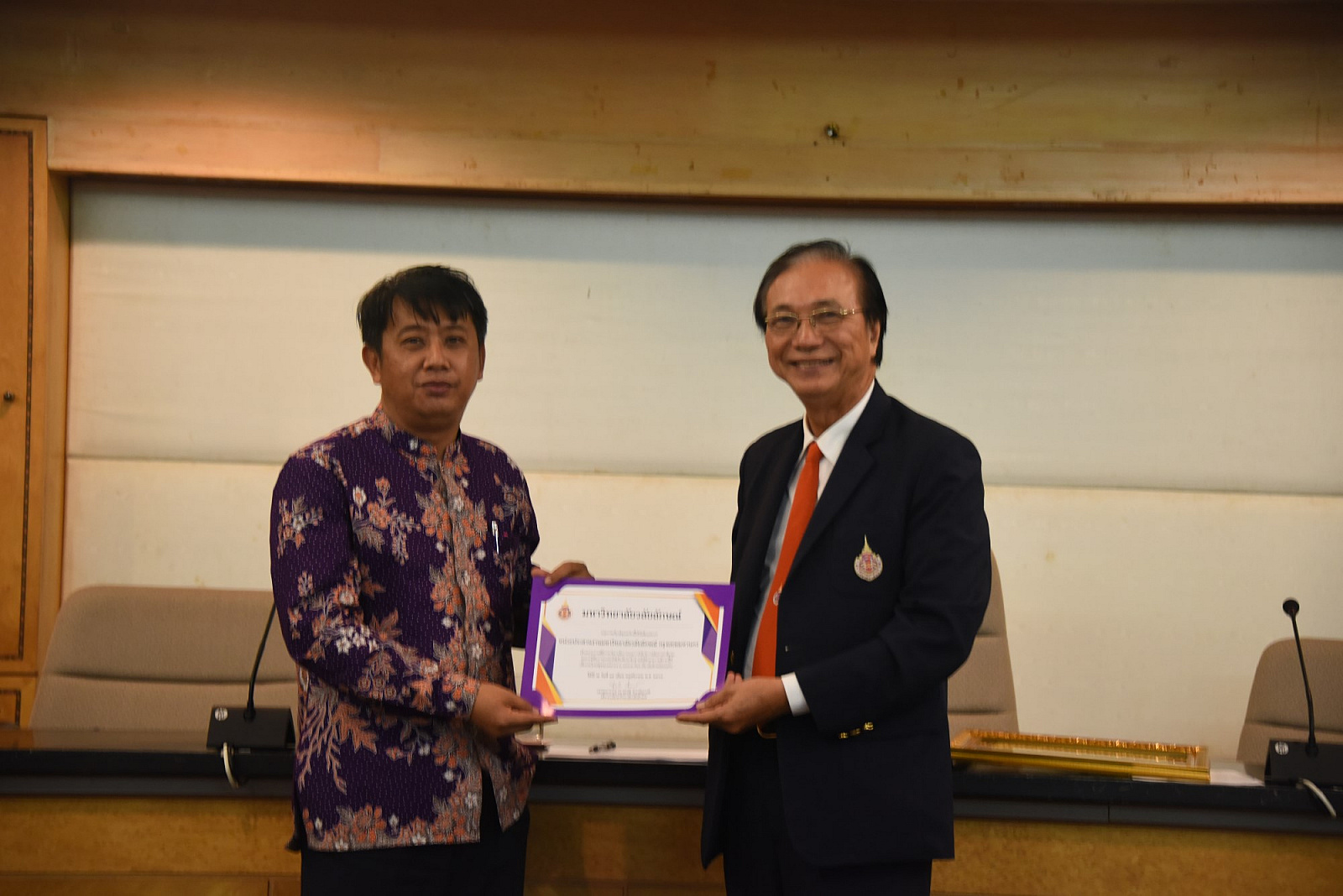 อธิการบดี มอบเกียรติบัตรพร้อมช่อดอกไม้แสดงความยินดีแก่ผู้ได้รับการยกย่องเชิดชูเกียรติ ในฐานะผู้มีผลงานเป็นที่ประจักษ์และเป็นที่ยอมรับจากหน่วยงานต่างๆ