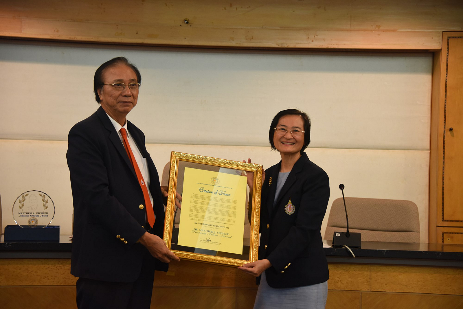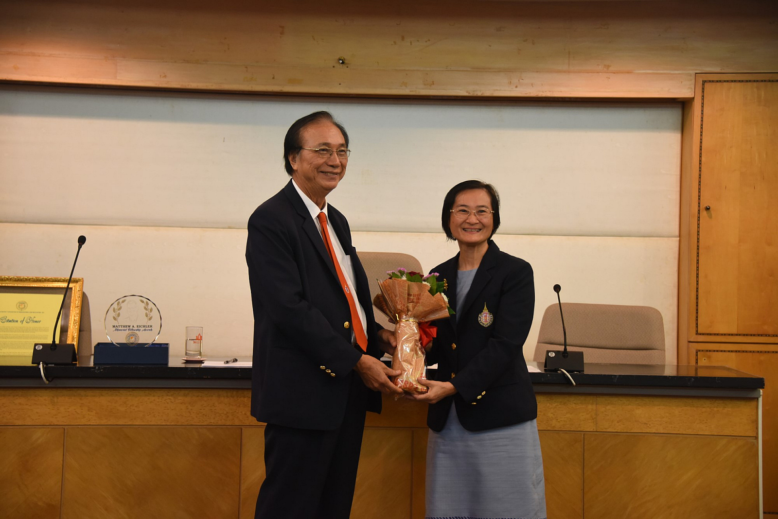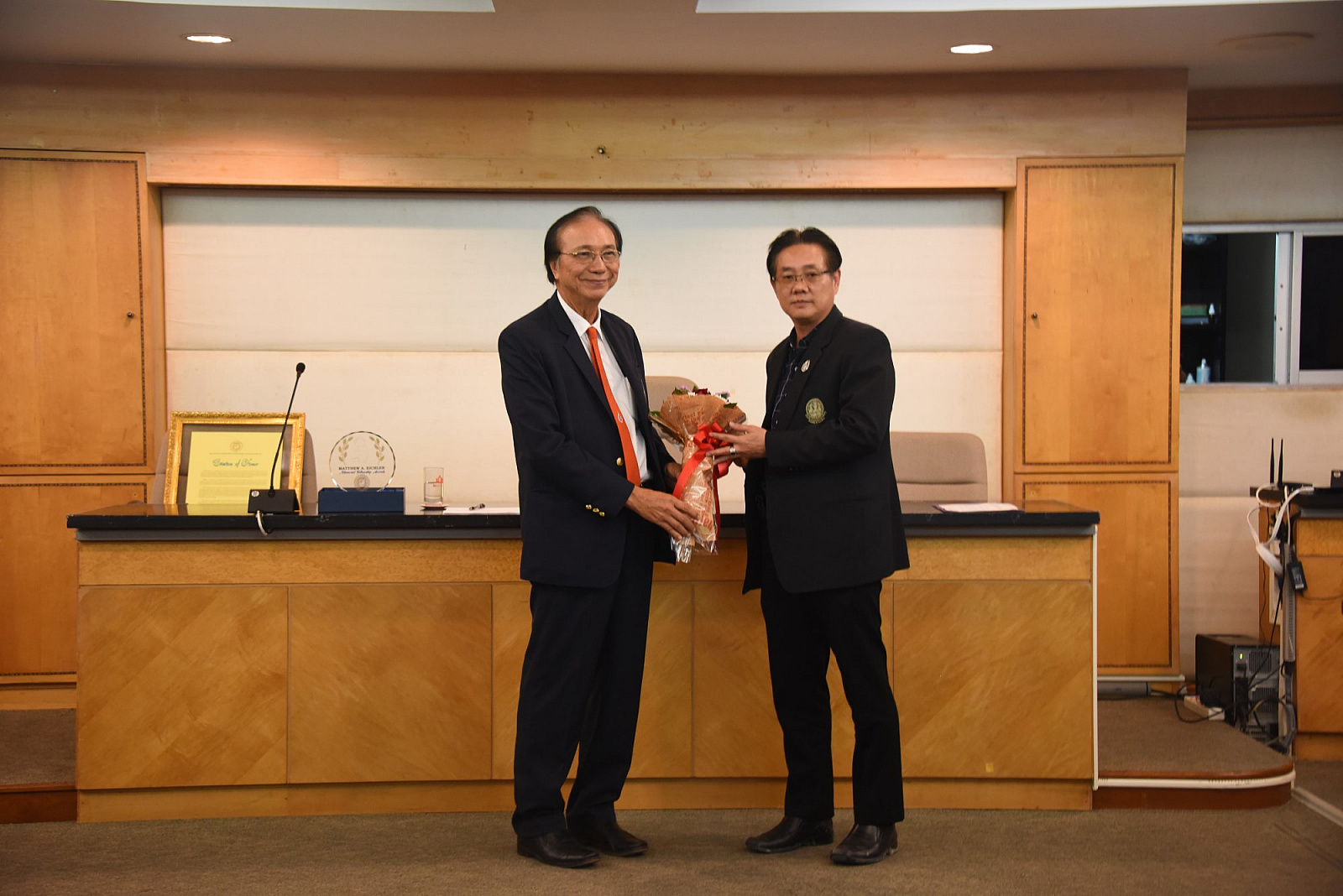 อธิการบดี มอบเกียรติบัตรพร้อมช่อดอกไม้แสดงความยินดีแก่ผู้ได้รับการยกย่องเชิดชูเกียรติ ในฐานะผู้มีผลงานเป็นที่ประจักษ์และเป็นที่ยอมรับจากหน่วยงานต่างๆ
