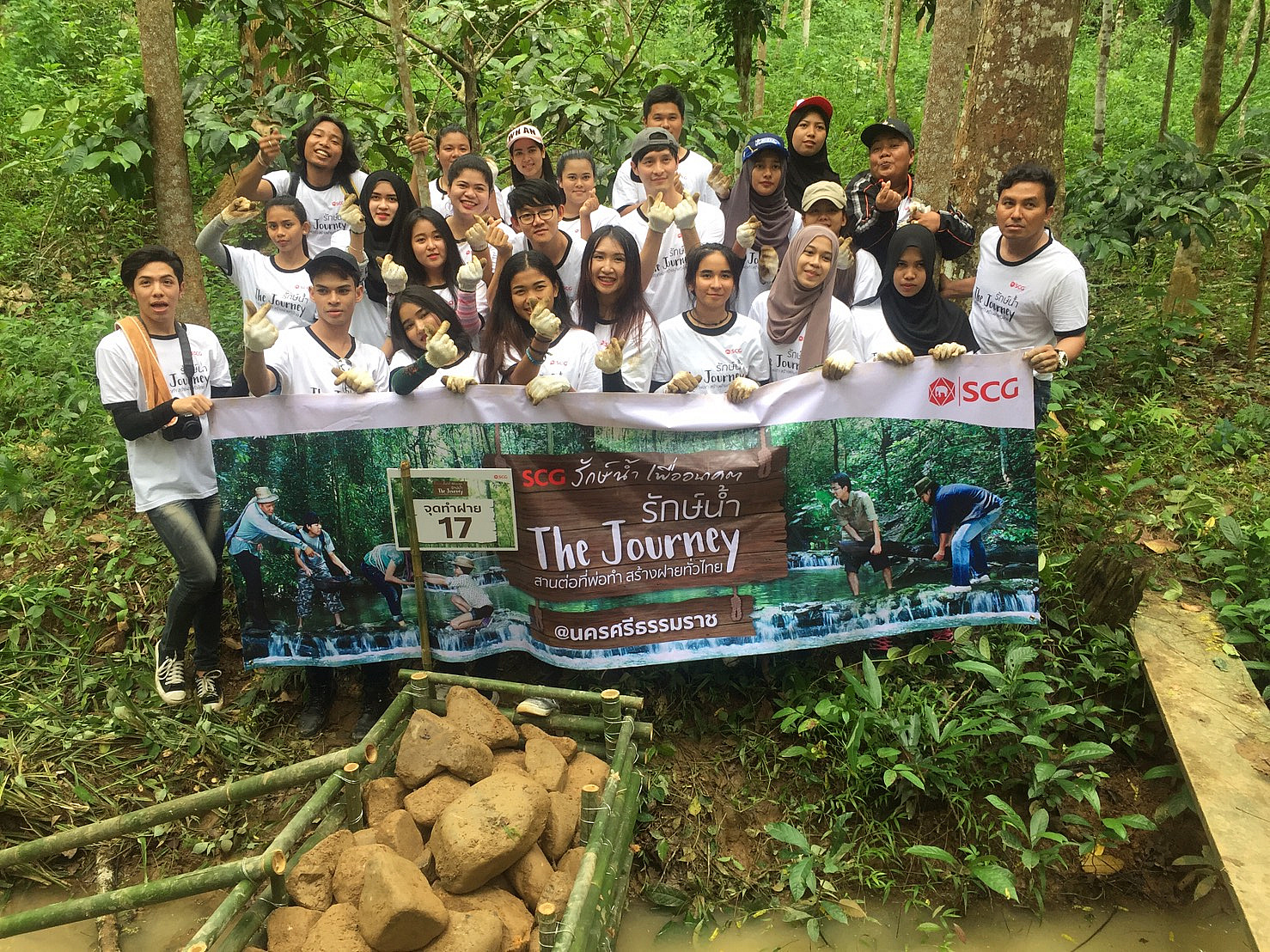เมื่อวันที่ 14 กรกฎาคม 2560 ที่ผ่านมา ศาสตราจารย์ ดร.สมบัติ ธำรงธัญวงศ์ รักษาการแทนอธิการบดี พร้อมด้วย ดร.อัตนันท์ เตโชพิศาลวงศ์ รักษาการแทนผู้ช่วยอธิการบดีฝ่ายสื่อสารองค์กร คุณจิตตนา หนูณะ หัวหน้าส่วนสื่อสารองค์ เจ้าหน้าที่และนักศึกษาหลักสูตรนิเทศศาสตร์ สำนักวิชาสารสนเทศศาสตร์ พร้อมด้วยนักศึกษาจิตอาสา ม.วลัยลักษณ์ ประมาณ 50 คน เข้าร่วมกิจกรรมเอสซีจี สานต่อกิจกรรม “รักษ์น้ำ The Journey สานต่อที่พ่อทำ สร้างฝายทั่วไทย” ที่อำเภอทุ่งสง จังหวัดนครศรีธรรมราช โดยมีนายอาสา สารสิน ประธานคณะกรรมการกิจการสังคมเพื่อการพัฒนาอย่างยั่งยืน เอสซีจี เป็นประธานเปิดงาน และมีนายจำเริญ ทิพญพงศ์ธาดา ผู้ว่าราชการจังหวัดนครศรีธรรมราช กล่าวต้อนรับ ศาสตราจารย์ ดร.สมบัติ ธำรงธัญวงศ์ รักษาการแทนอธิการบดี ผู้บริหารท้องถิ่น ผู้บริหารและพนักงาน เอสซีจีทุ่งสง ประชาชนและเยาวชนคนรุ่นใหม่ เข้าร่วมพิธีเปิด