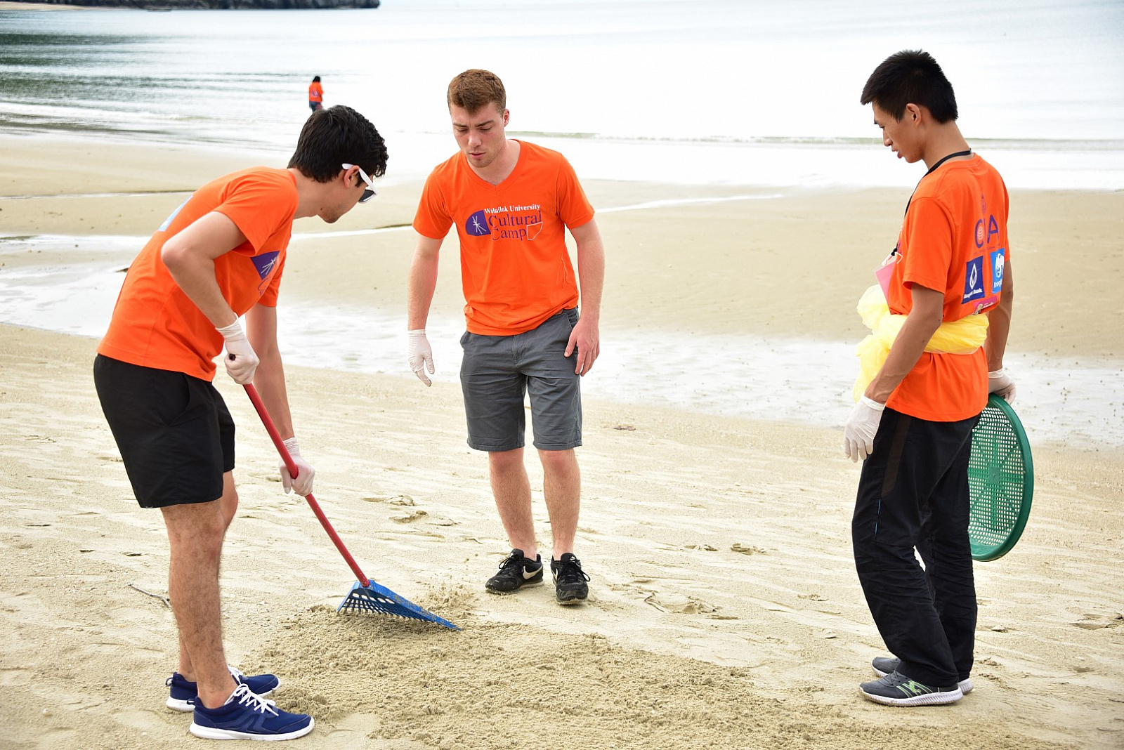นักศึกษาค่ายวัฒนธรรมนานาชาติ 33 ประเทศ ลงพื้นที่ทำความสะอาดชายหาดที่อ.ขนอม