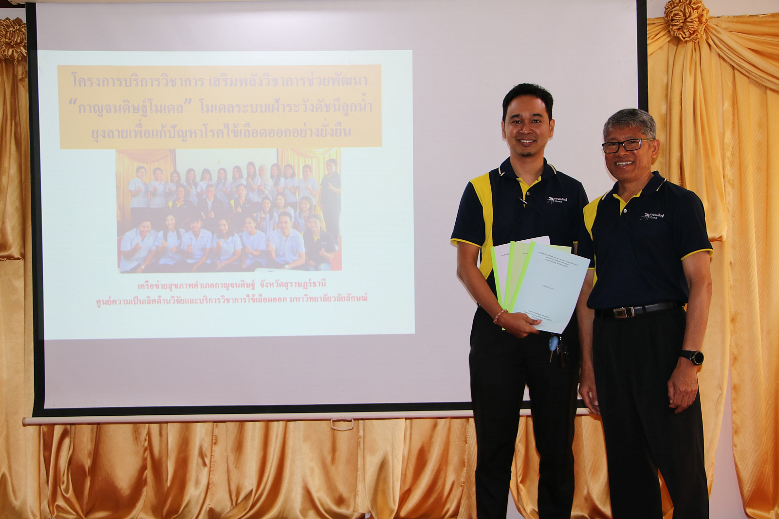 เสริมพลังวิชาการช่วยการพัฒนา โครงการบริการวิชาการ “กาญจนดิษฐ์โมเดล : โมเดลระบบเฝ้าระวังดัชนีลูกน้ำยุงลายแก้ไขปัญหาโรคไข้เลือดออกอย่างยั่งยืน กรณีอำเภอขนาดใหญ่ จังหวัดสุราษฎร์ธานี”