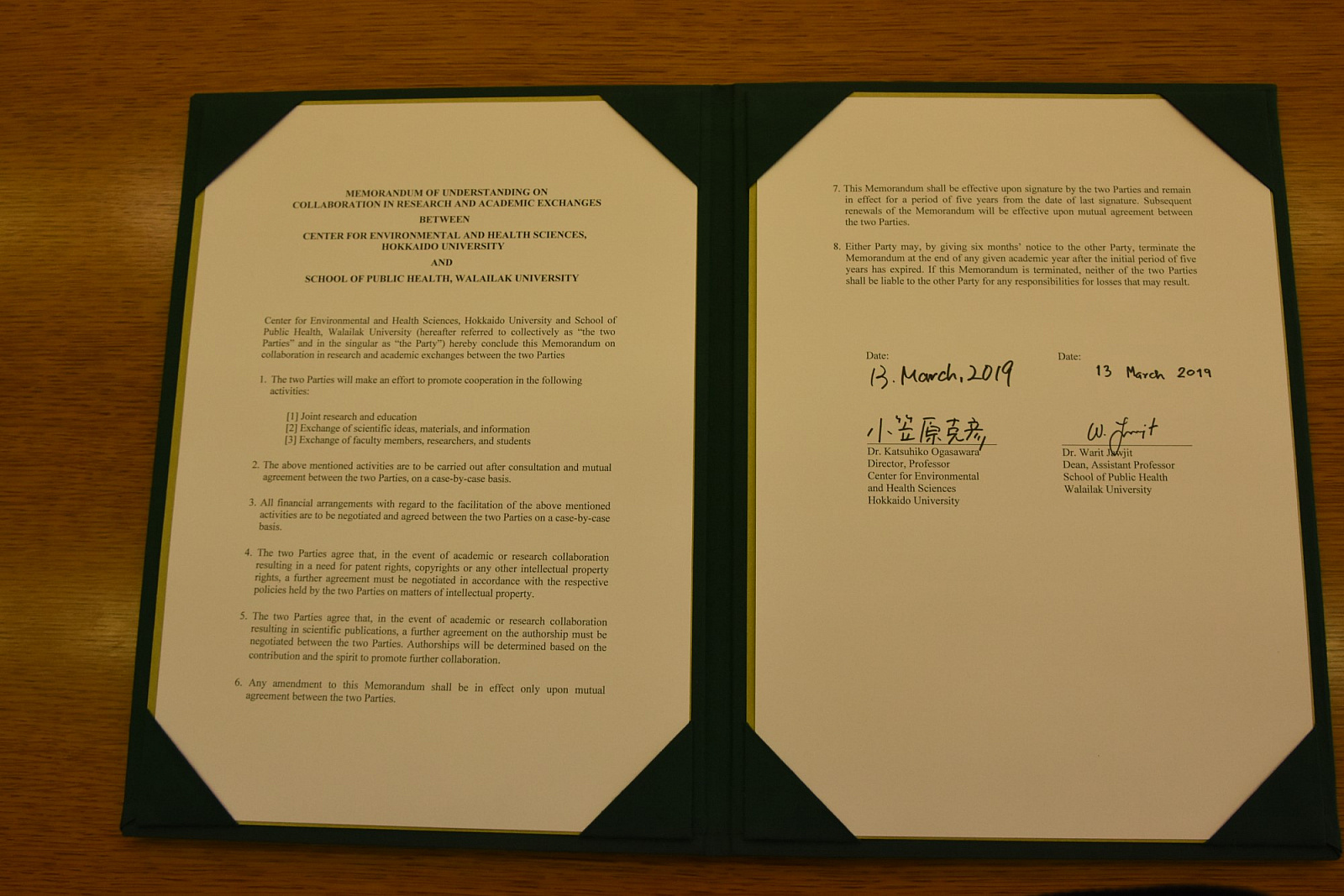 สำนักวิชาสาธารณสุขศาสตร์ มหาวิทยาลัยวลัยลักษณ์ ลงนามบันทึกข้อตกลง (MOU) กับ Center for Environmental and Health Sciences, Hokkaido University ประเทศญี่ปุ่น
