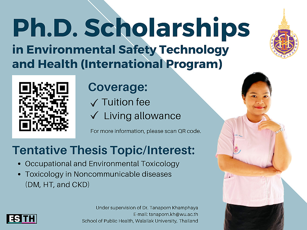 ทุนระดับปริญญาเอก สาขาเทคโนโลยีสิ่งแวดล้อม ความปลอดภัย และสุขภาพ