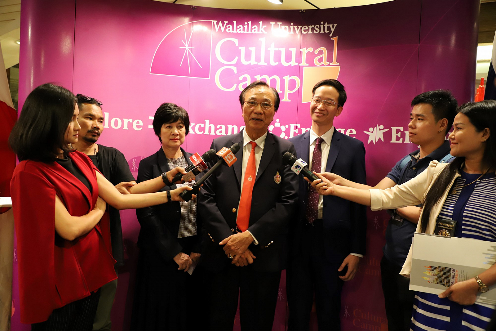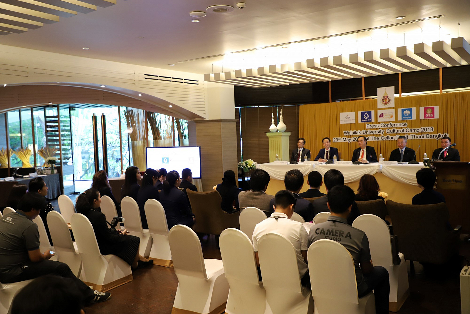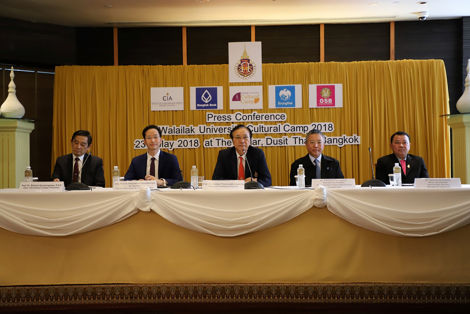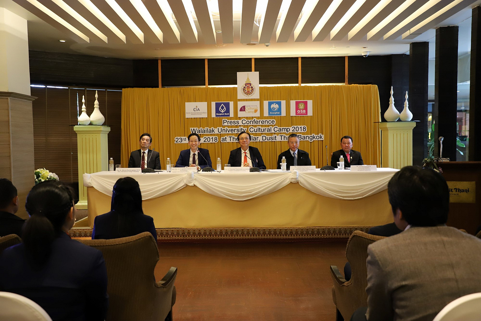 ศาสตราจารย์ ดร.สมบัติ ธำรงธัญวงศ์ อธิการบดี ม.วลัยลักษณ์ พร้อมด้วย ศาสตราจารย์ ดร.ทพ.สิทธิชัย ขุนทองแก้ว รักษาการแทนคณบดีวิทยาลัยทันตแพทยศาสตร์นานาชาติ ผู้ช่วยศาสตราจารย์ ดร.พงศธร เดชาติวงศ์ ณ อยุธยา ผู้กำกับดูแลฝ่ายภายในศูนย์กิจการนานาชาติ ในฐานะผู้อำนวยการโครงการค่ายวัฒนธรรมนานาชาติ นายเทิดชัย วิรุฬห์พานิช ผู้ช่วยกรรมการผู้จัดการใหญ่ ธ.กรุงไทย จำกัด(มหาชน) และนายสมชาย อาภรณ์พงษ์ ผู้อำนวยการฝ่ายบริหารและพัฒนาหนี้นอกระบบ ธ.ออมสิน ร่วมกันแถลงข่าวการจัดค่ายวัฒนธรรมนานาชาติ ครั้งที่ 2 เพื่อเทิดพระเกียรติ สมเด็จพระเจ้าลูกเธอ เจ้าฟ้าจุฬาภรณวลัยลักษณ์ อัครราชกุมารี ภายใต้แนวคิด "วัฒนธรรมไร้พรมแดน" โดยมีสื่อมวลชนจากสถานีโทรทัศน์ สถานีวิทยุกระจายเสียง หนังสือพิมพ์ รวมถึงสื่อออนไลน์ต่างๆ รวมทั้งสิ้นกว่า 30 คนเข้าร่วม เมื่อวันที่ 23 พฤษภาคม 2561 ที่ผ่านมา ณ ห้องเดอะเซลล์ลาร์ โรงแรมดุสิตธานี กรุงเทพมหานคร