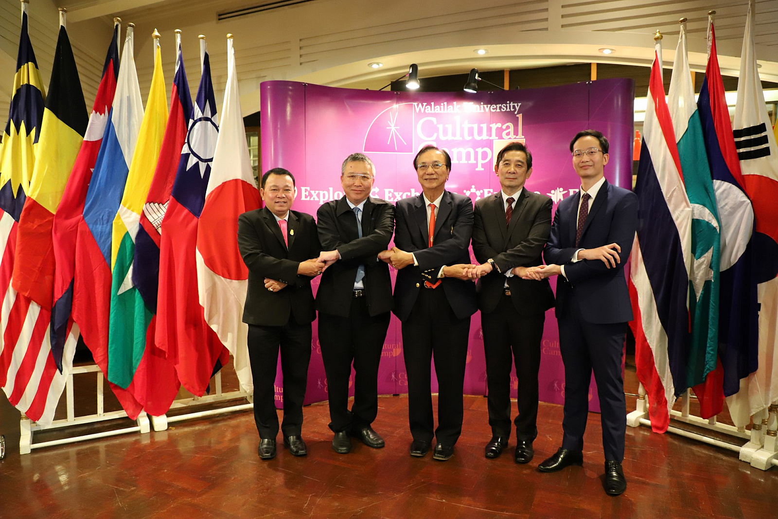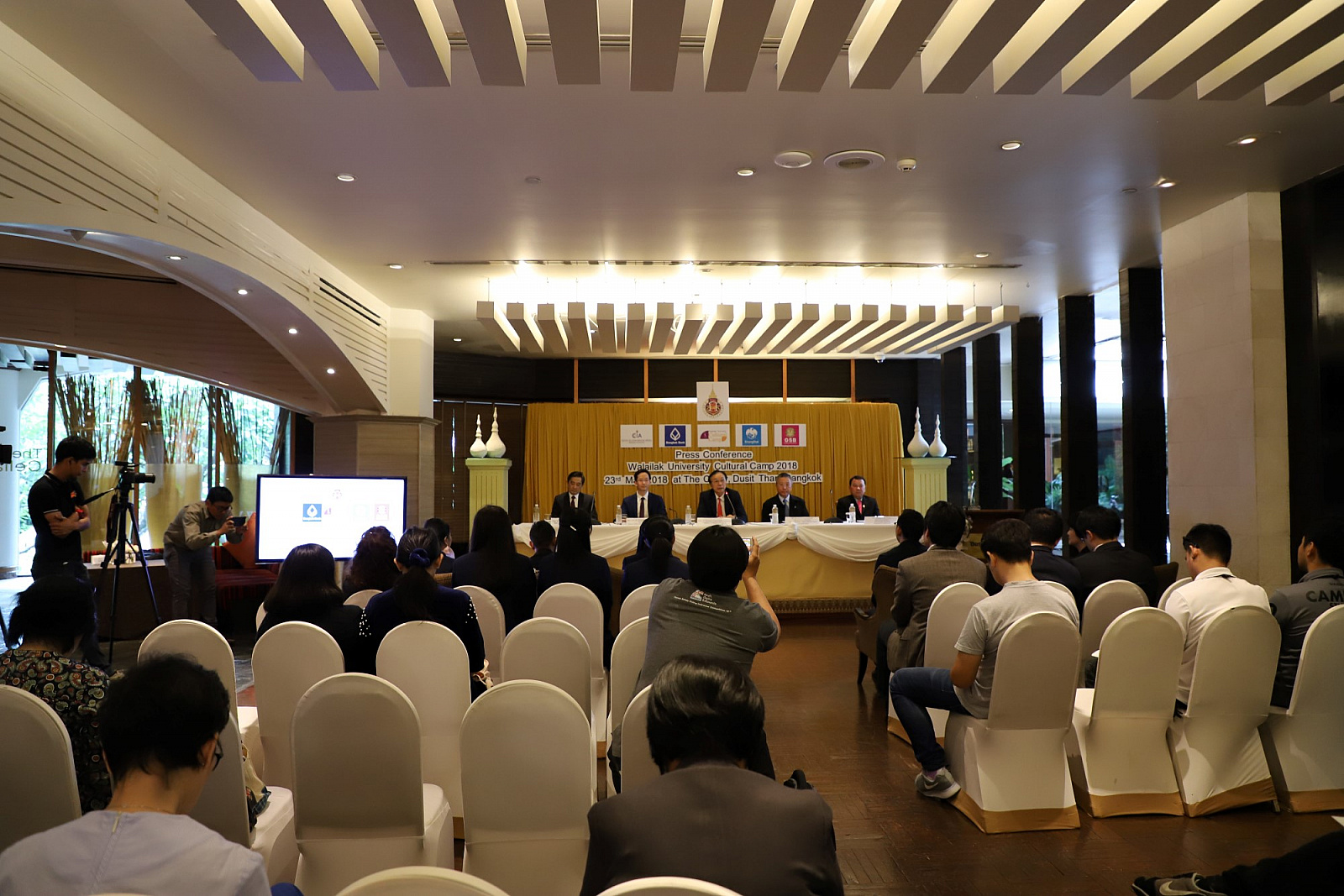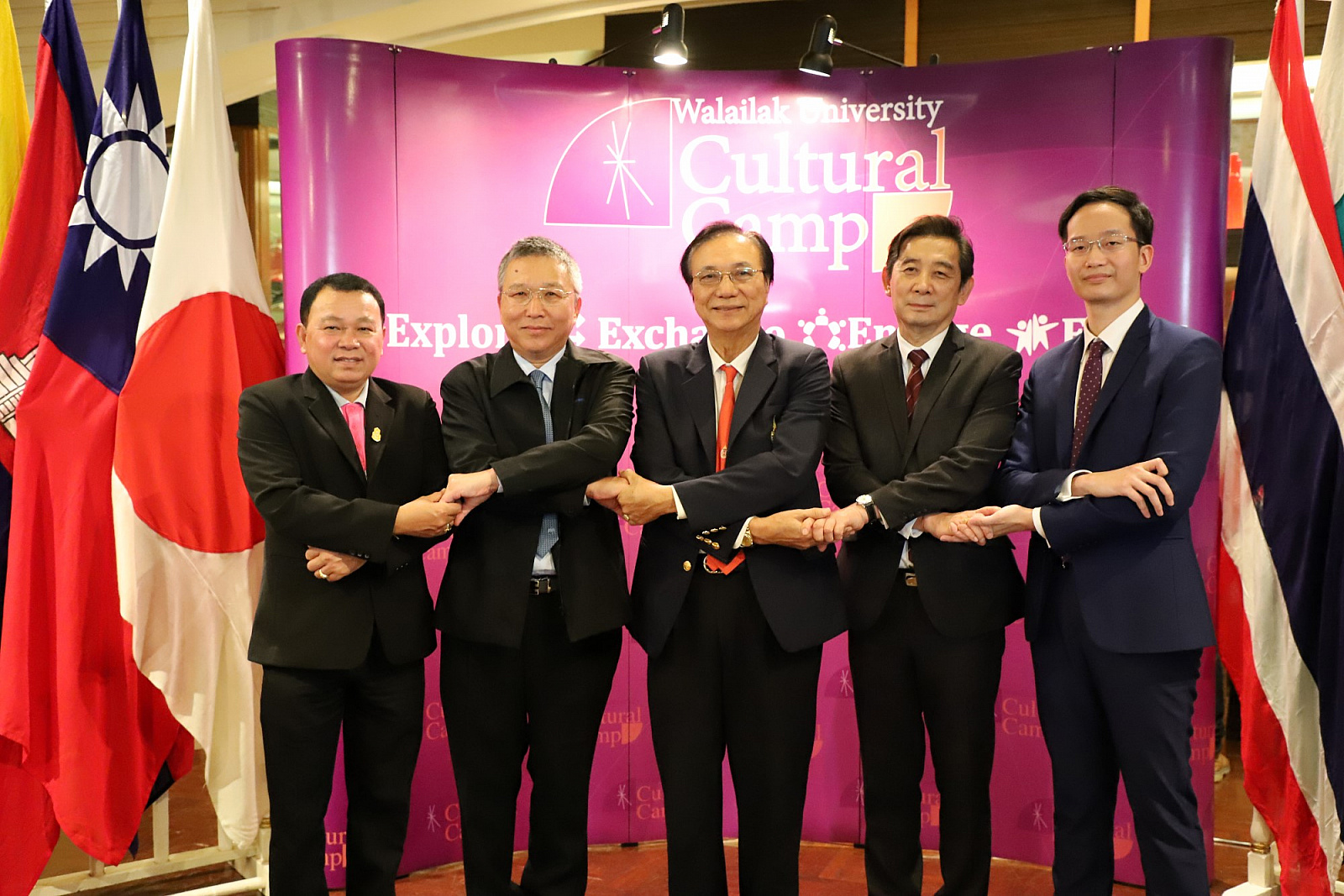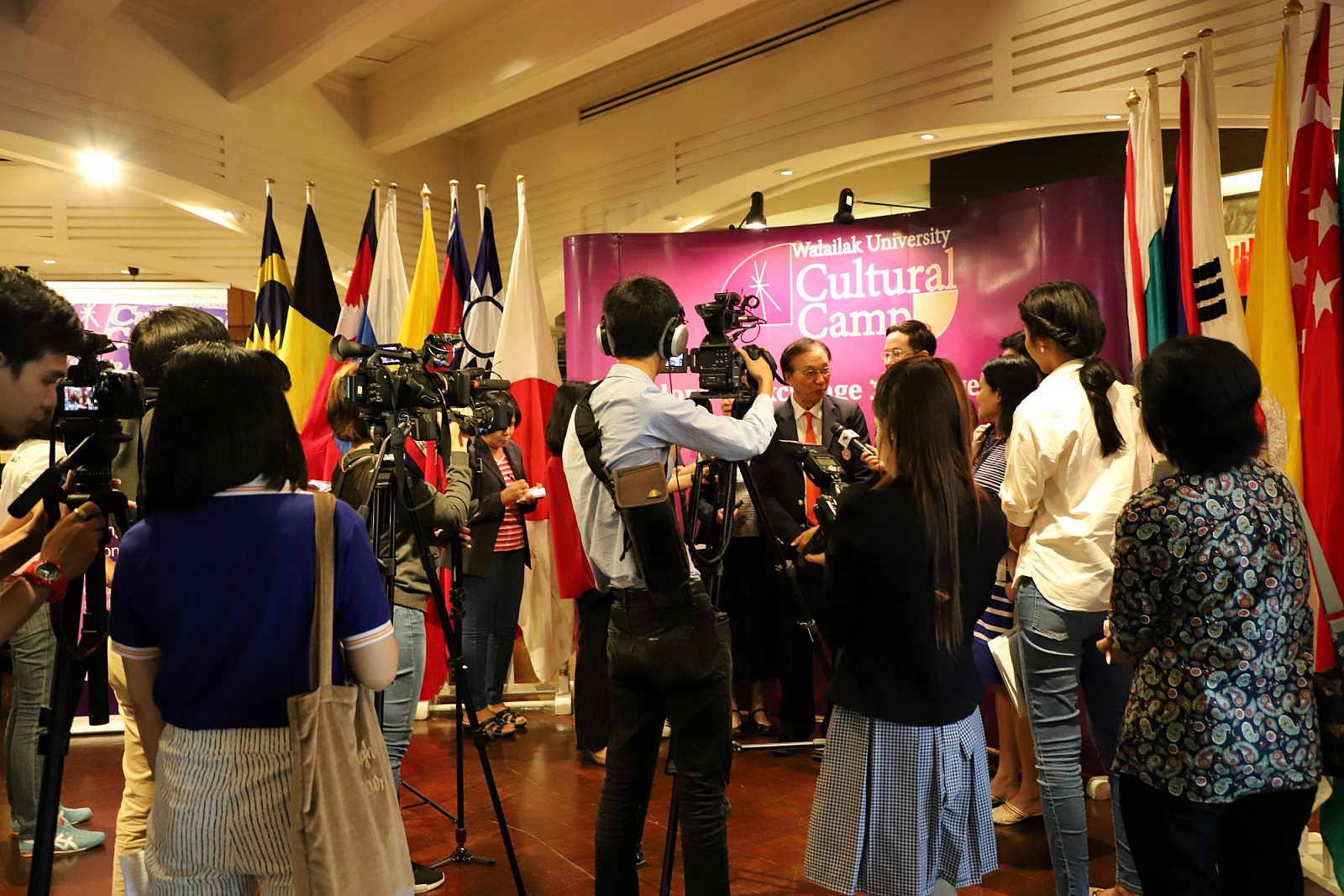 ศาสตราจารย์ ดร.สมบัติ ธำรงธัญวงศ์ อธิการบดี ม.วลัยลักษณ์ พร้อมด้วย ศาสตราจารย์ ดร.ทพ.สิทธิชัย ขุนทองแก้ว รักษาการแทนคณบดีวิทยาลัยทันตแพทยศาสตร์นานาชาติ ผู้ช่วยศาสตราจารย์ ดร.พงศธร เดชาติวงศ์ ณ อยุธยา ผู้กำกับดูแลฝ่ายภายในศูนย์กิจการนานาชาติ ในฐานะผู้อำนวยการโครงการค่ายวัฒนธรรมนานาชาติ นายเทิดชัย วิรุฬห์พานิช ผู้ช่วยกรรมการผู้จัดการใหญ่ ธ.กรุงไทย จำกัด(มหาชน) และนายสมชาย อาภรณ์พงษ์ ผู้อำนวยการฝ่ายบริหารและพัฒนาหนี้นอกระบบ ธ.ออมสิน ร่วมกันแถลงข่าวการจัดค่ายวัฒนธรรมนานาชาติ ครั้งที่ 2 เพื่อเทิดพระเกียรติ สมเด็จพระเจ้าลูกเธอ เจ้าฟ้าจุฬาภรณวลัยลักษณ์ อัครราชกุมารี ภายใต้แนวคิด "วัฒนธรรมไร้พรมแดน" โดยมีสื่อมวลชนจากสถานีโทรทัศน์ สถานีวิทยุกระจายเสียง หนังสือพิมพ์ รวมถึงสื่อออนไลน์ต่างๆ รวมทั้งสิ้นกว่า 30 คนเข้าร่วม เมื่อวันที่ 23 พฤษภาคม 2561 ที่ผ่านมา ณ ห้องเดอะเซลล์ลาร์ โรงแรมดุสิตธานี กรุงเทพมหานคร