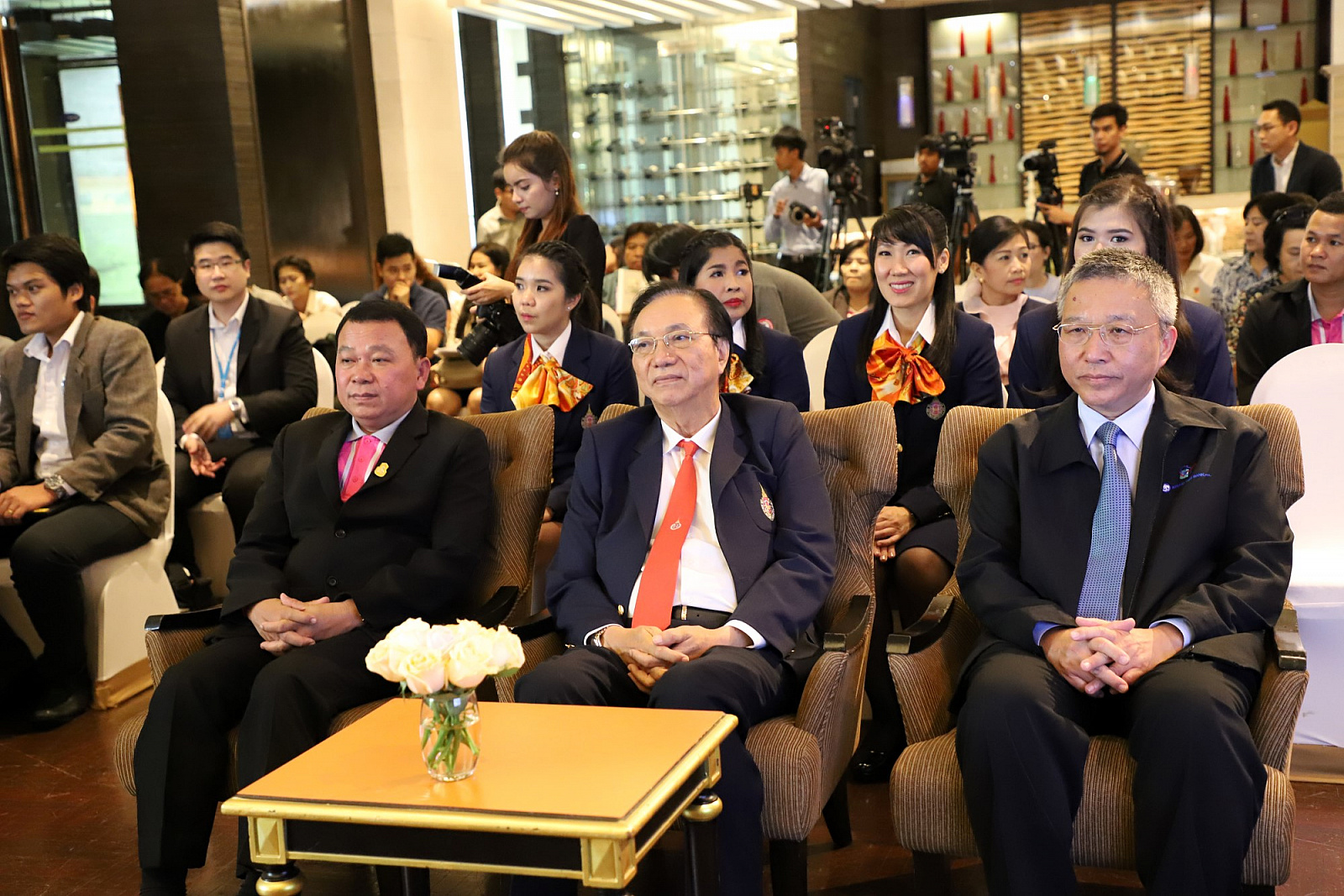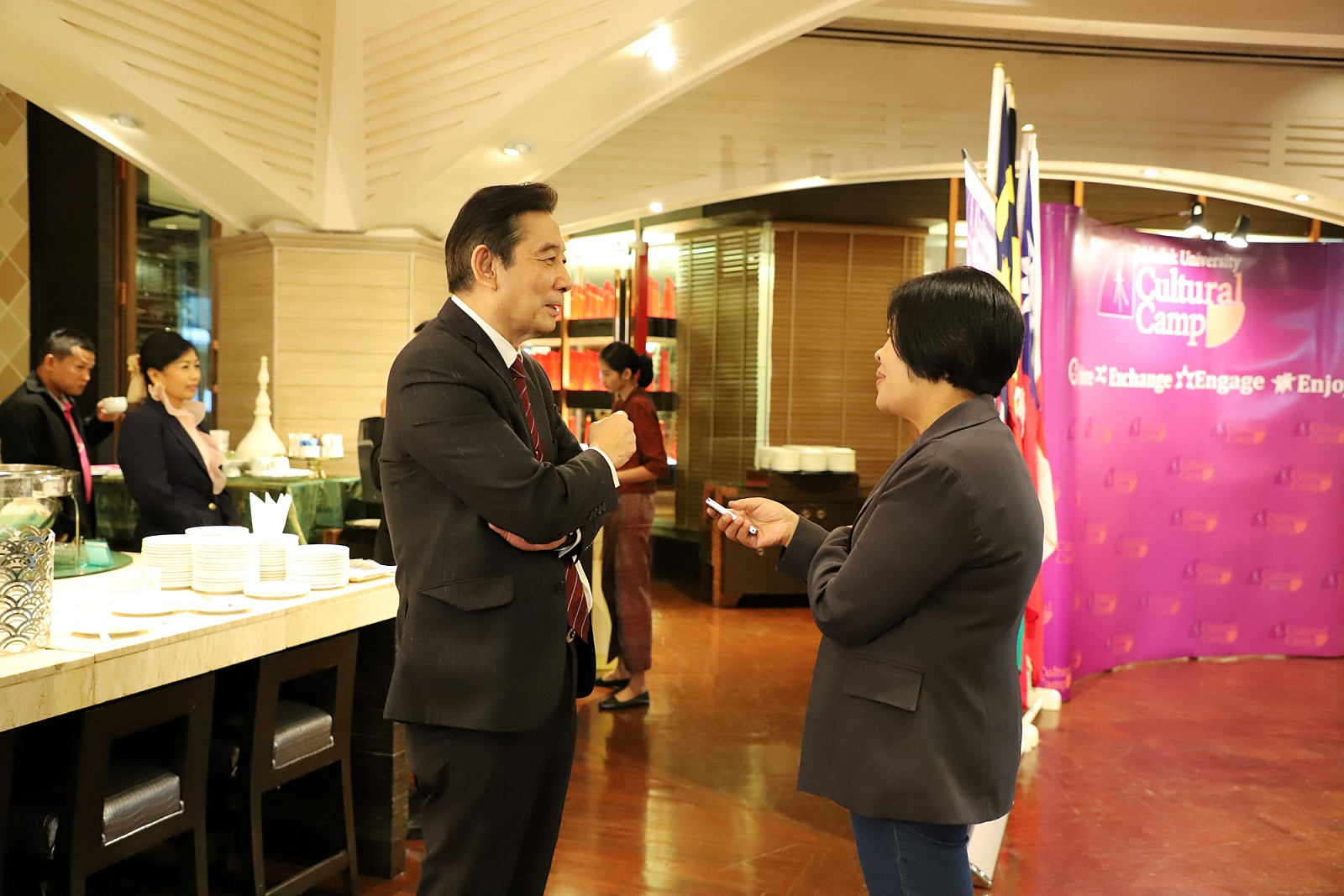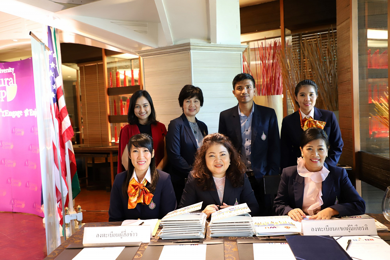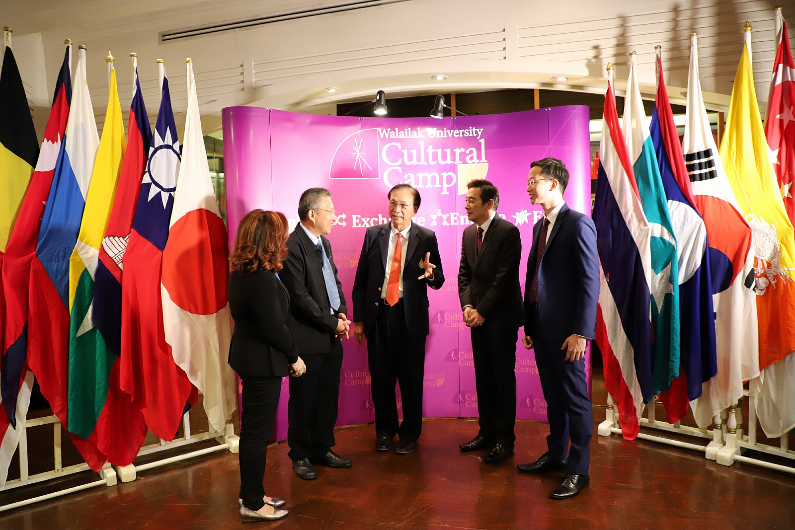 ศาสตราจารย์ ดร.สมบัติ ธำรงธัญวงศ์ อธิการบดี ม.วลัยลักษณ์ พร้อมด้วย ศาสตราจารย์ ดร.ทพ.สิทธิชัย ขุนทองแก้ว รักษาการแทนคณบดีวิทยาลัยทันตแพทยศาสตร์นานาชาติ ผู้ช่วยศาสตราจารย์ ดร.พงศธร เดชาติวงศ์ ณ อยุธยา ผู้กำกับดูแลฝ่ายภายในศูนย์กิจการนานาชาติ ในฐานะผู้อำนวยการโครงการค่ายวัฒนธรรมนานาชาติ นายเทิดชัย วิรุฬห์พานิช ผู้ช่วยกรรมการผู้จัดการใหญ่ ธ.กรุงไทย จำกัด(มหาชน) และนายสมชาย อาภรณ์พงษ์ ผู้อำนวยการฝ่ายบริหารและพัฒนาหนี้นอกระบบ ธ.ออมสิน ร่วมกันแถลงข่าวการจัดค่ายวัฒนธรรมนานาชาติ ครั้งที่ 2 เพื่อเทิดพระเกียรติ สมเด็จพระเจ้าลูกเธอ เจ้าฟ้าจุฬาภรณวลัยลักษณ์ อัครราชกุมารี ภายใต้แนวคิด "วัฒนธรรมไร้พรมแดน" โดยมีสื่อมวลชนจากสถานีโทรทัศน์ สถานีวิทยุกระจายเสียง หนังสือพิมพ์ รวมถึงสื่อออนไลน์ต่างๆ รวมทั้งสิ้นกว่า 30 คนเข้าร่วม เมื่อวันที่ 23 พฤษภาคม 2561 ที่ผ่านมา ณ ห้องเดอะเซลล์ลาร์ โรงแรมดุสิตธานี กรุงเทพมหานคร