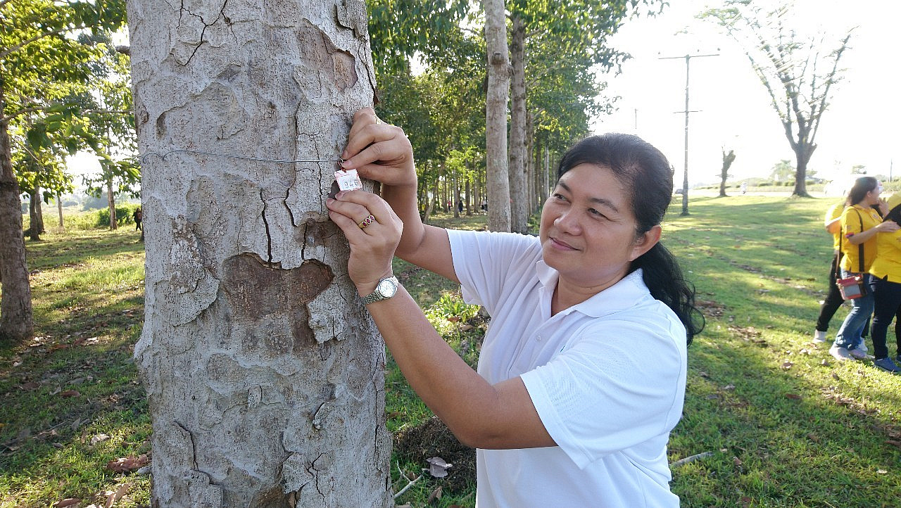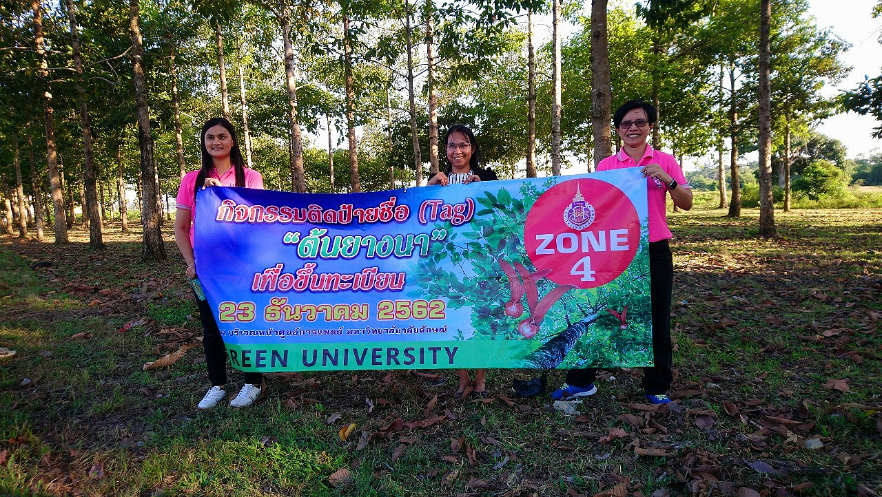 ผู้บริหารและบุคลากรมหาวิทยาลัยวลัยลักษณ์ร่วมกันติด Tag หมายเลขต้นยางนา จำนวน ๑,๐๗๔ ต้น