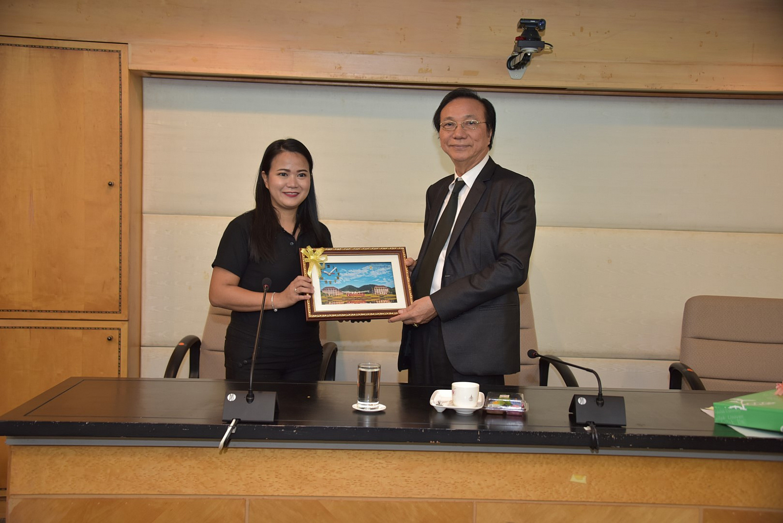ศาสตราจารย์ ดร.สมบัติ ธำรงธัญวงศ์ อธิการบดีมหาวิทยาลัยวลัยลักษณ์ กล่าวต้อนรับและบรรยายภาพรวมระบบการบริหารจัดการงานอาคารสถานที่และงานบริการกลางของมหาวิทยาลัยวลัยลักษณ์ แก่คณะบุคลากร ส่วนอาคารสถานที่มหาวิทยาลัยแม่ฟ้าหลวง นำโดยนางสาวยุวยงค์ หงษ์ทอง หัวหน้าฝ่ายบริหารสำนักงาน ส่วนอาคารสถานที่ มหาวิทยาลัยแม่ฟ้าหลวง ศึกษาเรียนรู้ระบบการบริหารงานส่วนอาคารสถานที่และงานยานพาหนะ ส่วนบริการกลาง