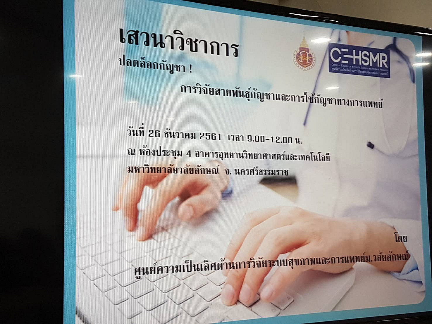 หัวข้อข่าว: เสวนา “ปลดล็อกกัญชา! การวิจัยสายพันธุ์กัญชาและการใช้กัญชาทางการแพทย์