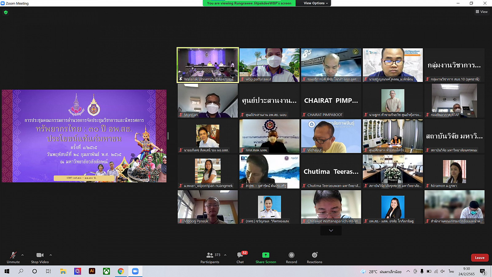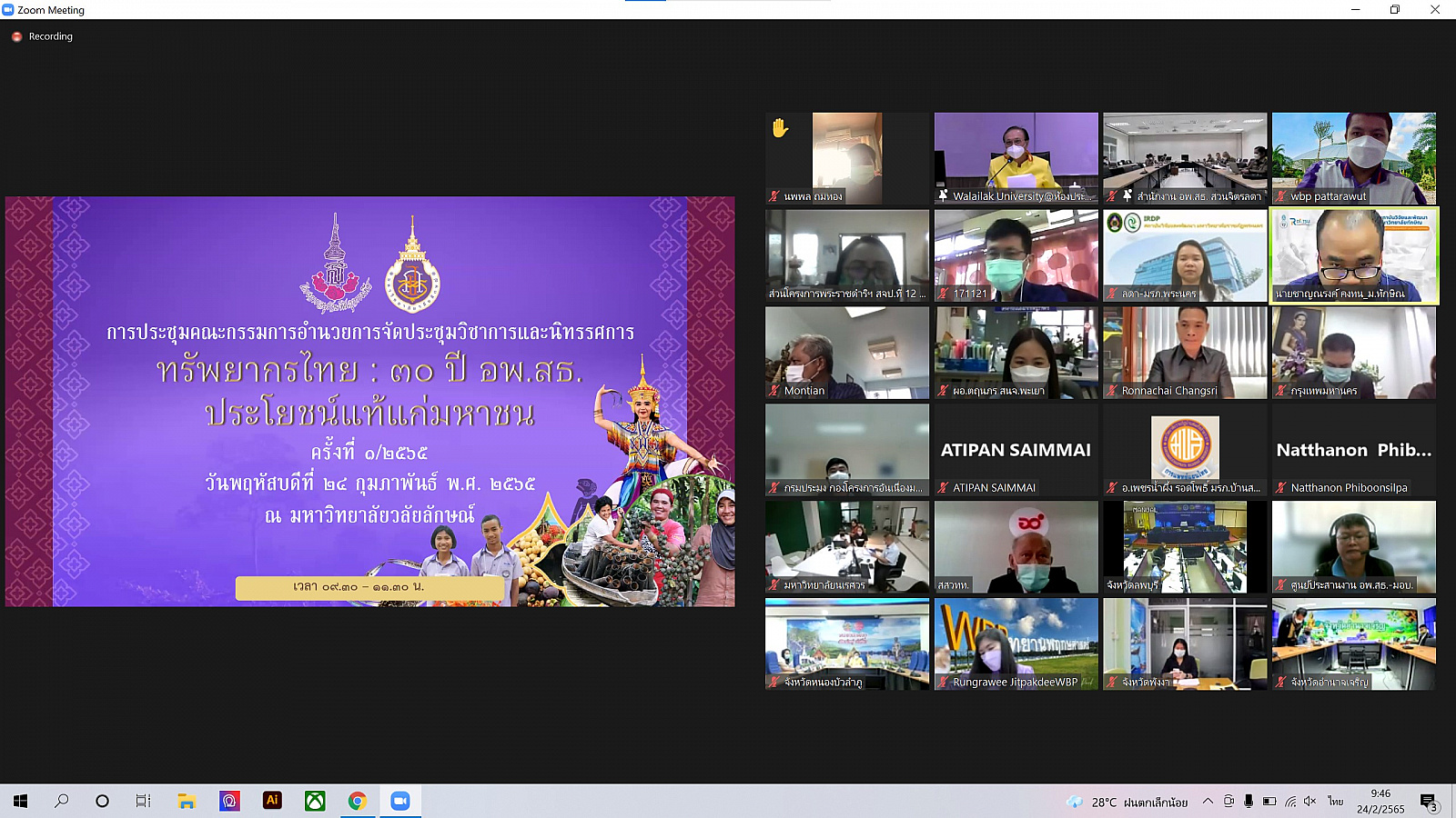 ม.วลัยลักษณ์ จัดประชุมคณะกรรมการอำนวยการคณะกรรมการอำนวยการ จัดการประชุมวิชาการและนิทรรศการ ทรัพยากรไทย : ๓๐ ปี อพ.สธ. ประโยชน์แท้แก่มหาชน ครั้งที่ ๑/๒๕๖๕