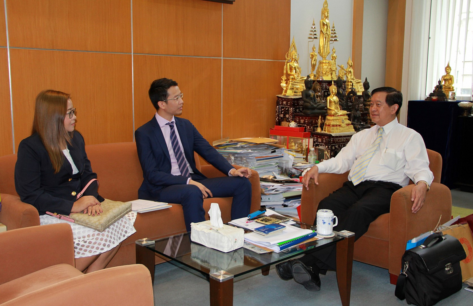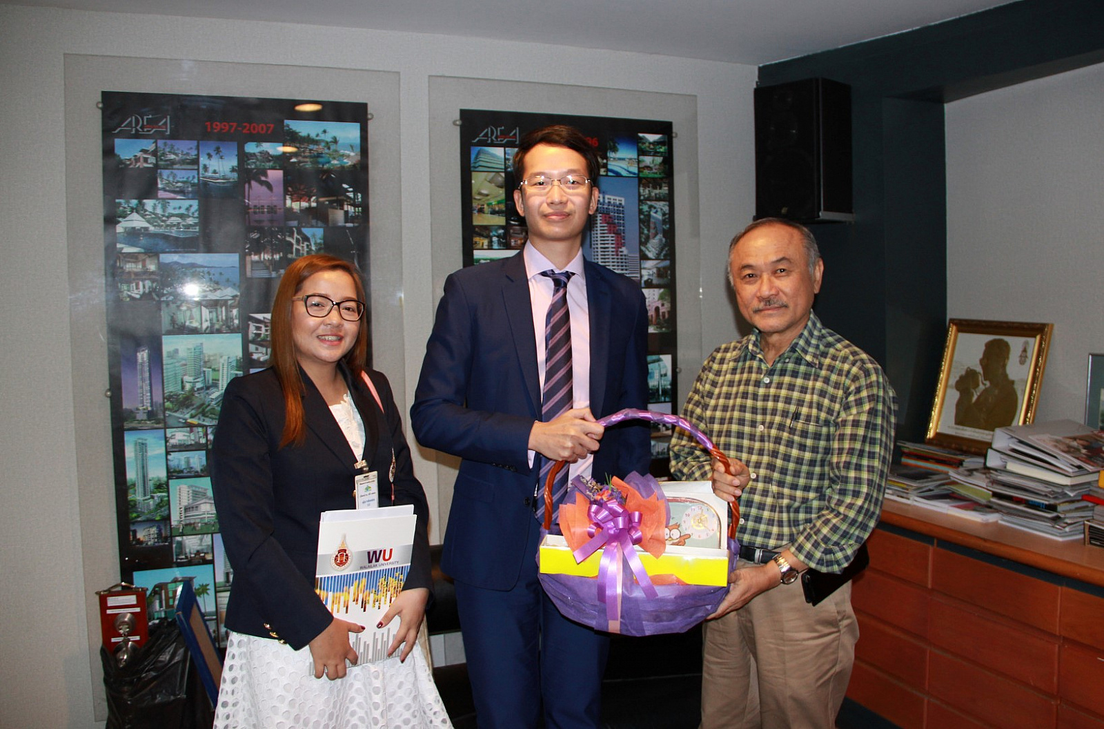 ในระหว่างวันที่ 30 พฤศจิกายน - 1 ธันวาคม 2560 อาจารย์ ดร.พงศธร เดชาติวงศ์ ณ อยุธยา ผู้กำกับดูแล ศูนย์กิจการนานาชาติ มหาวิทยาลัยวลัยลักษณ์ เข้าเยี่ยมขอบคุณผู้ให้การสนับสนุนการจัดค่ายวัฒนธรรมนานาชาติวลัยลักษณ์ ครั้งที่ 1 (The 1st Walailak University Cultural Camp 2017) และผู้ให้การสนับสนุนการดำเนินงานของศูนย์กิจการนานาชาติ ประกอบด้วย คุณเสวก ศรีสุชาต ประธานกรรมการ บริษัท เพาเวอร์ไลน์ เอ็นจิเนียริ่ง จำกัด (มหาชน) คุณอลงกรณ์ ตราชู ผู้บริหาร บริษัท แอเรีย จำกัด ดร.สมศักดิ์ ลีสวัสดิ์ตระกูล รองประธานกรรมการ บริษัท จี สตีล จำกัด (มหาชน) คุณปกาศิต นาเมืองรักษ์ ประธานเจ้าหน้าที่บริหาร บริษัท แอร์พลัส แอ๊พพลาย จำกัด Ms. Candice La Plante ผู้ช่วยทูตวัฒนธรรม สถานเอกอัครราชทูตสหรัฐอเมริกาประจำประเทศไทย และคุณพิเศษ เหลือจันทร์ กรรมการผู้จัดการ บริษัท ฟอร์ คอน จำกัด ในโอกาสนี้ได้รายงานผลการดำเนินโครงการ ค่ายวัฒนธรรมนานาชาติวลัยลักษณ์ ครั้งที่ 1 ซึ่งจัดขึ้นเมื่อวันที่ 25 มิถุนายน - 1 กรกฎาคม 2560 ที่ผ่านมา ภายใต้แนวคิด “พระมหากรุณาธิคุณในหลวงรัชกาลที่ 9 ที่มีต่อปวงชนชาวไทย” โดยมีนักศึกษาชาวต่างชาติและชาวไทยจาก 21 ประเทศ เข้าร่วมทั้งสิ้น 110 คน