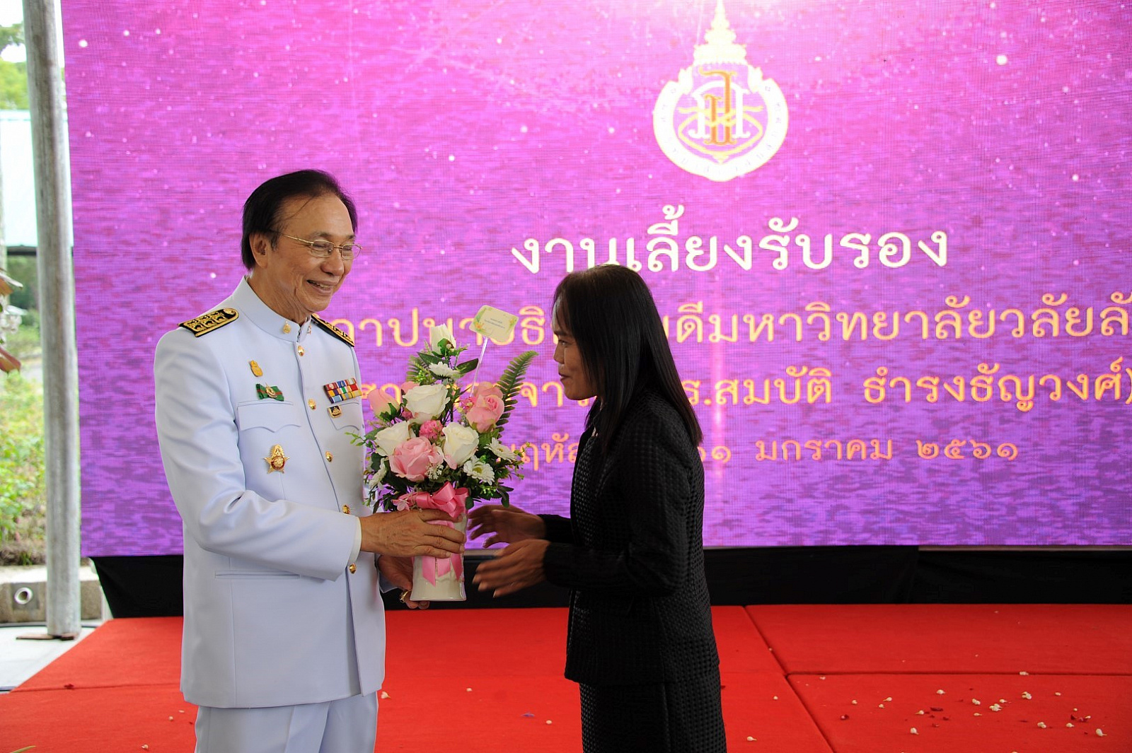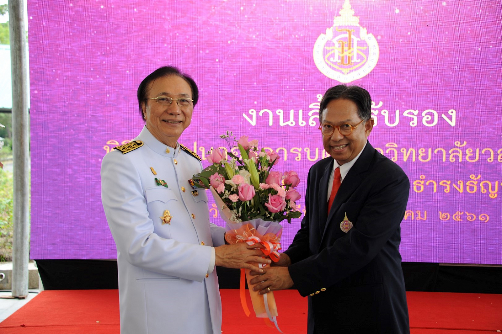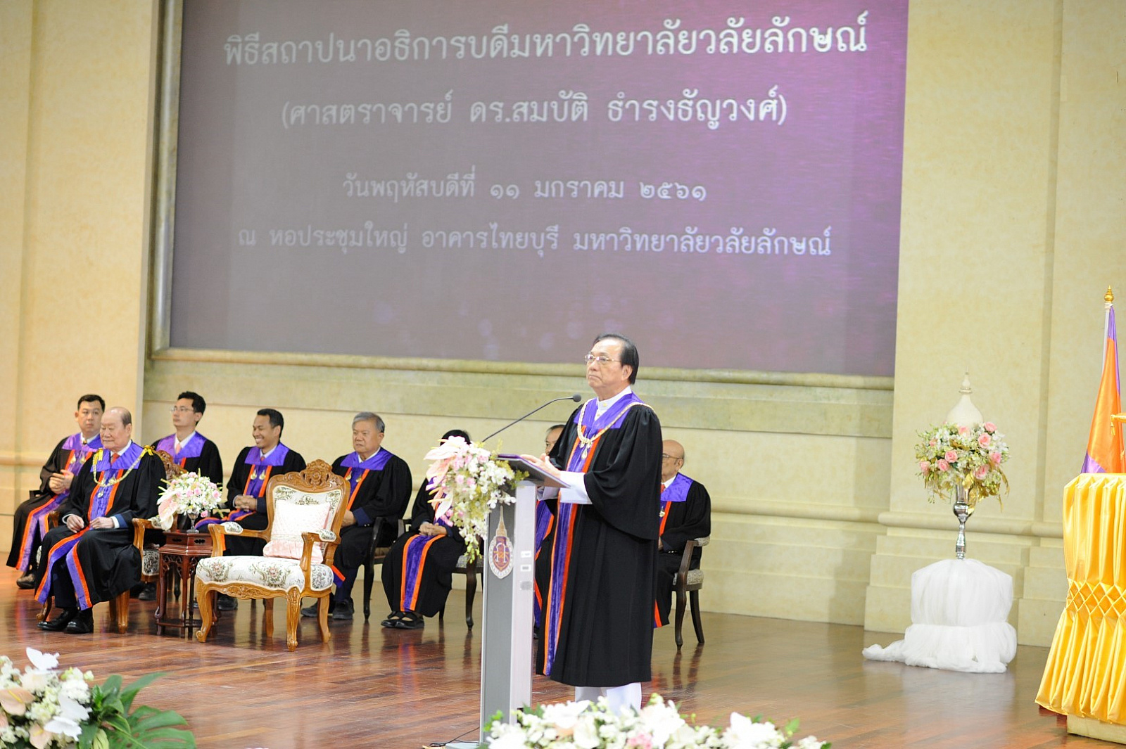 มหาวิทยาลัยวลัยลักษณ์จัดพิธีสถาปนาอธิการบดี เนื่องในโอกาสที่ ศาสตราจารย์ ดร.สมบัติ ธำรงธัญวงศ์ ได้รับพระมหากรุณาธิคุณโปรดเกล้าโปรดกระหม่อม แต่งตั้งเป็นอธิการบดี ม.วลัยลักษณ์ ตั้งแต่วันที่ 10 ธันวาคม 2560 ที่ผ่านมา โดยมี ศาสตราจารย์ ดร.วิจิตร ศรีสอ้าน นายกสภามหาวิทยาลัย นายจำเริญ ทิพยพงศ์ธาดา ผู้ว่าราชการจังหวัดนครศรีธรรมราช กรรมการสภามหาวิทยาลัย คณะผู้บริหาร บุคลากรและนักศึกษาของมหาวิทยาลัย รวมถึงผู้แทนหน่วยงาน องค์กรภาครัฐและเอกชน ทั้งในและต่างประเทศ เข้าร่วมกว่า 1,200 คน เมื่อวันที่ 11 มกราคม 2561 ณ หอประชุมใหญ่ อาคารไทยบุรี