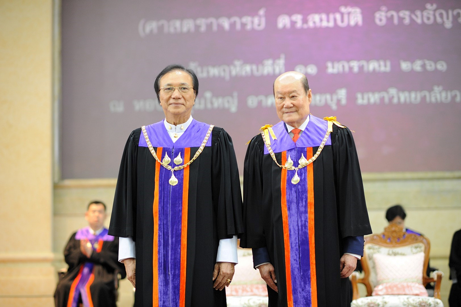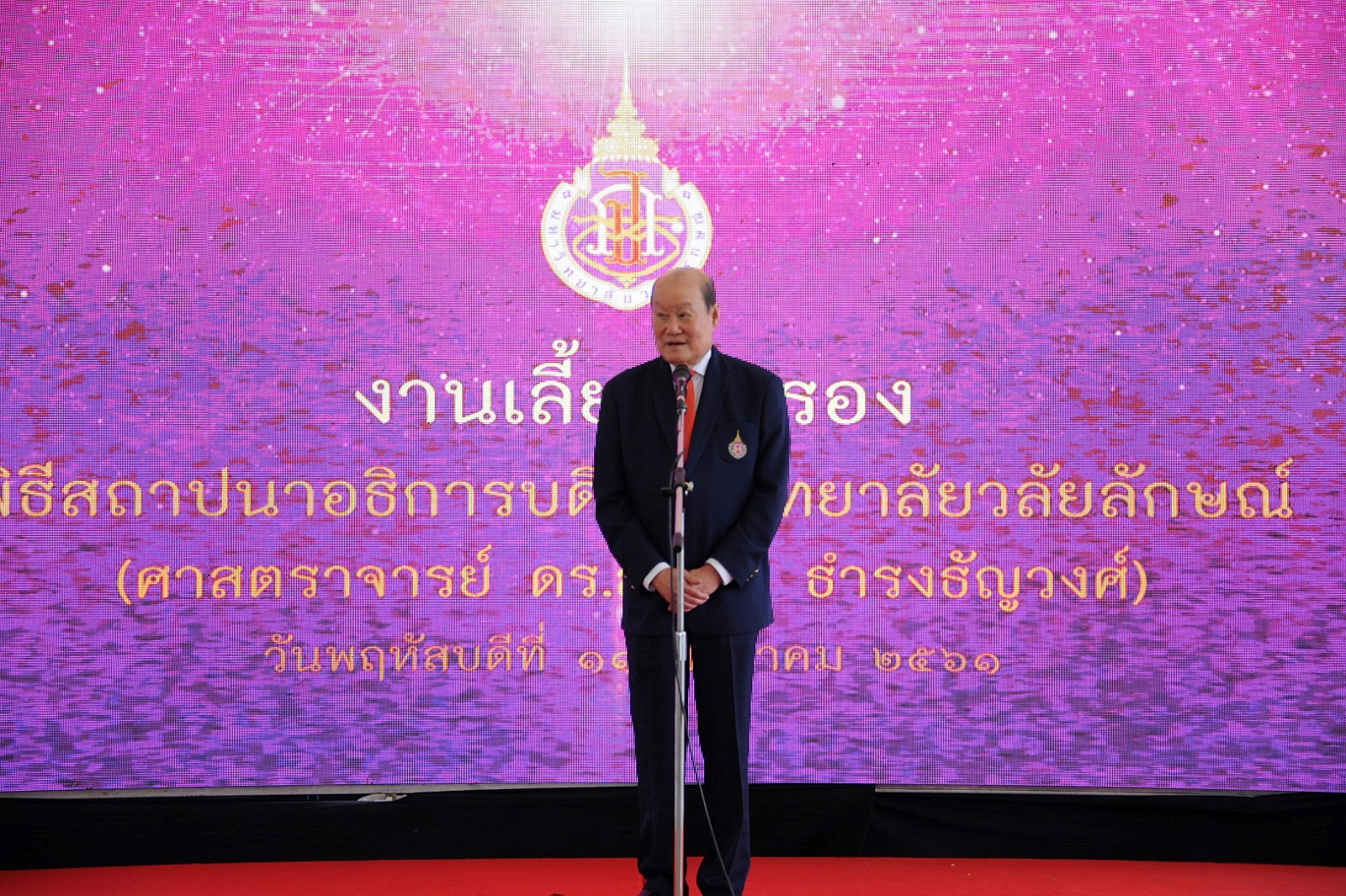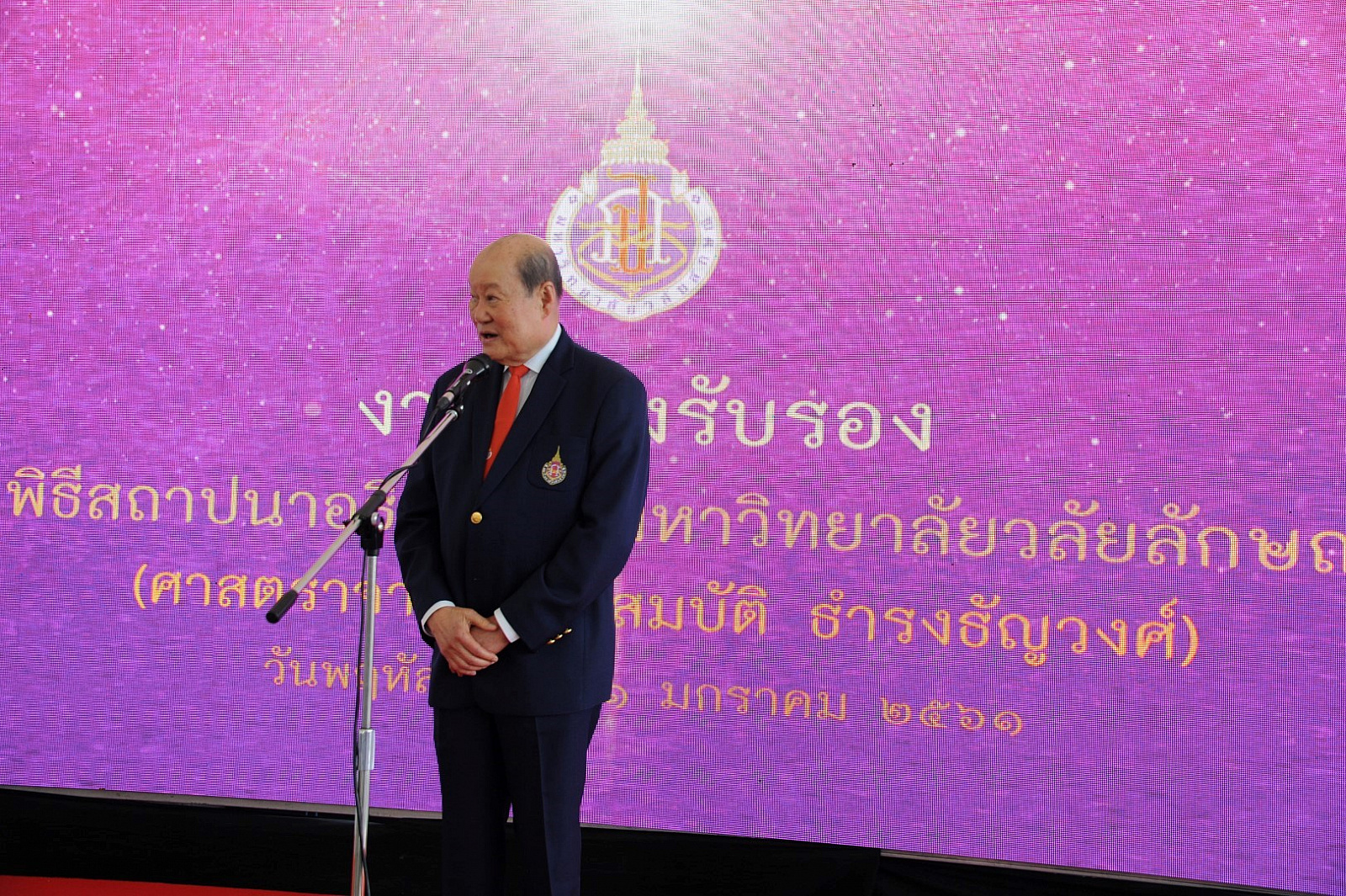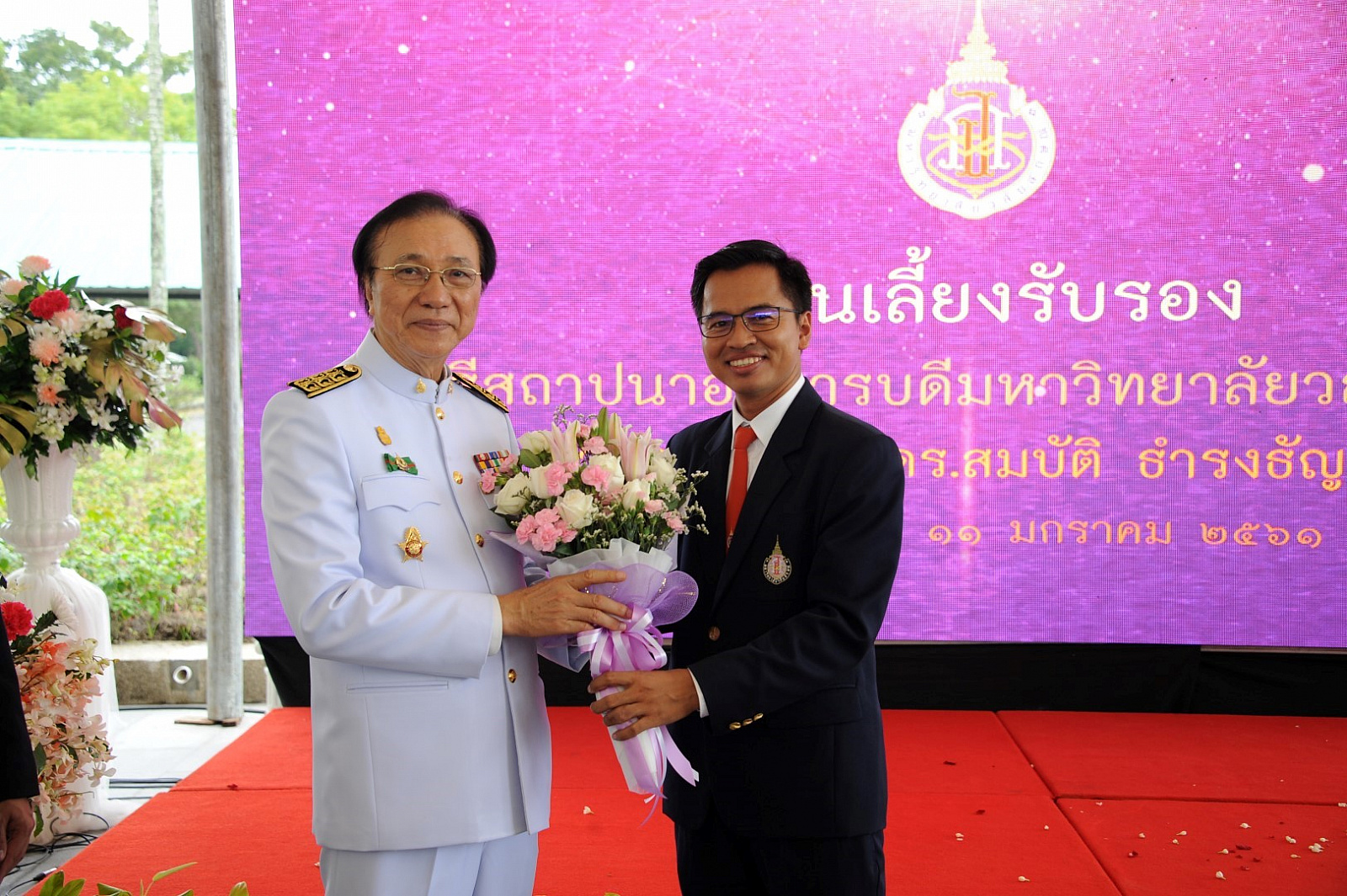 มหาวิทยาลัยวลัยลักษณ์จัดพิธีสถาปนาอธิการบดี เนื่องในโอกาสที่ ศาสตราจารย์ ดร.สมบัติ ธำรงธัญวงศ์ ได้รับพระมหากรุณาธิคุณโปรดเกล้าโปรดกระหม่อม แต่งตั้งเป็นอธิการบดี ม.วลัยลักษณ์ ตั้งแต่วันที่ 10 ธันวาคม 2560 ที่ผ่านมา โดยมี ศาสตราจารย์ ดร.วิจิตร ศรีสอ้าน นายกสภามหาวิทยาลัย นายจำเริญ ทิพยพงศ์ธาดา ผู้ว่าราชการจังหวัดนครศรีธรรมราช กรรมการสภามหาวิทยาลัย คณะผู้บริหาร บุคลากรและนักศึกษาของมหาวิทยาลัย รวมถึงผู้แทนหน่วยงาน องค์กรภาครัฐและเอกชน ทั้งในและต่างประเทศ เข้าร่วมกว่า 1,200 คน เมื่อวันที่ 11 มกราคม 2561 ณ หอประชุมใหญ่ อาคารไทยบุรี