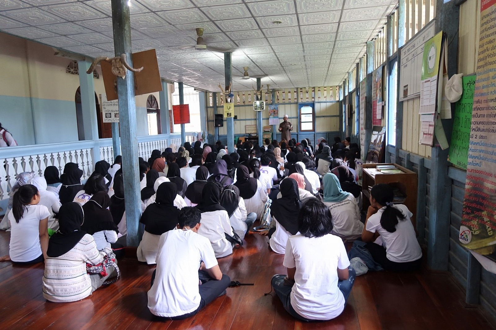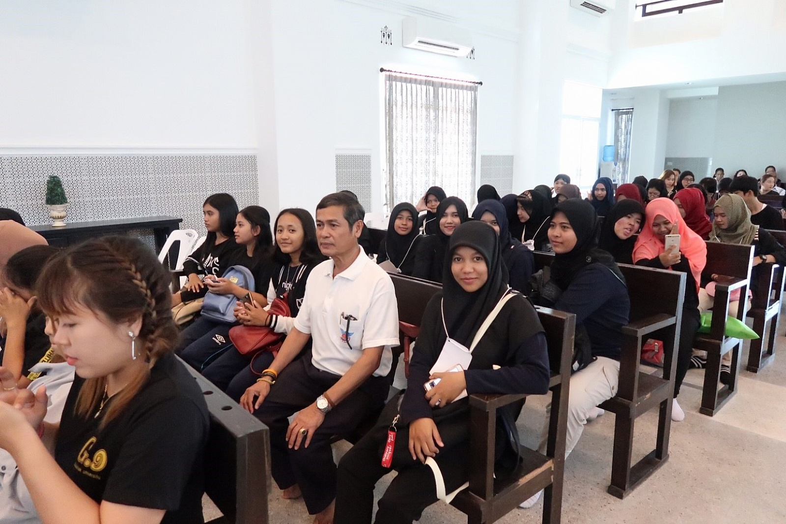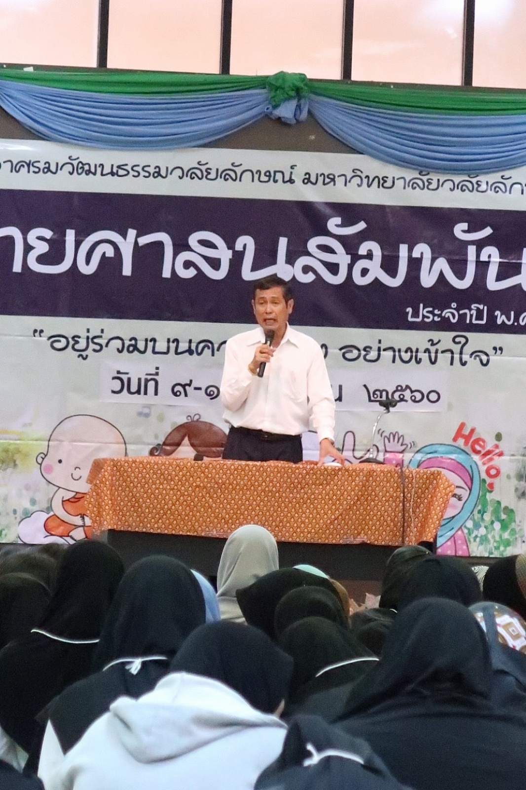 เมื่อวันที่ ๙-๑๐ กันยายน ๒๕๖๐ นักศึกษามหาวิทยาลัยวลัยลักษณ์ กว่า ๑๔๐ คน เข้าร่วมกิจกรรม “ค่ายศาสนสัมพันธ์” ประจำปี ๒๕๖๐ ภายใต้กรอบคิดของโครงการ “อยู่ร่วมบนความต่าง อย่างเข้าใจ” เพื่อให้นักศึกษาได้ตระหนักถึงความสำคัญในการนำหลักธรรมคำสอนของศาสนาต่างๆ พร้อมเปิดใจเรียนรู้และสร้างความเข้าใจบนความแตกต่างของศาสนา อันจะนำไปสู่การประยุกต์ใช้ในการดำเนินชีวิตได้อย่างถูกต้องและสามารถดำรงอยู่ในสังคมได้อย่างมีความสุข โดยเรียนรู้ผ่าน ๕ ฐานการเรียนรู้ ดังนี้ ฐานการเรียนรู้ที่ ๑ “จุดร่วม ๔ ศาสนา” บรรยายโดย รศ.ดร.สืบพงศ์ ธรรมชาติ รักษาการแทนผู้อำนวยการอาศรมวัฒนธรรมวลัยลักษณ์ ฐานการเรียนรู้ที่ ๒ “เข้าใจเรา เข้าใจเพื่อนชาวมุสลิม” ณ มัสยิดบ้านกลาง ต.โพธิ์ทอง อ.ท่าศาลา จังหวัดนครศรีธรรมราช โดยวิทยากร คุณเกาะเดช สัมฤทธิ์ ครูสอนศาสนา ฐานการเรียนรู้ที่ ๓ “เข้าใจเรา เข้าใจเพื่อนชาวพุทธ”ณ วัดพระมหาธาตุวรมหาวิหาร จังหวัดนครศรีธรรมราช โดยวิทยากร พระครูพิศิษฎ์คณาทร ดร. ฐานการเรียนรู้ที่ ๔ “เข้าใจเรา เข้าใจเพื่อนชาวคริสต์” ณ คริสตจักรพระกิตติคุณสมบูรณ์นครศรีธรรมราช โดยวิทยากร ท่าน ศาสนาจารย์สุริยัน เทพเเก้ว ศิษยาภิบาลคริสตจักรพระกิตติคุณสมบูรณ์นครศรีธรรมราช ฐานการเรียนรู้ ๕ “เข้าใจพราหมณ์ ผ่านพิธีกรรมและความหมาย” ณ ฐานพระสยม อำเภอเมือง จังหวัดนครศรีธรรมราช โดยวิทยากร คุณพลชัย จันทร์เกิด