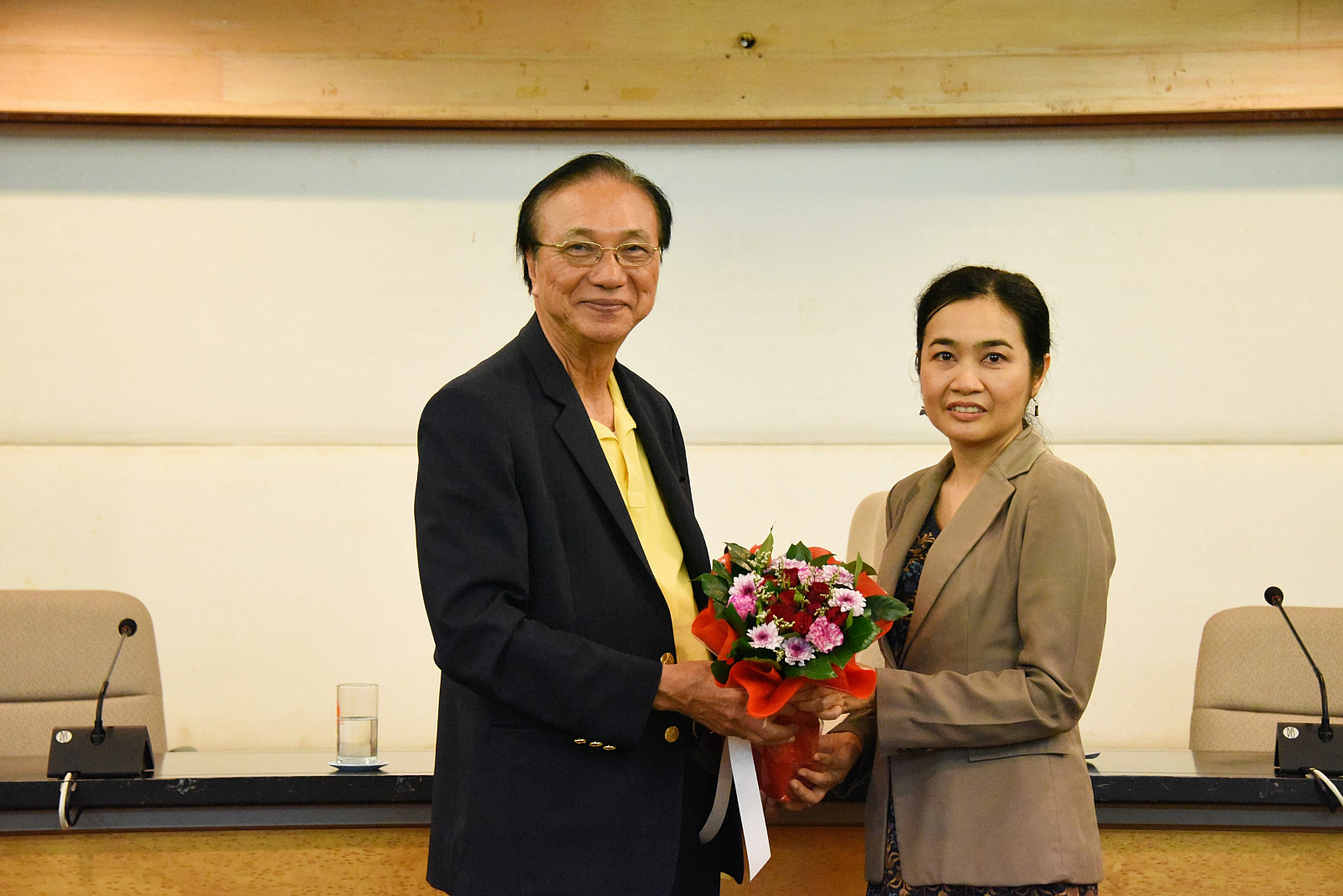อธิการบดีมอบเกียรติบัตร พร้อมช่อดอกไม้แสดงความยินดี ให้แก่ผู้ได้รับประกาศนียบัตรของ UKPSF หน่วยงานที่สร้างชื่อเสียงให้แก่มหาวิทยาลัย และผู้ได้รับตำแหน่งทางวิชาการ
