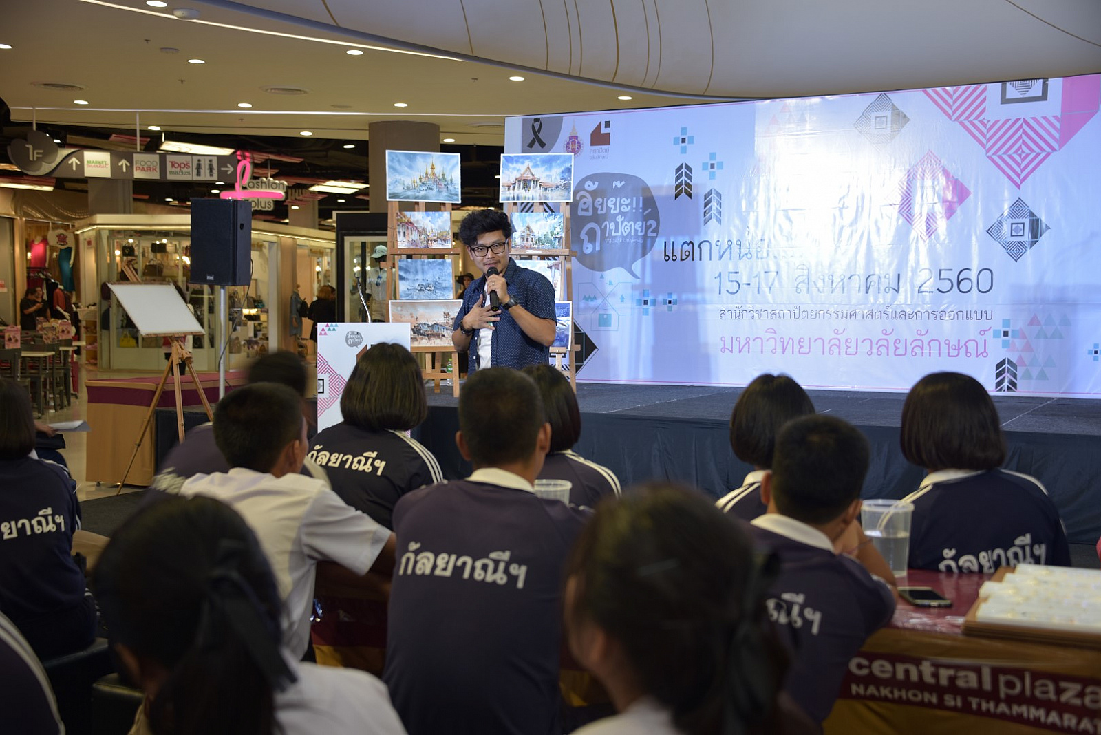 สำนักวิชาสถาปัตยกรรมศาสตร์และการออกแบบ มหาวิทยาลัยวลัยลักษณ์ จัดกิจกรรมวิชาการและนิทรรศการผลงานนักศึกษา “อัยยะถาปัตย์” ครั้งที่ 2 ตอน "แตกหน่อ" เพื่อแสดงผลงานการบริการวิชาการของอาจารย์และนักศึกษา สร้างการรับรู้และความเข้าใจในสาขาวิชาเปิดใหม่ของสำนักวิชา “สาขาการออกแบบภายในและสาขาภูมิสถาปัตย์” แก่เเยาวชนและผู้สนใจ ซึ่งจัดขึ้นระหว่างวันที่ 15-17 สิงหาคม 2560 ณ ศูนย์การค้าเซ็นทรัลพลาซ่า จังหวัดนครศรีธรรมราช