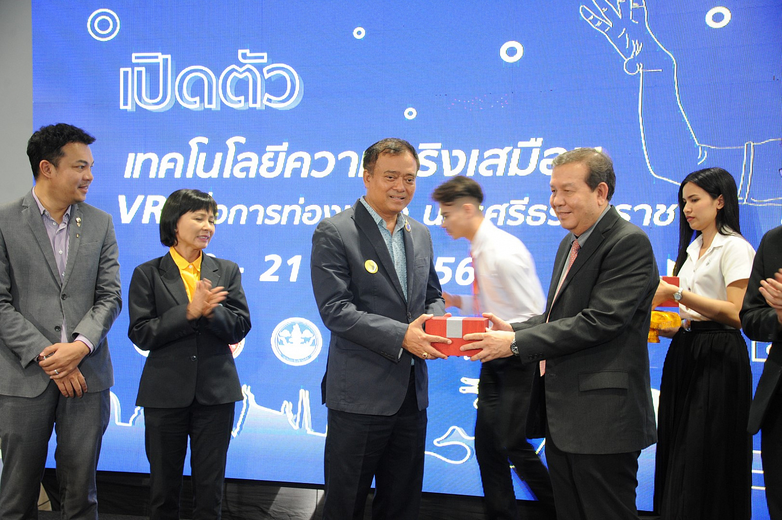 เมื่อวันที่ 20 มกราคม 2561 ที่ห้อง Southern Gallery ชั้น 1 ศูนย์การค้าเซ็นทรัลพลาซ่า จังหวัดนครศรีธรรมราช นายวิรัตน์ รักษ์พันธ์ รองผู้ว่าราชการจังหวัดนครศรีธรรมราช เป็นประธานในพิธีส่งมอบเทคโนโลยีเสมือนจริง หรือ Virtual Reality : VR เพื่อประชาสัมพันธ์การท่องเที่ยวจังหวัดนครศรีธรรมราช และเปิดงาน Informatics Runway ซึ่งสำนักวิชาสารสนเทศศาสตร์ มหาวิทยาลัยวลัยลักษณ์(มวล.)ได้ออกแบบและพัฒนาเทคโนโลยีดังกล่าวเพื่อส่งเสริมการท่องเที่ยว ซึ่งนับเป็นแห่งแรกของภาคใต้ โดยมีนางสาวลัดดาวัลย์ ช่วยชาติ ผู้อำนวยการการท่องเที่ยวแห่งประเทศไทย (ททท.) สำนักงานนครศรีธรรมราช เป็นผู้รับมอบ