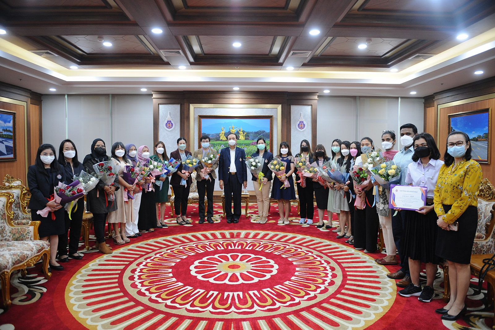 ม.วลัยลักษณ์ มอบเกียรติบัตรและช่อดอกไม้แสดงความยินดีแก่นักศึกษาที่ได้รับรางวัล และมอบช่อดอกไม้แก่อาจารย์ผู้ได้รับประกาศนียบัตรของ UKPSF