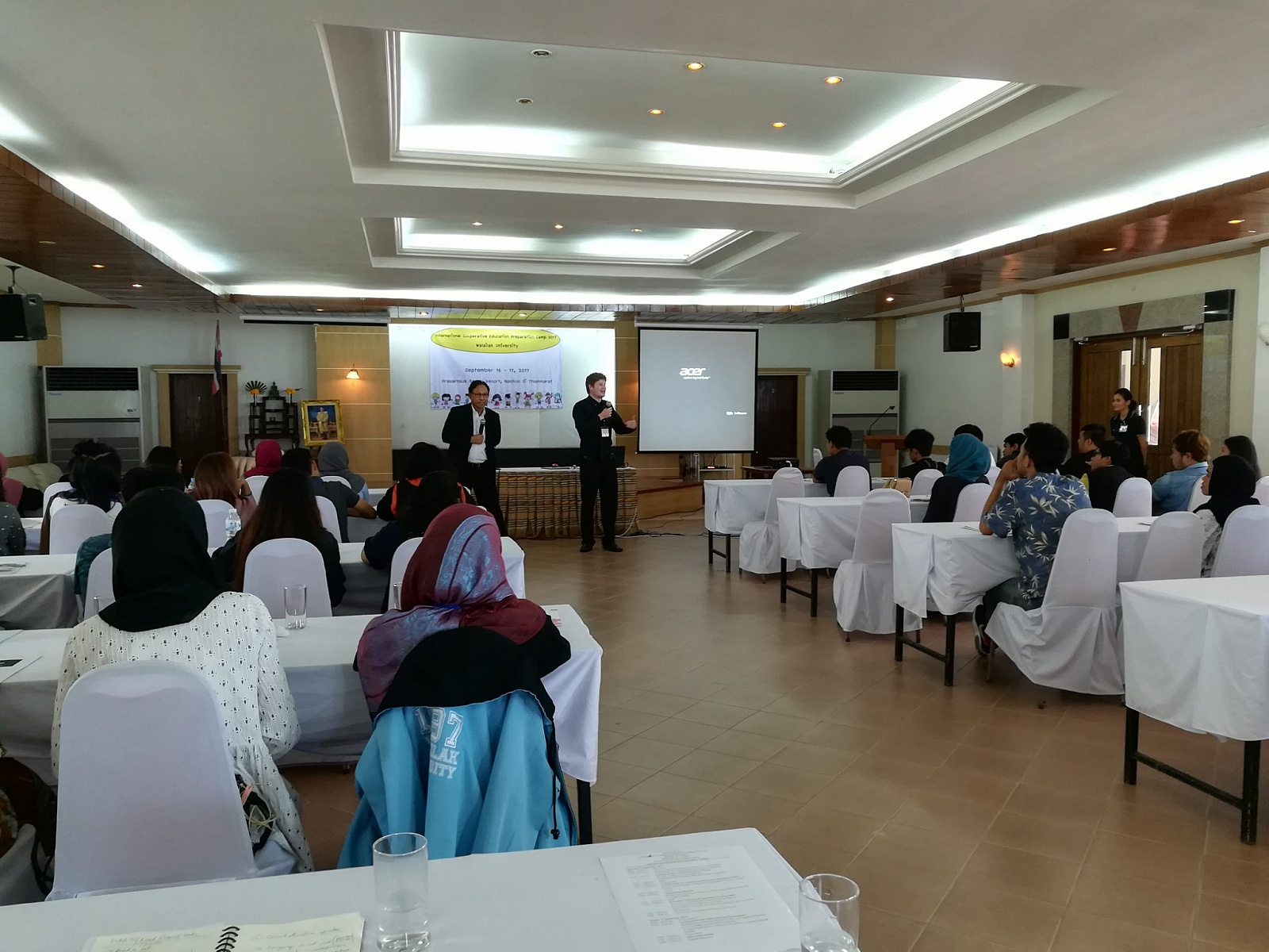 ศูนย์สหกิจศึกษา และพัฒนาอาชีพ ร่วมกับสถาบันภาษา มหาวิทยาลัยวลัยลักษณ์ จัดค่ายเตรียมความพร้อมนักศึกษาสหกิจศึกษาต่างประเทศ ครั้งที่ 3 ประจำปี 2560 ณ ประสานสุข วิลล่า บีช รีสอร์ท อ.สิชล จ.นครศรีธรรมราช โดยได้รับเกียรติจาก รศ.ดร. สุรินทร์ ไหมศรีกรด รักษาการการแทนรองอธิการบดีฝ่ายวิชาการและกิจการต่างประเทศ เป็นวิทยากรบรรยายให้นักศึกษาฟังในหัวข้อ How to Success in Abroad มีนักศึกษาเข้าร่วมโครงการทั้งสิ้น จำนวน 46 คน จาก 4 สำนักวิชา ได้แก่ สำนักวิชาศิลปศาสตร์ สำนักวิชาสารสนเทศศาสตร์ สำนักวิชาวิศวกรรมศาสตร์และทรัพยากร และสำนักวิชารัฐศาสตร์และนิติศาสตร์ สำหรับรูปแบบการจัดกิจกรรมในครั้งนี้ ประกอบด้วยการบรรยายและจำทำกิจกรรมเชิงปฏิบัติการโดยคณะวิทยากรในหัวข้อที่เกี่ยวเนื่องกับการใช้ปฏิบัติสหกิจศึกษาและการดำเนินชีวิตประจำวันในต่างประเทศ ตลอดจนการเตรียมตัวก่อนเดินทางไปต่างประเทศ โดยได้รับความร่วมมือด้วยดีจากคณะอาจารย์จากสถาบันภาษามหาวิทยาลัยวัยลักษณ์