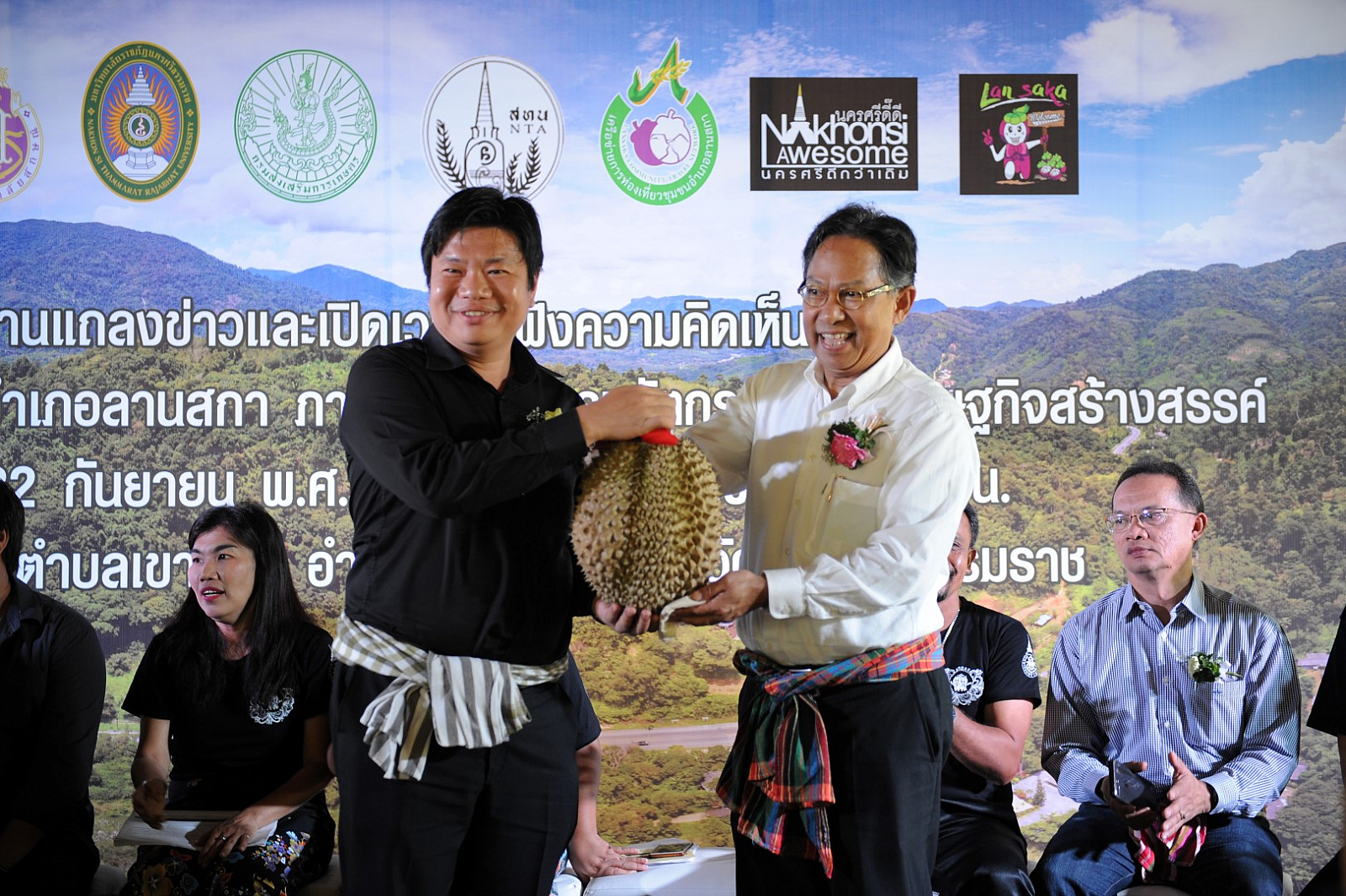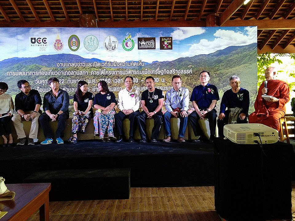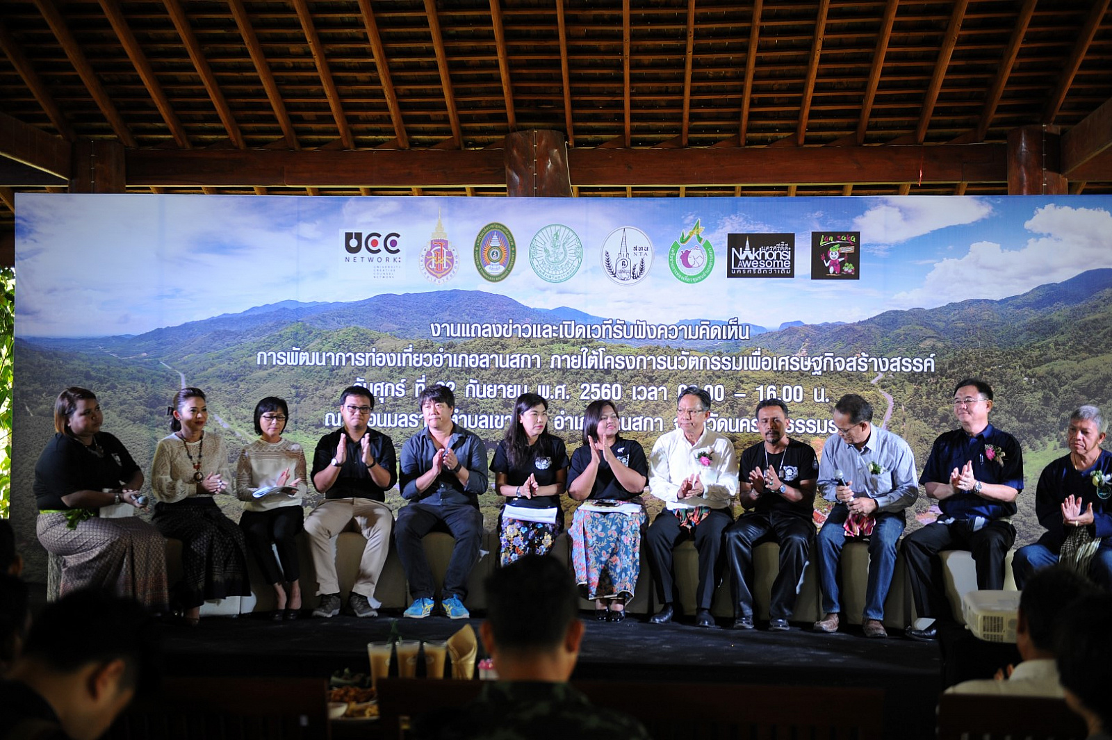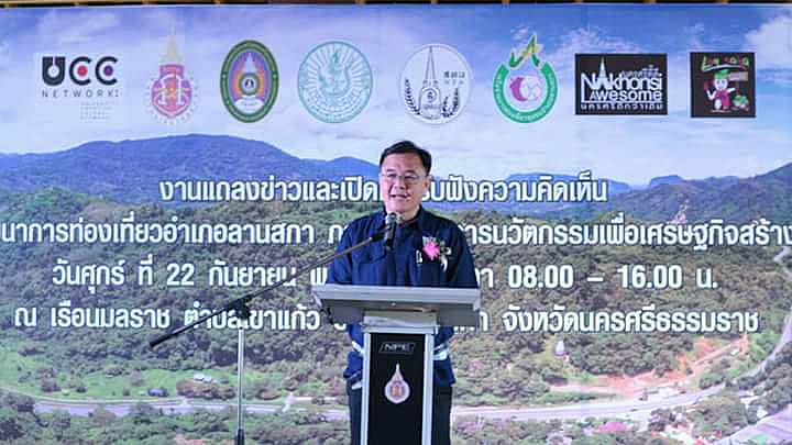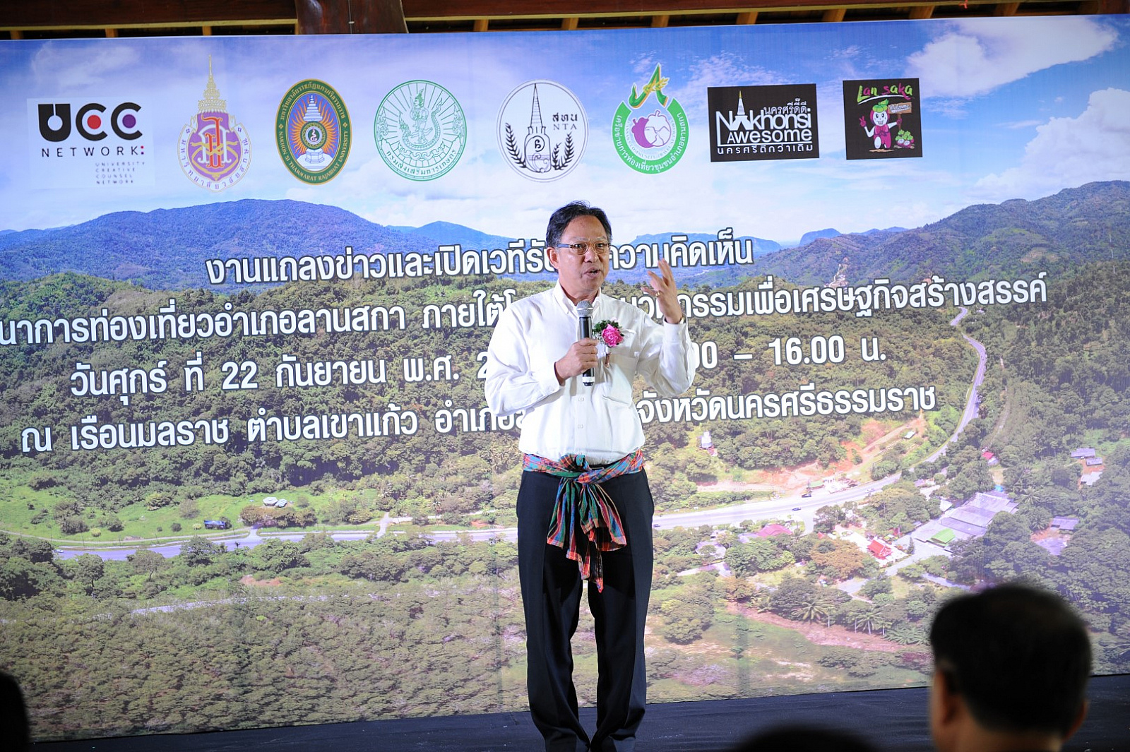 เมื่อวันที่ 22 กันยายน 2560 ที่ผ่านมา มหาวิทยาลัยวลัยลักษณ์ร่วมกับมหาวิทยาลัยราชภัฎนครศรีธรรมราช สำนักงานท่องเที่ยวและกีฬาจังหวัดนครศรีธรรมราช ภาคีเครือข่ายด้านการท่องเที่ยว อ.ลานสกา จัดแถลงข่าวและเปิดเวทีรับฟังความคิดเห็นการพัฒนาการท่องเที่ยวอำเภอลานสกาภายใต้โครงการนวัตกรรมเพื่อเศรษฐกิจสร้างสรรค์ ณ เรือนมลราช ต.เขาแก้ว อ.ลานสกา จ.นครศรีธรรมราช โดยได้รับเกียรติจากนายขจรเกียรติ รักพานิชมณี รองผู้ว่าราชการจังหวัดนครศรีธรรมราชเป็นประธาน มีรองศาสตราจารย์ ดร.สุรินทร์ ไหมศรีกรด รักษาการแทนรองอธิการบดีฝ่ายวิชาการและกิจการต่างประเทศ หัวหน้าหน่วยงานภาครัฐ ภาคเอกชน ผู้นำชุมชน ผู้บริหารของมหาวิทยาลัยวลัยลักษณ์ มหาวิทยาลัยราชภัฎนครศรีธรรมราช เข้าร่วมงาน