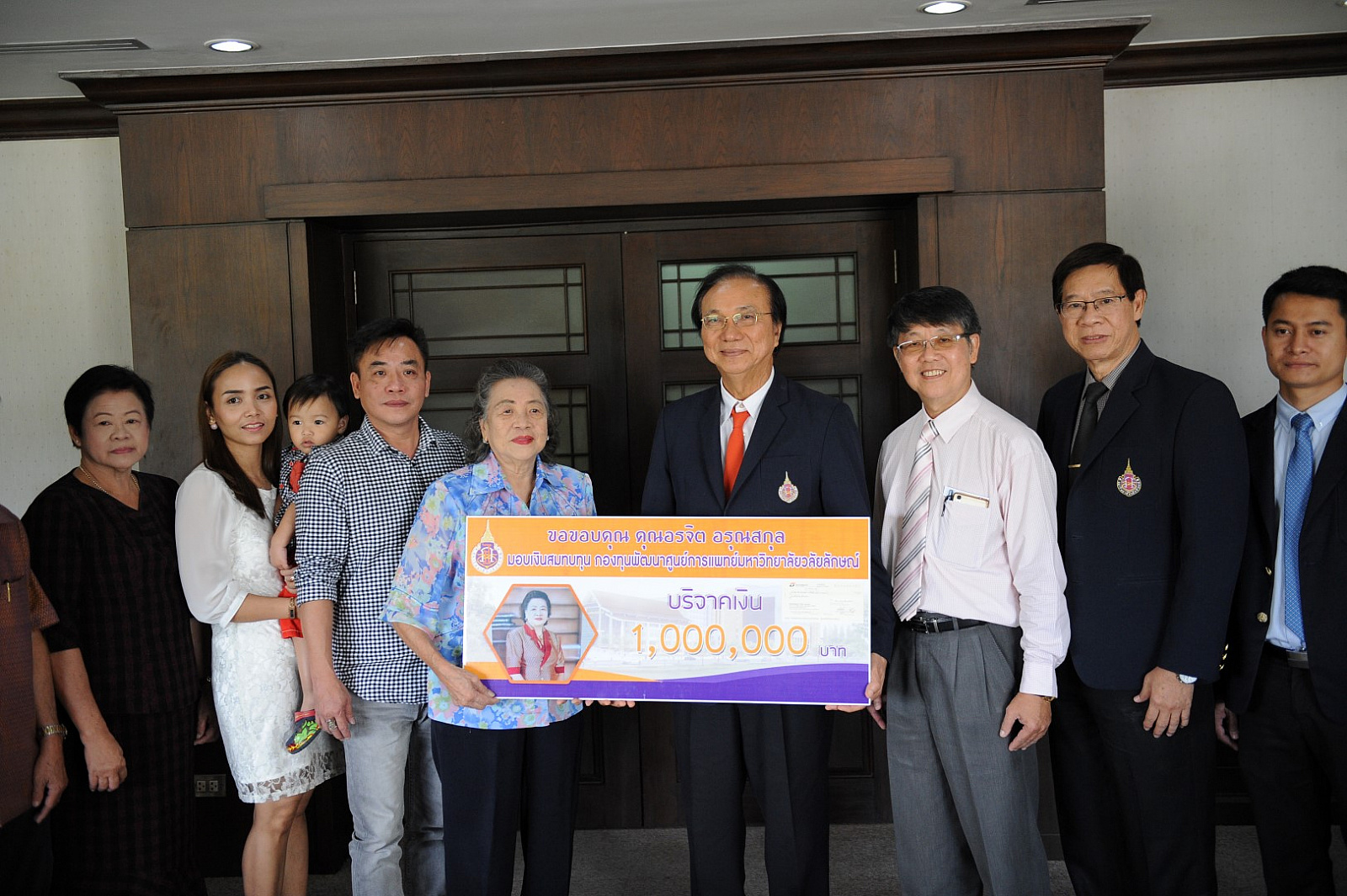 คุณอรจิต อรุณสกุล มอบเงินบริจาคสมทบกองทุนศูนย์แพทย์มวล. จำนวน 1 ล้านบาท