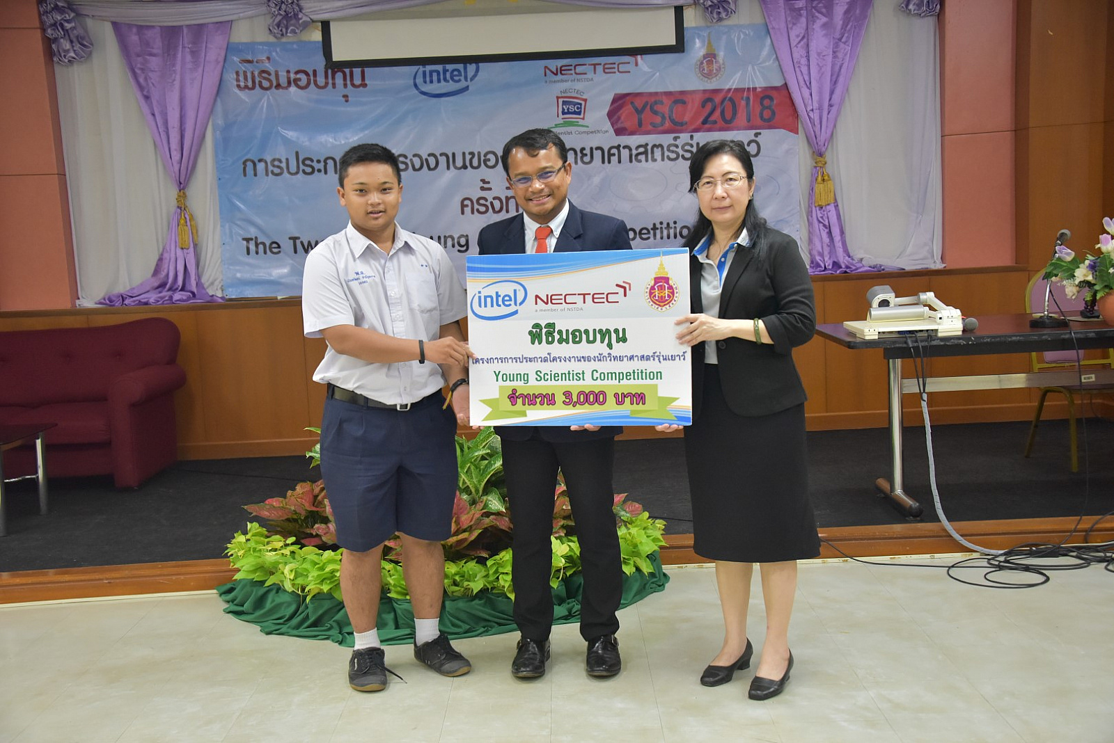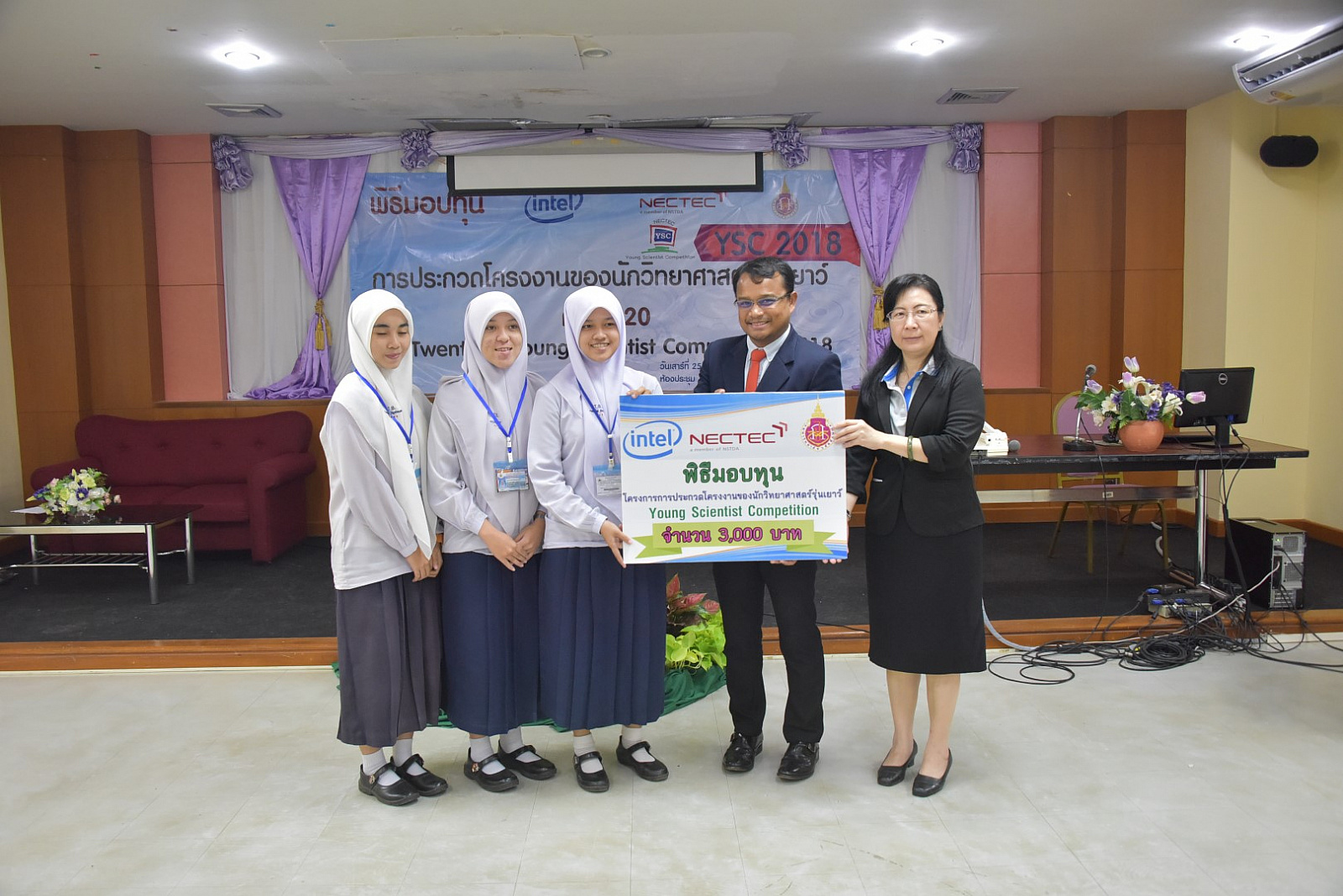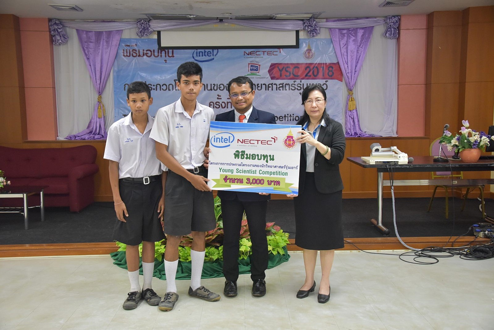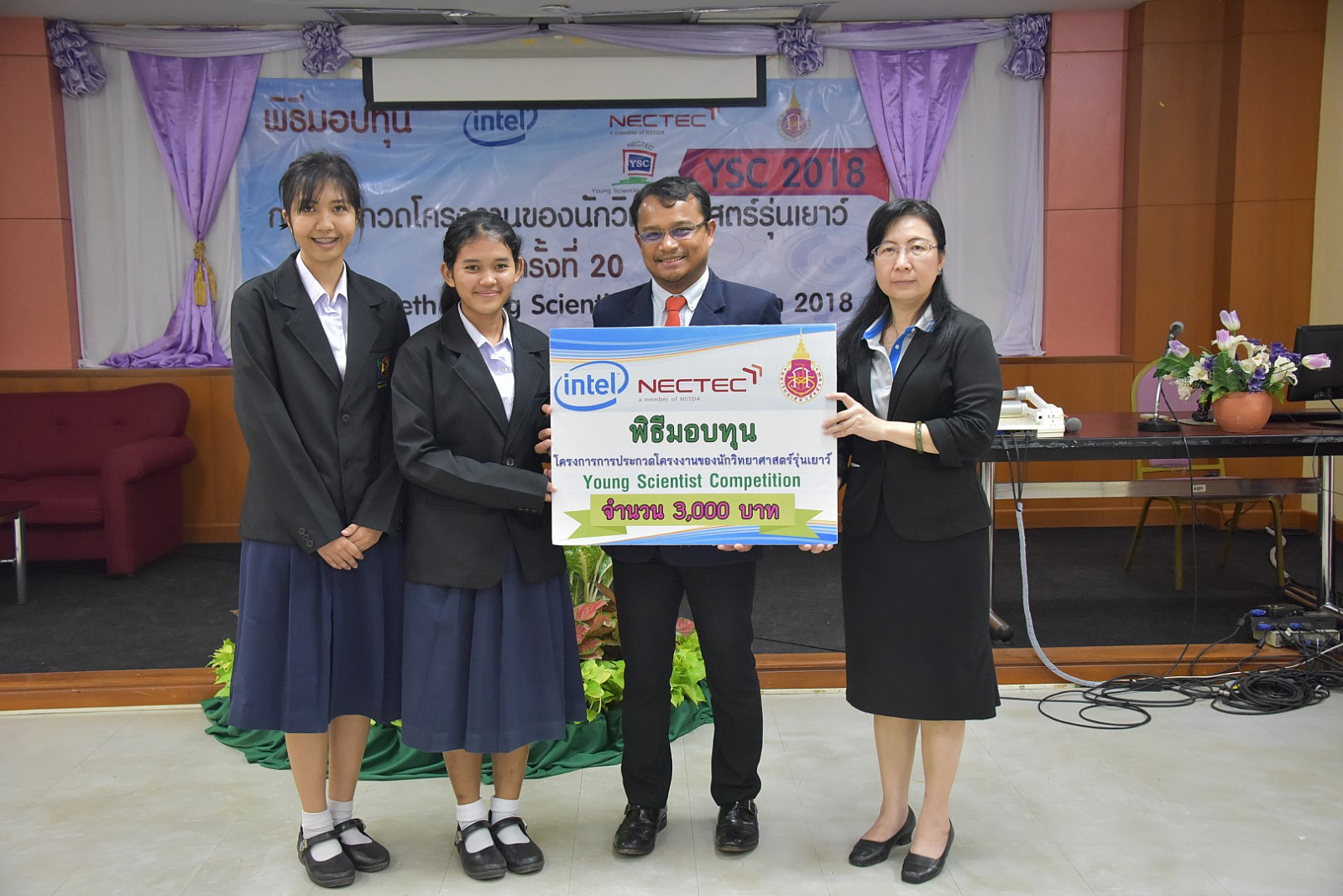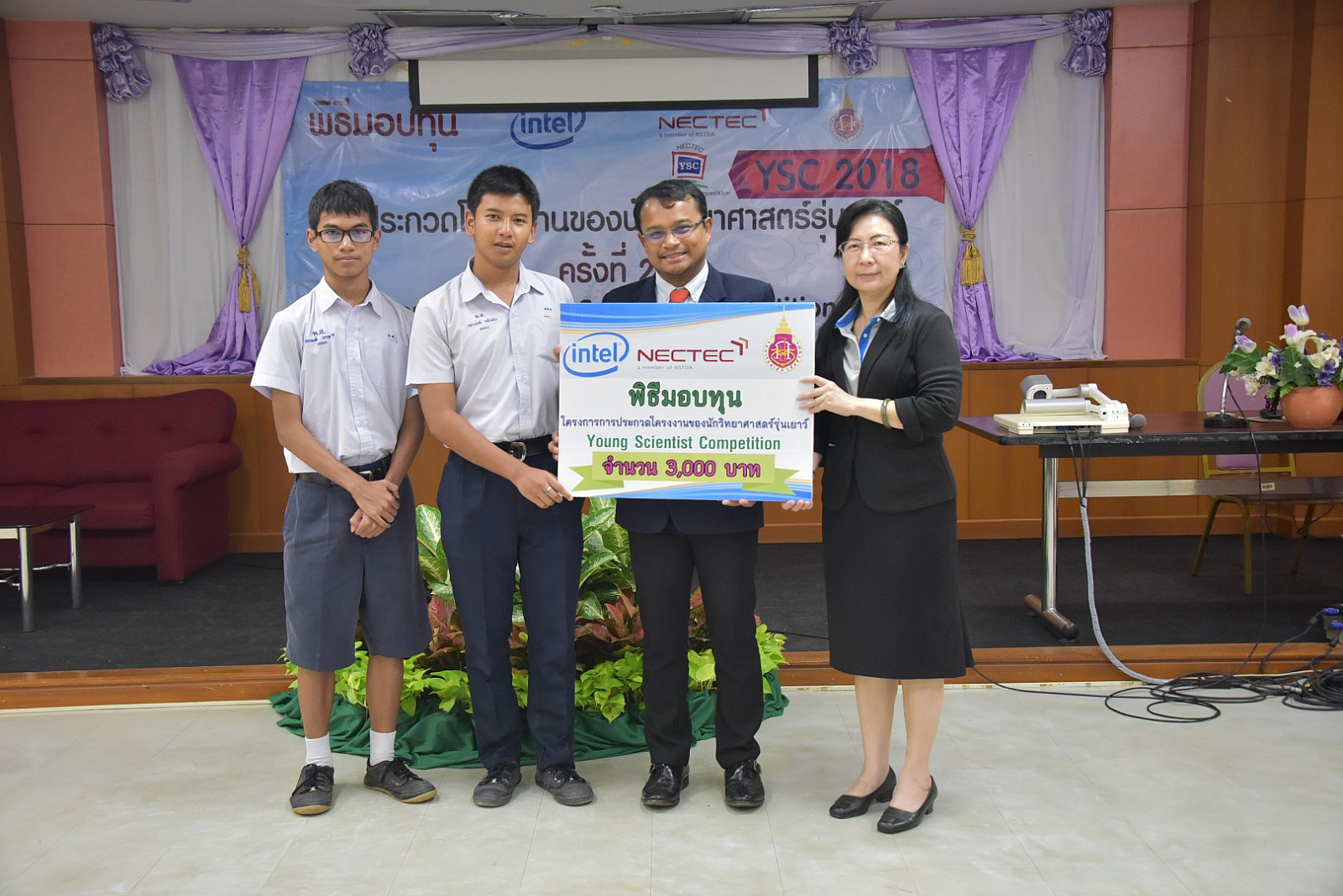 มหาวิทยาลัยวลัยลักษณ์ โดยศูนย์บริการวิชาการ ซึ่งเป็นหน่วยประสานงานการประกวดโครงงานของนักวิทยาศาสตร์ส่วนภูมิภาค(ภาคใต้) ได้จัดพิธีมอบทุนสนับสนุนการประกวดโครงงานของนักวิทยาศาสตร์รุ่นเยาว์ ครั้งที่ 20 (Young Scientist Competition 2018: YSC 2018) เมื่อวันที่ 25 พฤศจิกายน 2560 ที่ผ่านมา ณ อาคารวิจัย มหาวิทยาลัยวลัยลักษณ์ เพื่อให้นักเรียนนำไปพัฒนาโครงงานพร้อมแนะนำเทคนิคการเขียนโครงงานของนักวิทยาศาสตร์รุ่นเยาว์ โดยมี ผู้ช่วยศาสตราจารย์ ดร.อมรศักดิ์ สวัสดี รักษาการแทนผู้อำนวยการศูนย์บริการวิชาการ และ ดร.กัลยา อุดมวิทิต รองผู้อำนวยการ ศูนย์เทคโนโลยีอิเล็กทรอนิกส์และคอมพิวเตอร์แห่งชาติ (NECTEC) กล่าวแสดงความยินดีและมอบทุนให้กับนักเรียนที่โครงงานผ่านการคัดเลือก